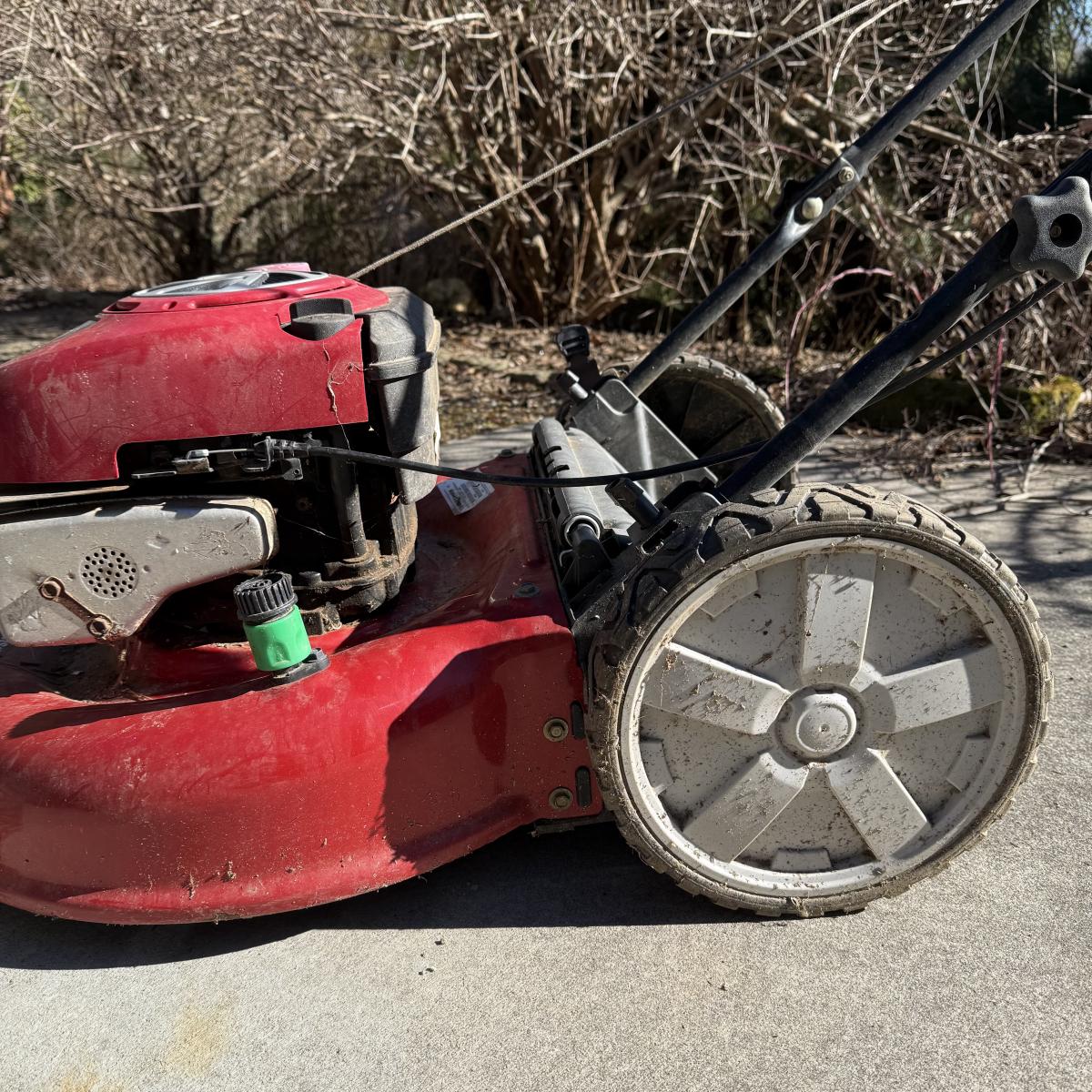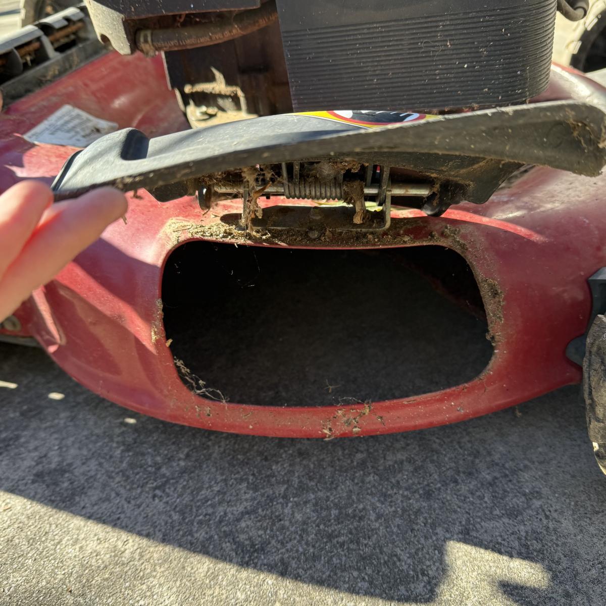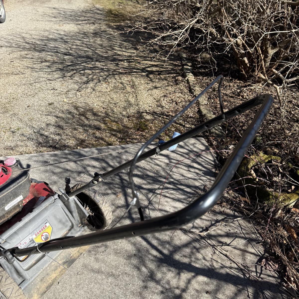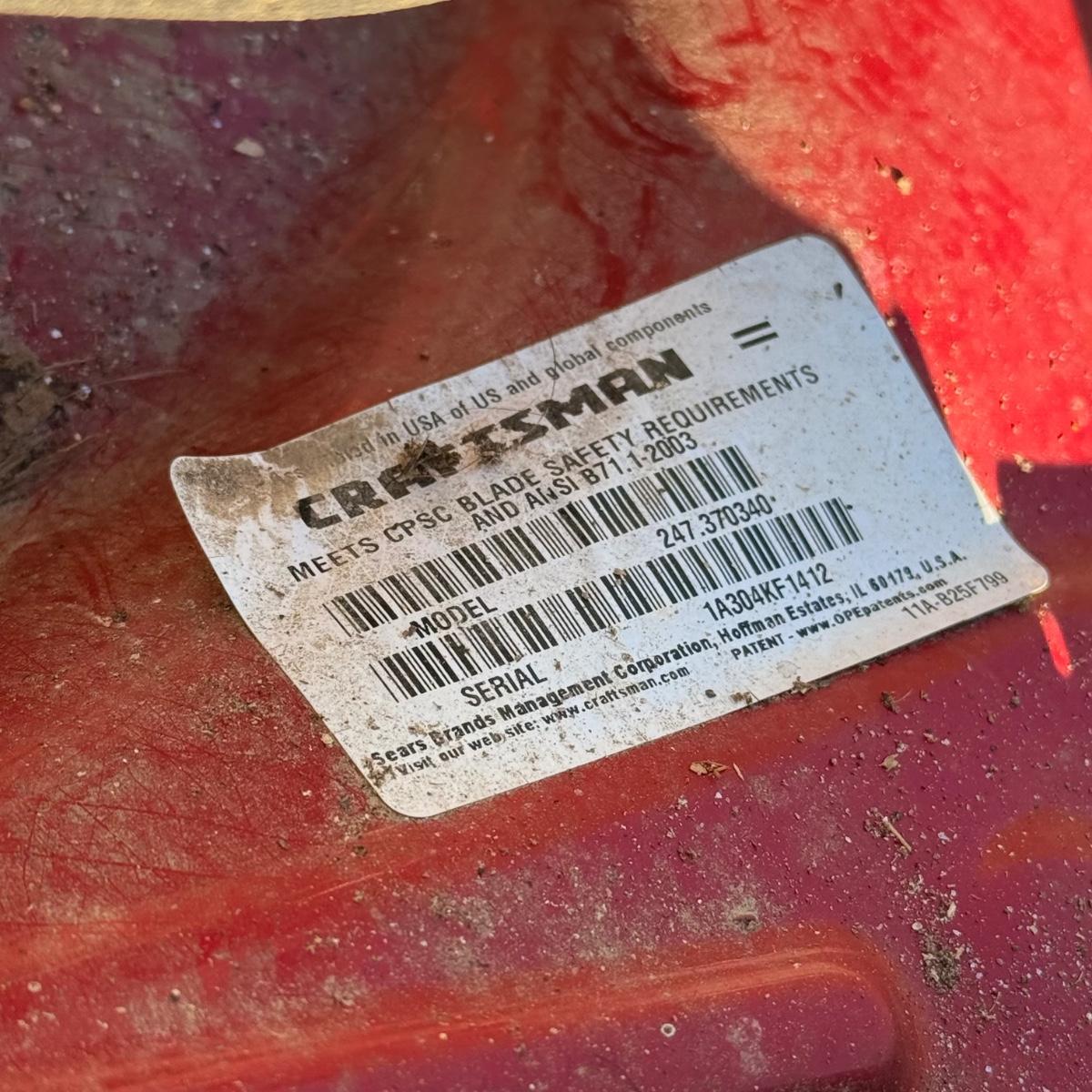 Craftsman lawn mower with grass catcher and operator’s manual. Grass catcher has some damage but appears that it shouldn’t affect its functionality. Mower turned over when pulled but did not start, likely due to no gas. Cord pulls freely.