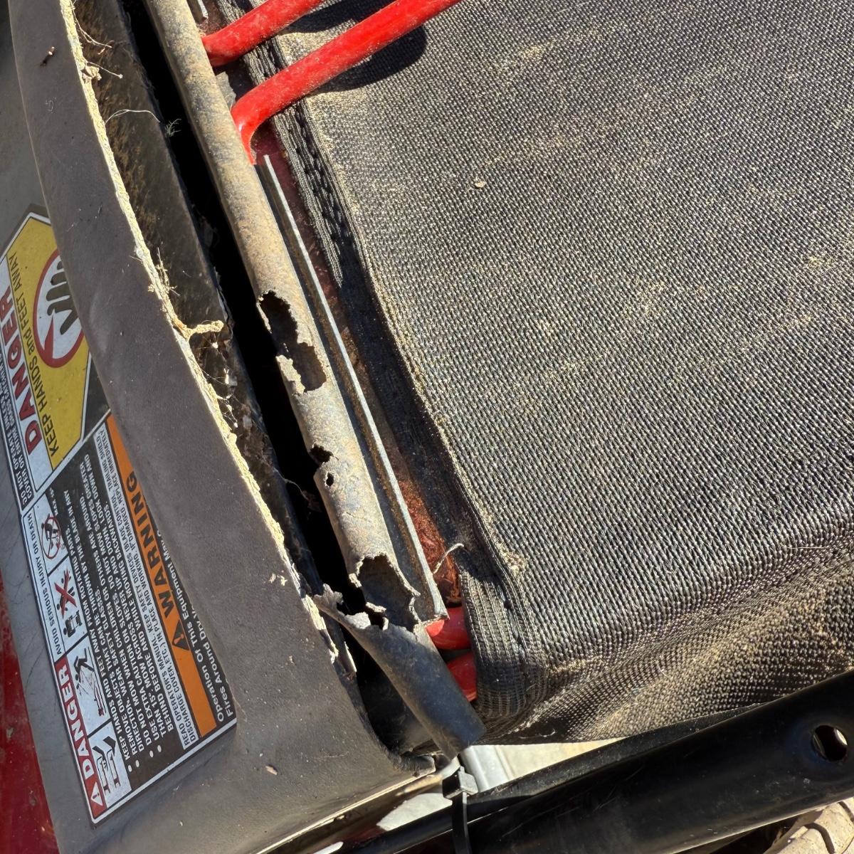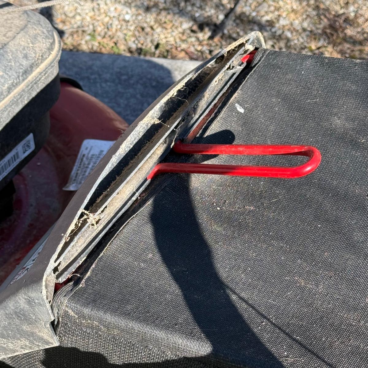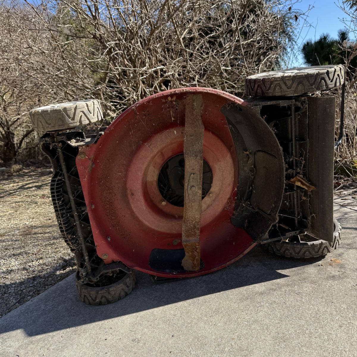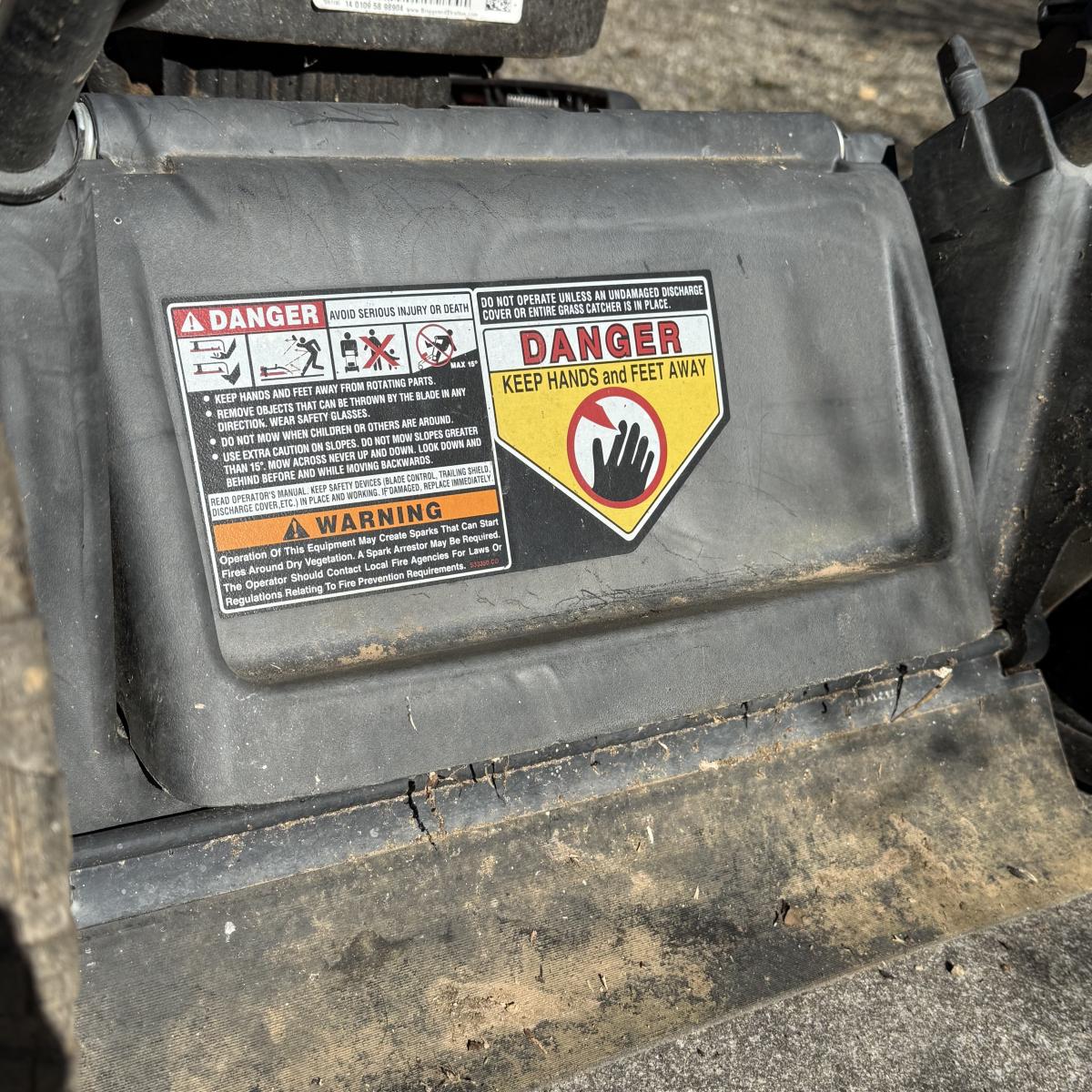 Craftsman lawn mower with grass catcher and operator’s manual. Grass catcher has some damage but appears that it shouldn’t affect its functionality. Mower turned over when pulled but did not start, likely due to no gas. Cord pulls freely.