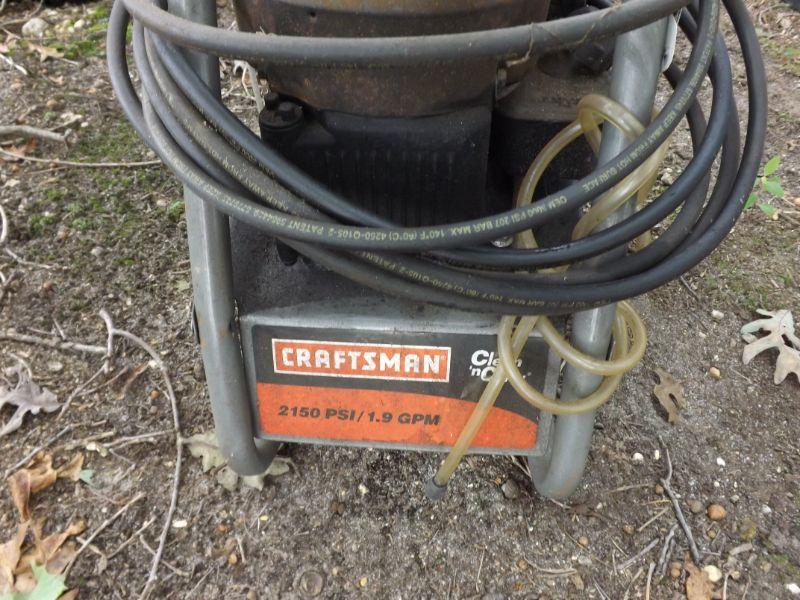 Craftsman 2150 PSI Pressure Washer **Please read Terms and Conditions before placing a bid. Pick up is Sunday, September 1, 2019 from 10am to 4pm in Williamstown. All sales are final. All sales are as is, where is. Please review all photos. Any props included in photos are not included in listing. All measurements are approximate. From home with cats.