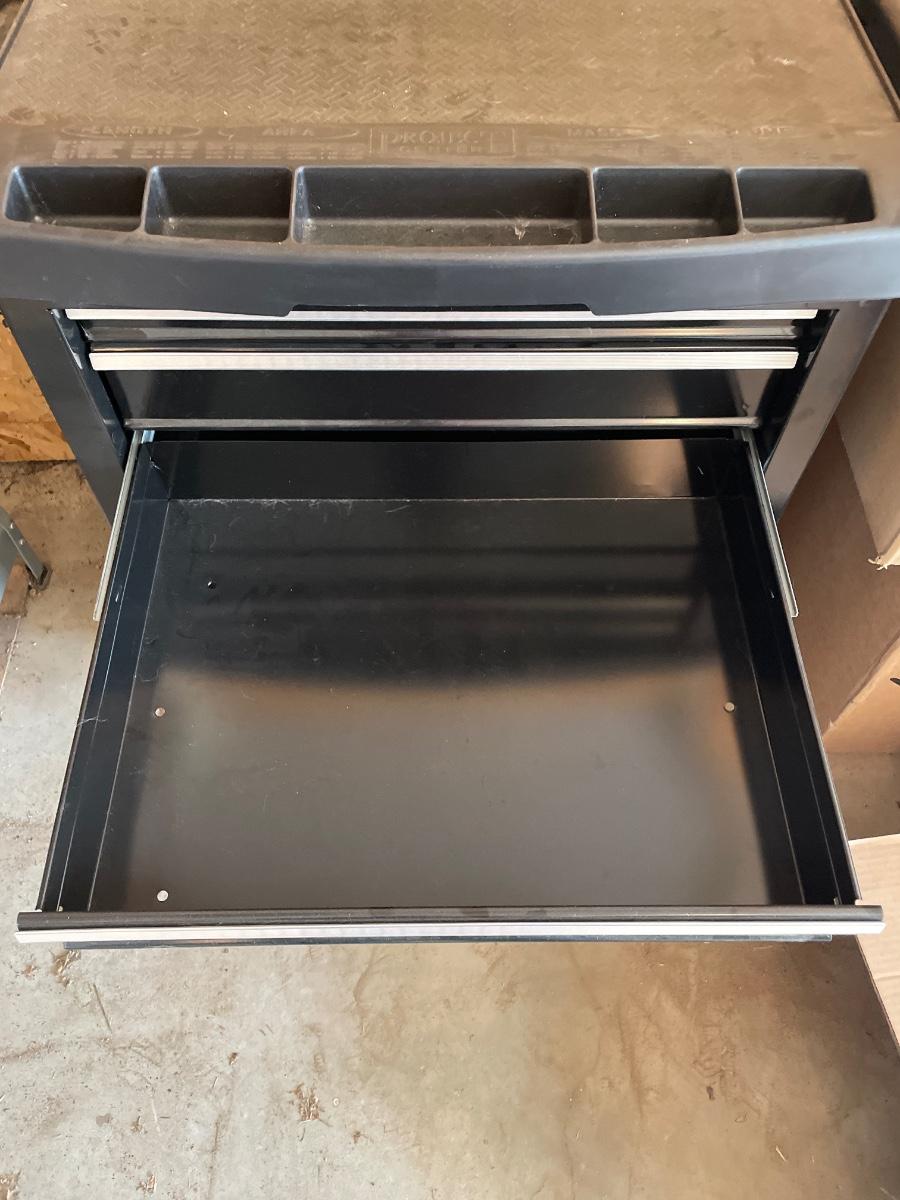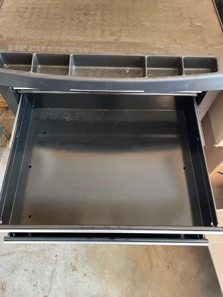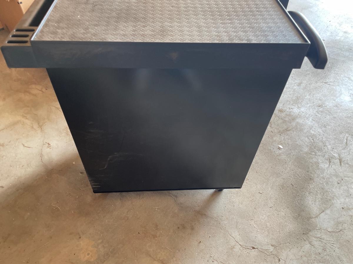 Craftsman 3 drawer rolling tool cart. Measurements are 33 1/2 inches wide by 32 inches tall by 19 1/2 inches deep.