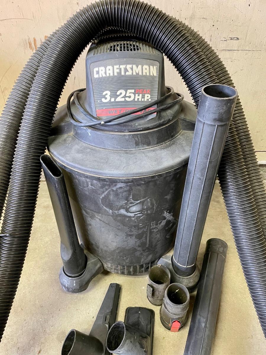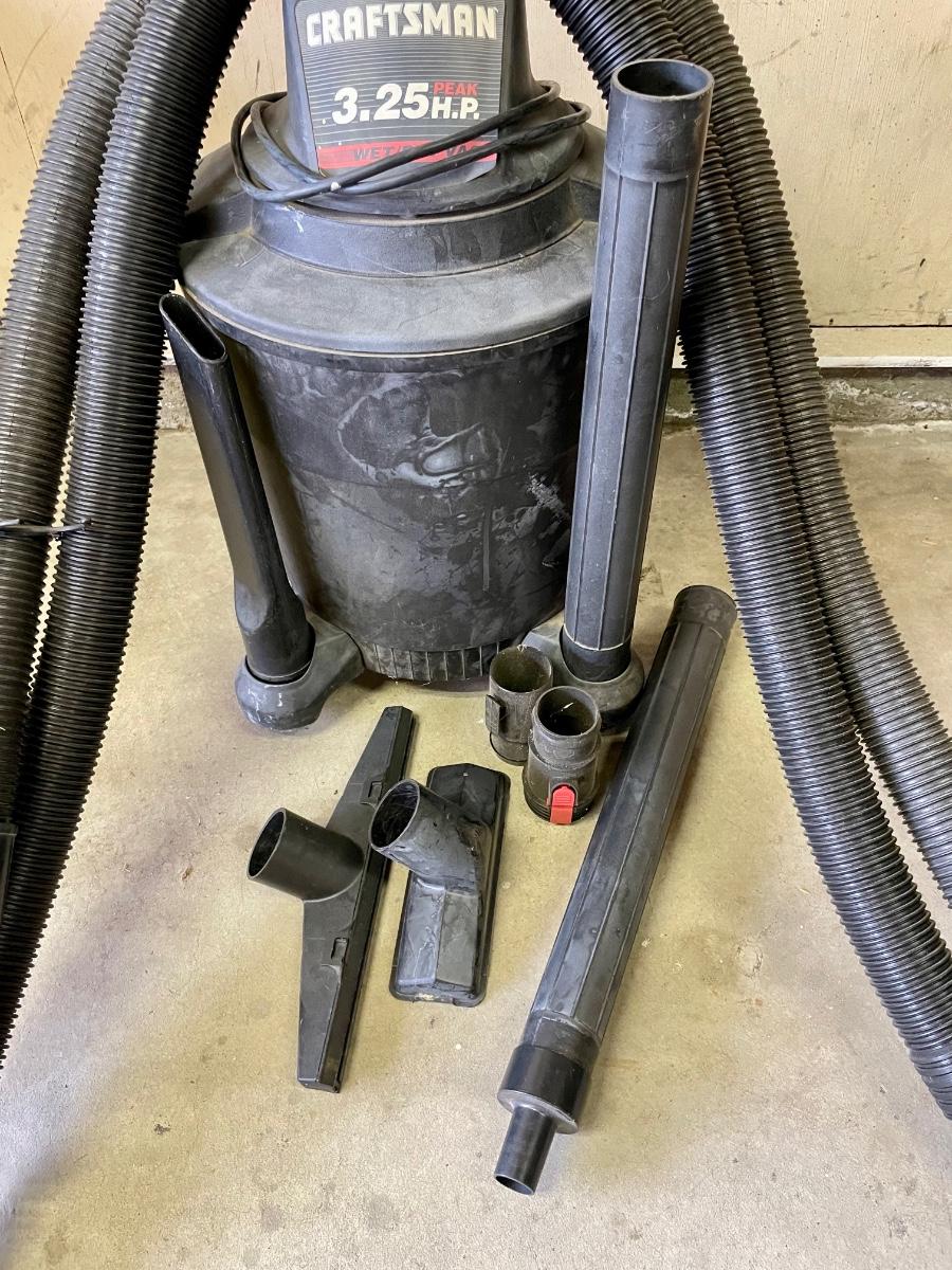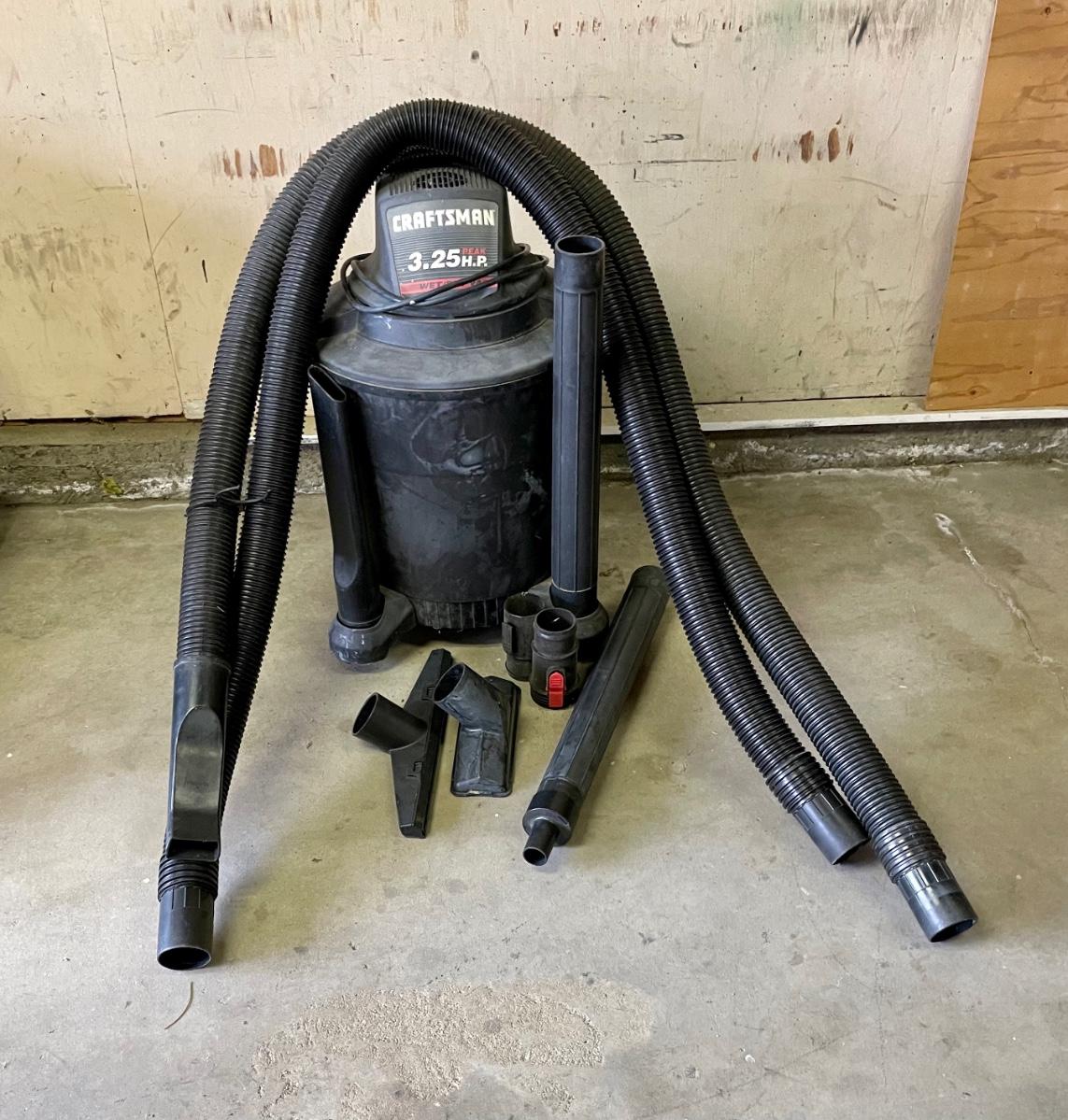 Craftsman 3.25 HP Shop Vac with Accessories: long hoses and hose attachments.