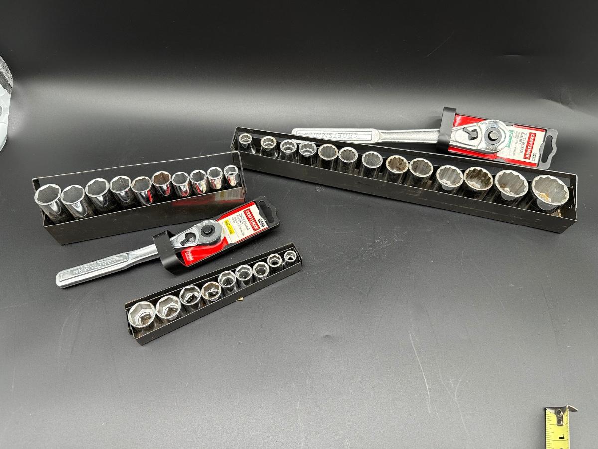 Craftsman 3/8” & 1/2” Drive Socket Lot w/ New 3/8” Ratchet – Metric & SAE – 30mm, 19mm, Deep & Standard