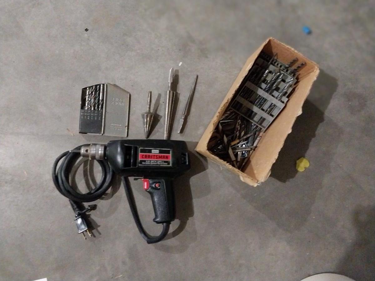 CRAFTSMAN 3/8" ELECTRIC DRILL AND LOTS DRILLBITS