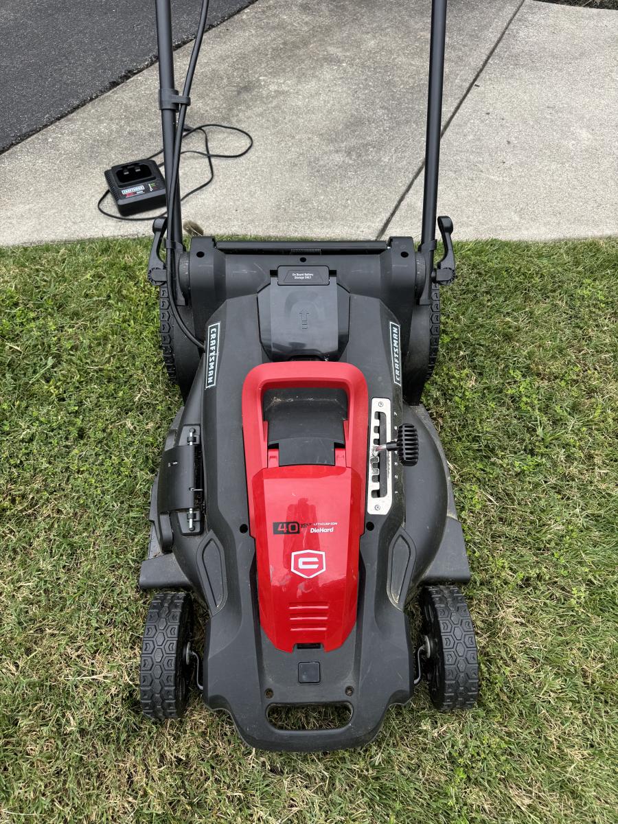 Craftsman 40v Lithium Ion Battery Mower & 2 Batteries, & Charger, & 2 Grass Catching Bags.