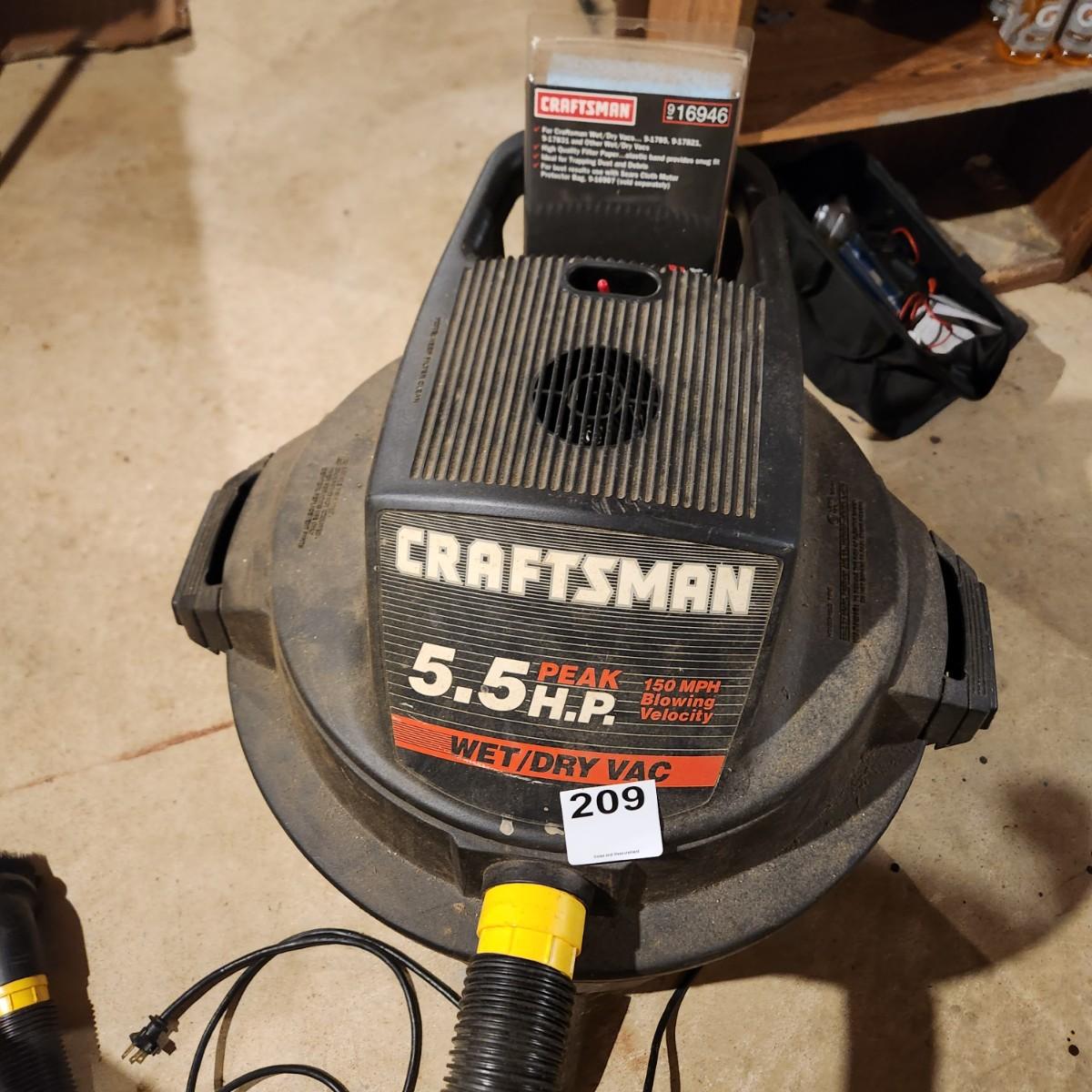 Craftsman 5.5 H.P. Wet Dry Vac tested Working with bags and Hoses