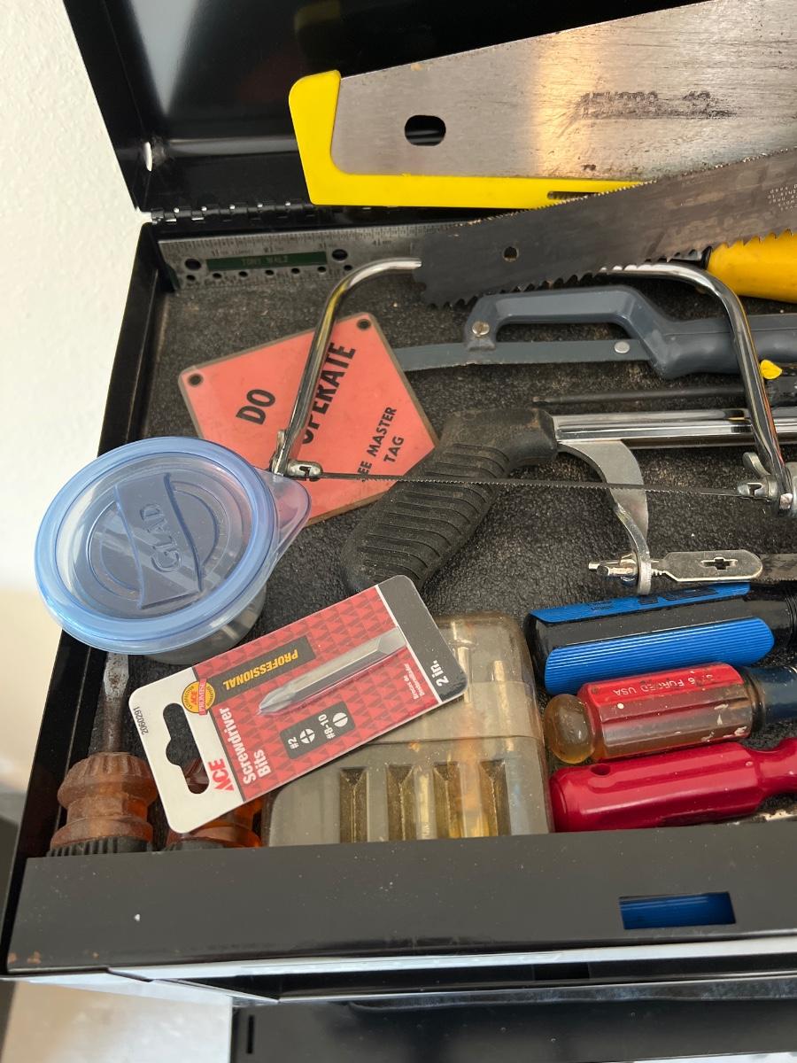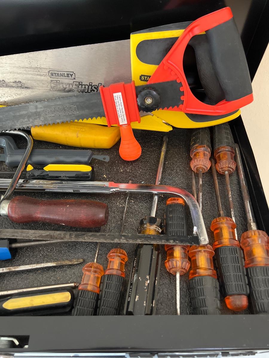 The awesome tool chest comes with all tools that are in the drawers. Some of the tools included are Craftsman. See pictures. The top key hole does lock but bottom does not lock. 53” H x 26.5” W x 14.5” D