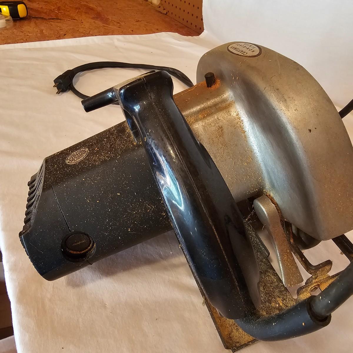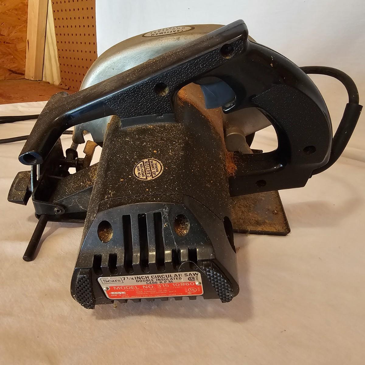 Craftsman brand 7 1/4" circular saw. Double insulated, comes with adjustable guide fence. Saw powered on when plugged in. See photos for details. Shipping available.