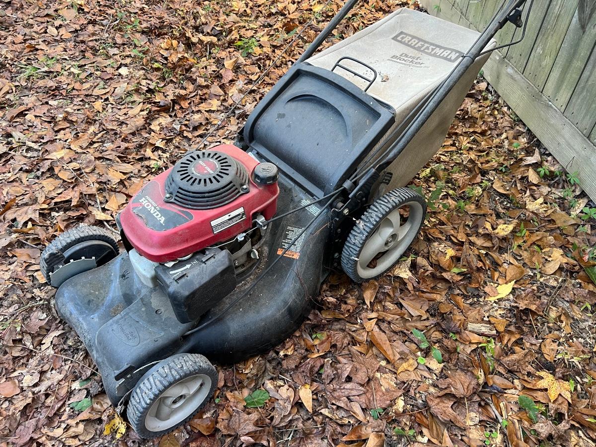 Honda motor. Mower is self-propelled however please see pictures as the self-propel handle seems to be broken. Mower was garage kept. Did not try to start. Needs maintenance. As-Is.