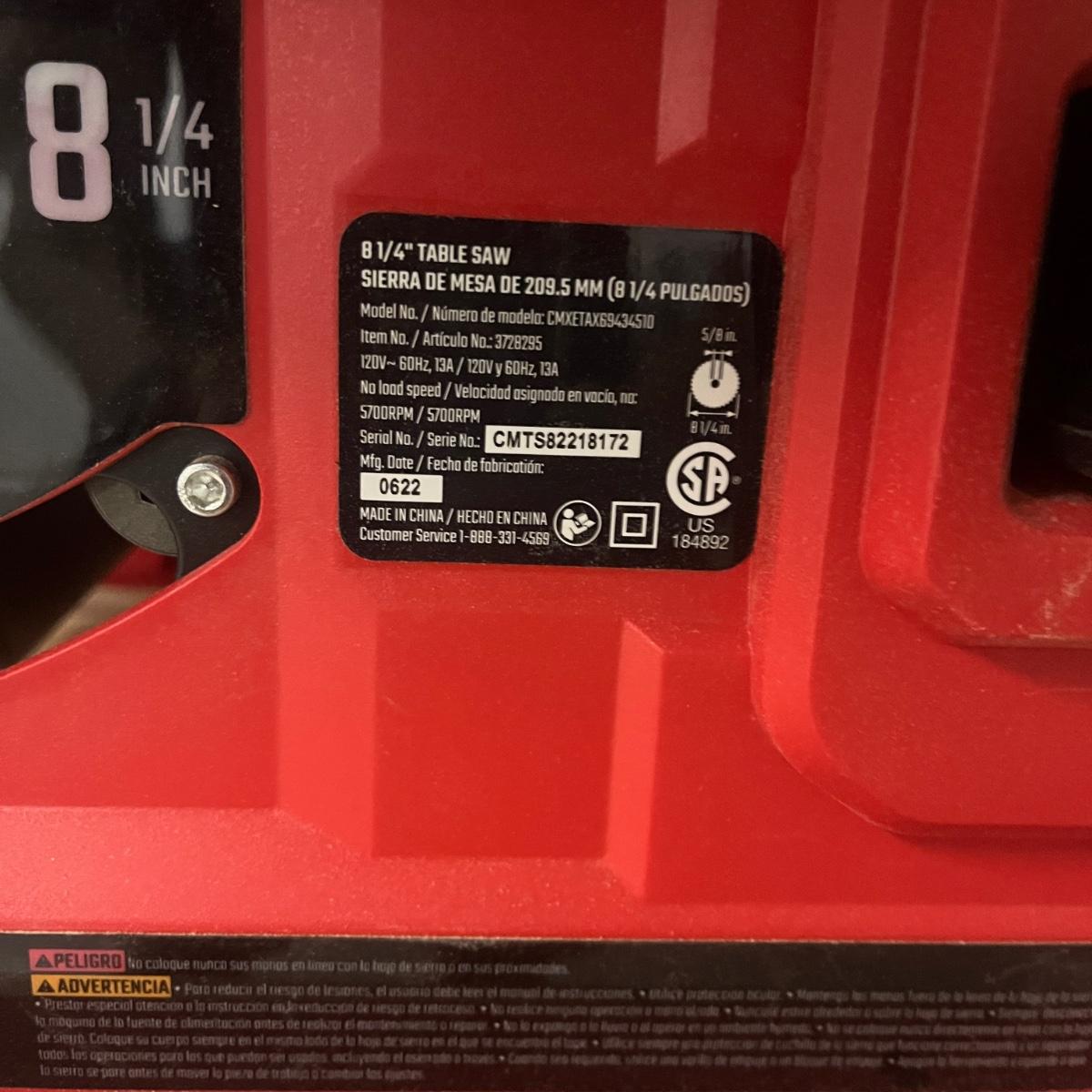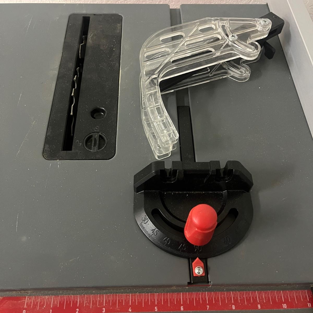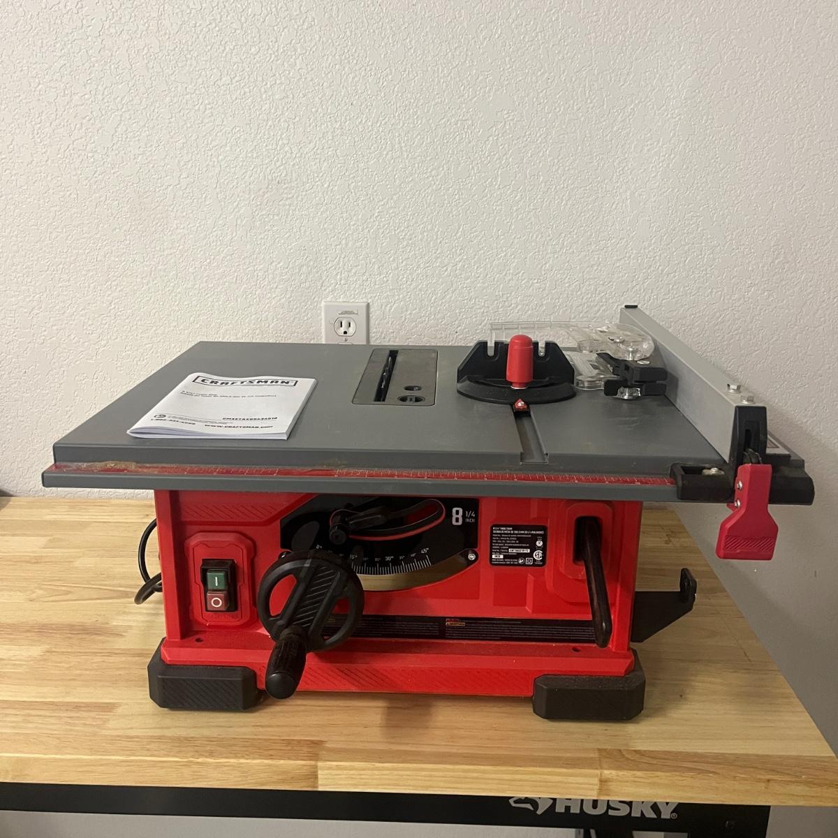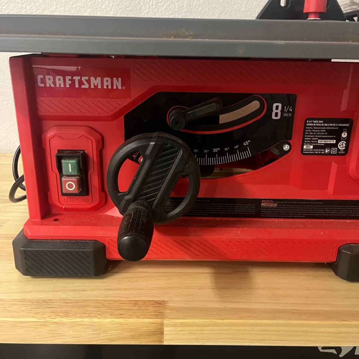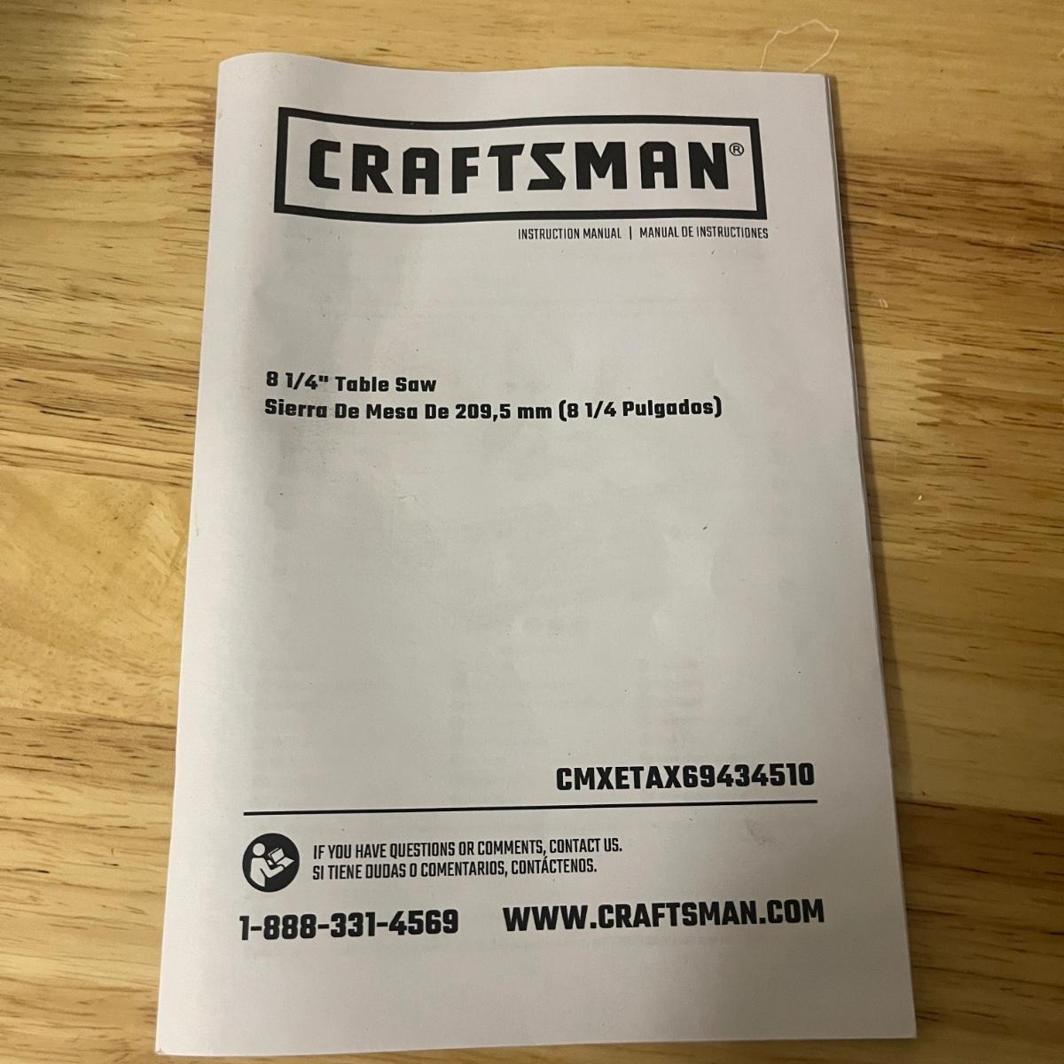 Lot includes a Craftsman 8 1/4” table saw with owners manual. Saw measures 19” x 25” x 13.5”H and powered on when plugged in.