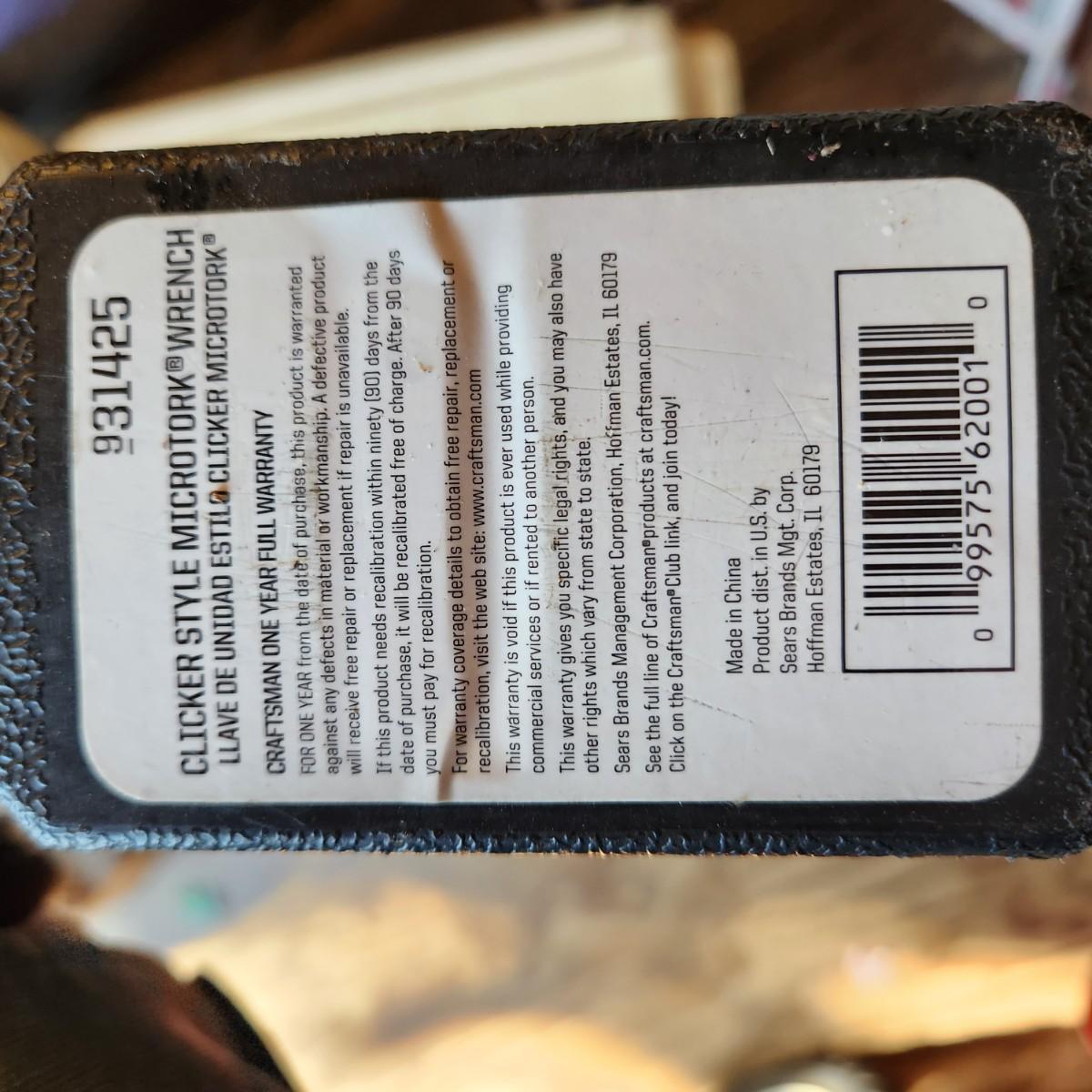 Craftsman 931425 1/2 inch Drive Clicker Style Microtork Torque Wrench