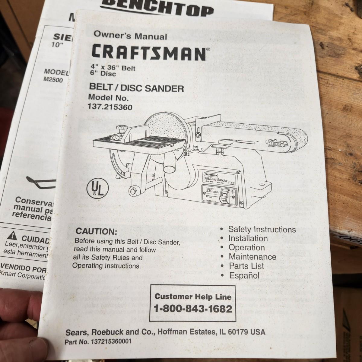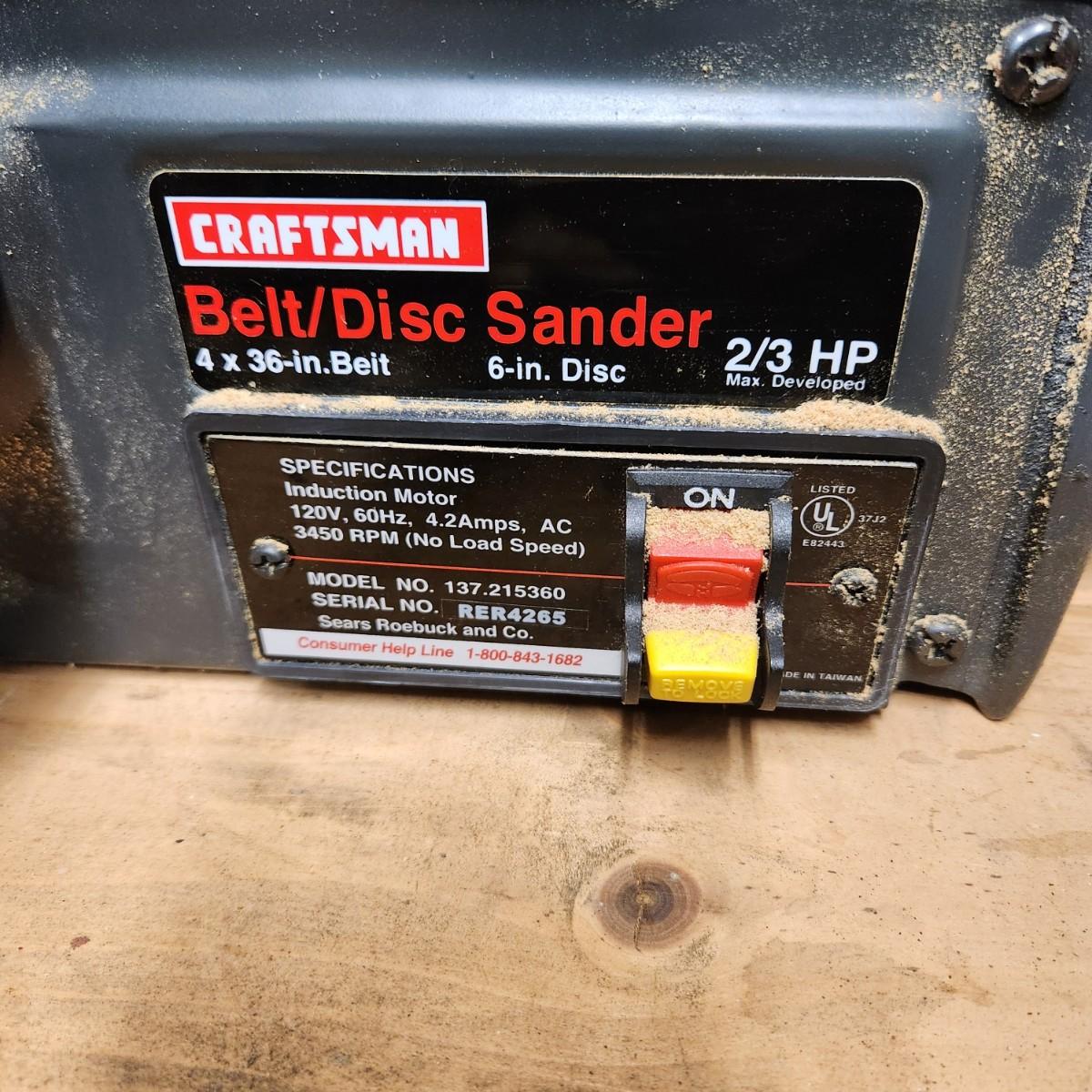 Craftsman Belt & Disc Sander 4x36 belt 6" Disc Tested Working w Manual