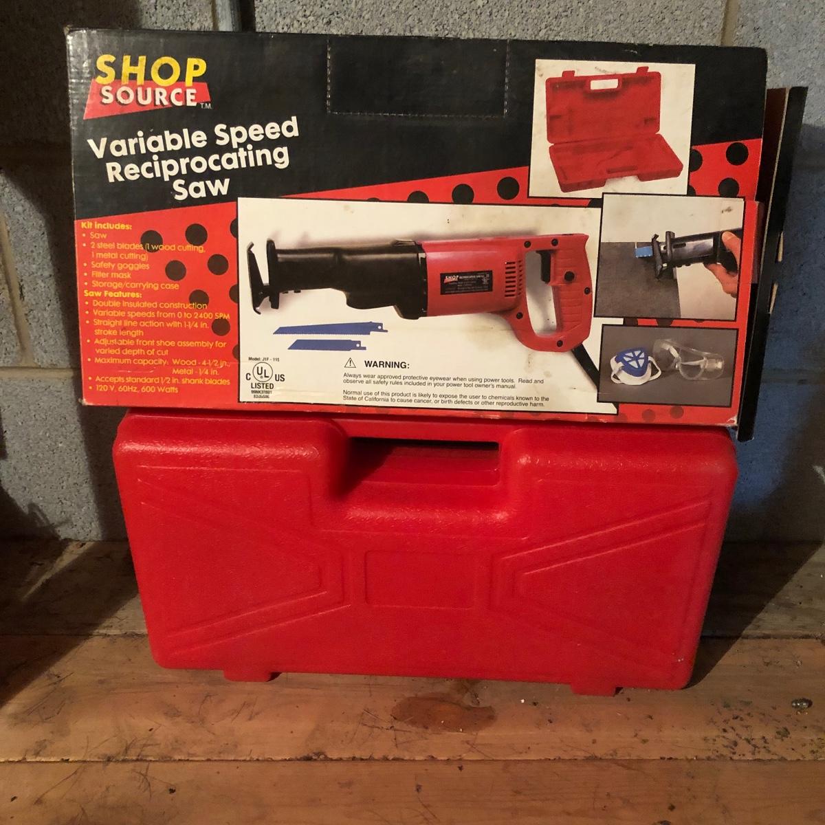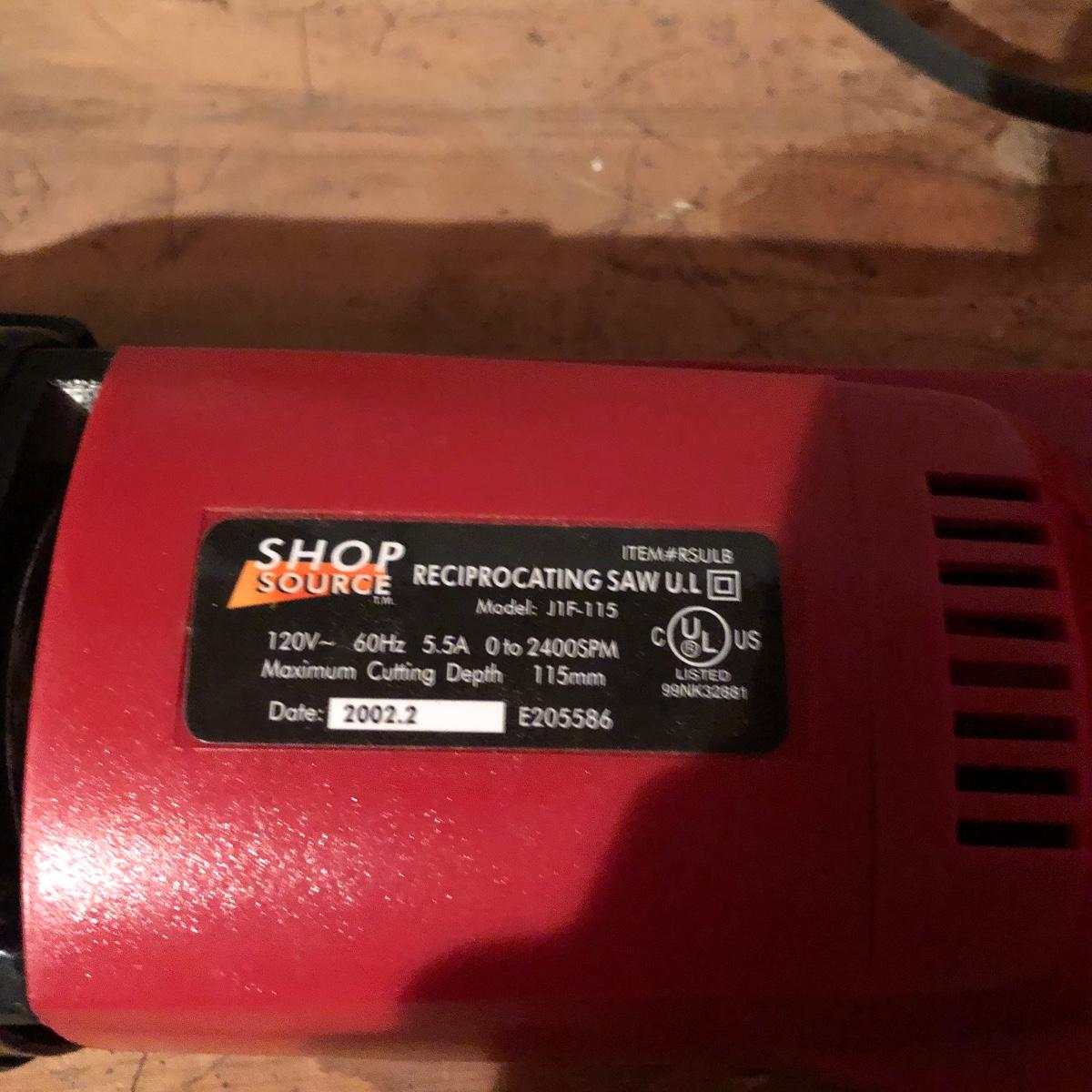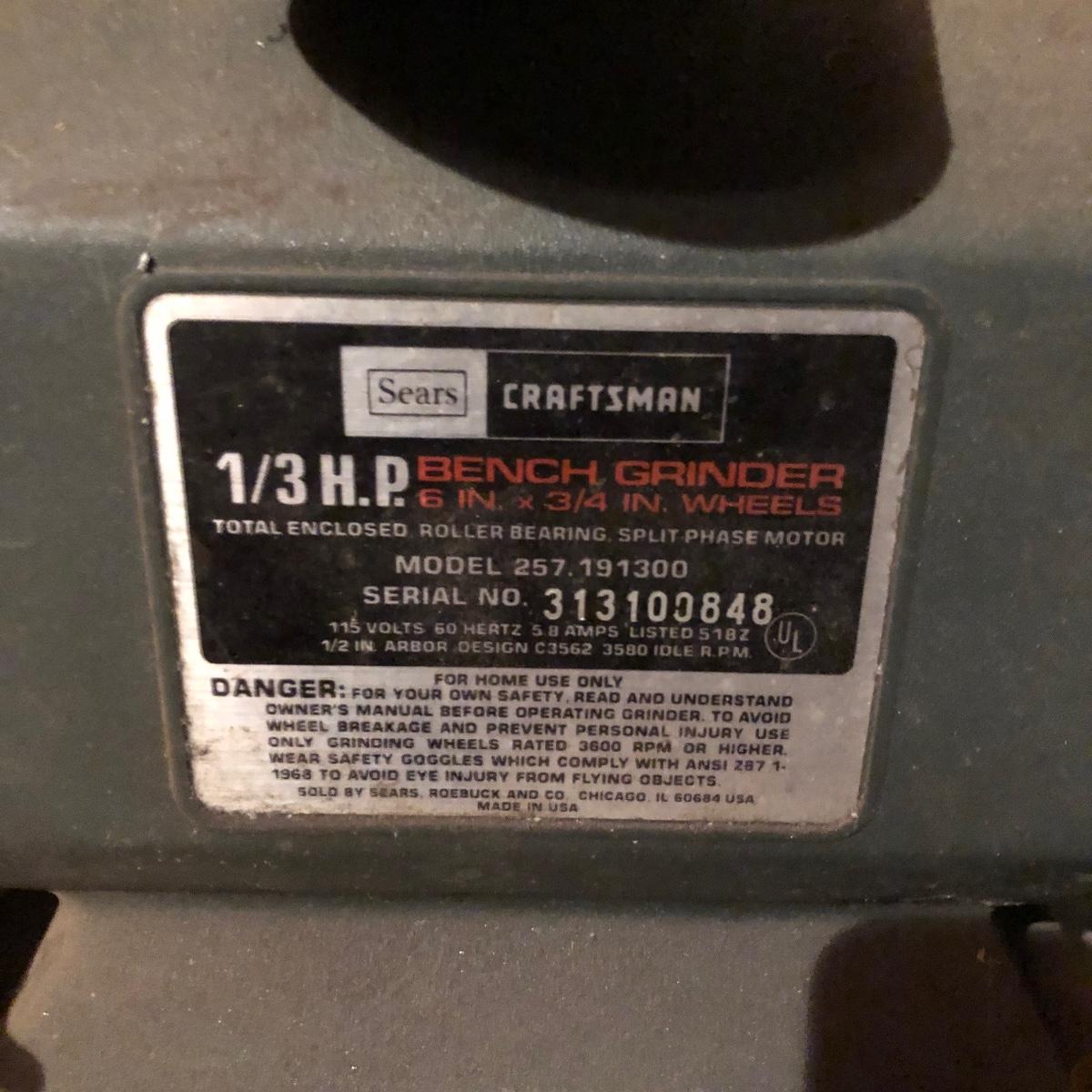 Lot includes a Craftsman 1/3 HP bench grinder model# 257 191300, Craftsman sander model # 315 11631 and Shop Source reciprocating variable speed saw. All tools worked when tested.