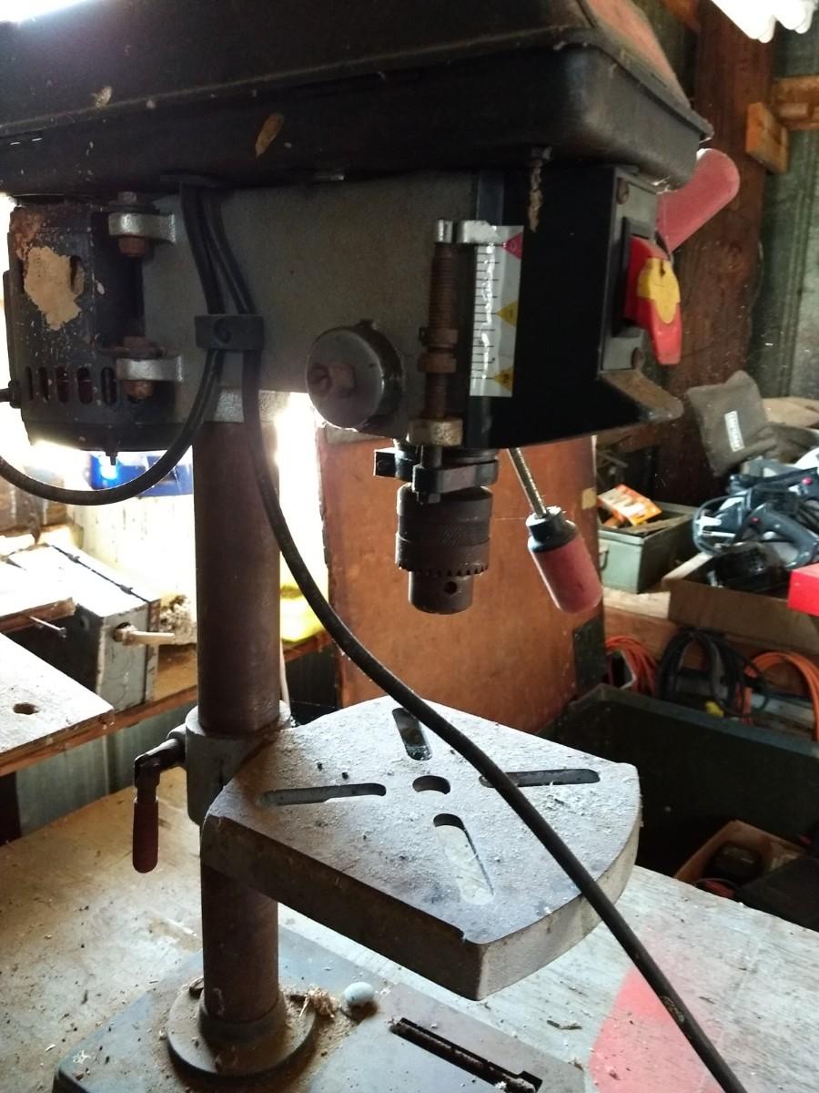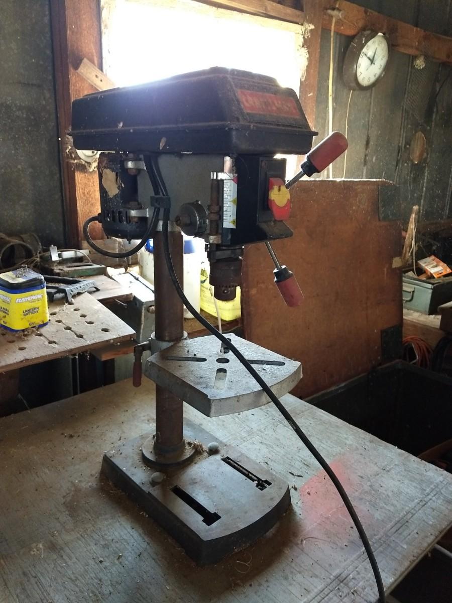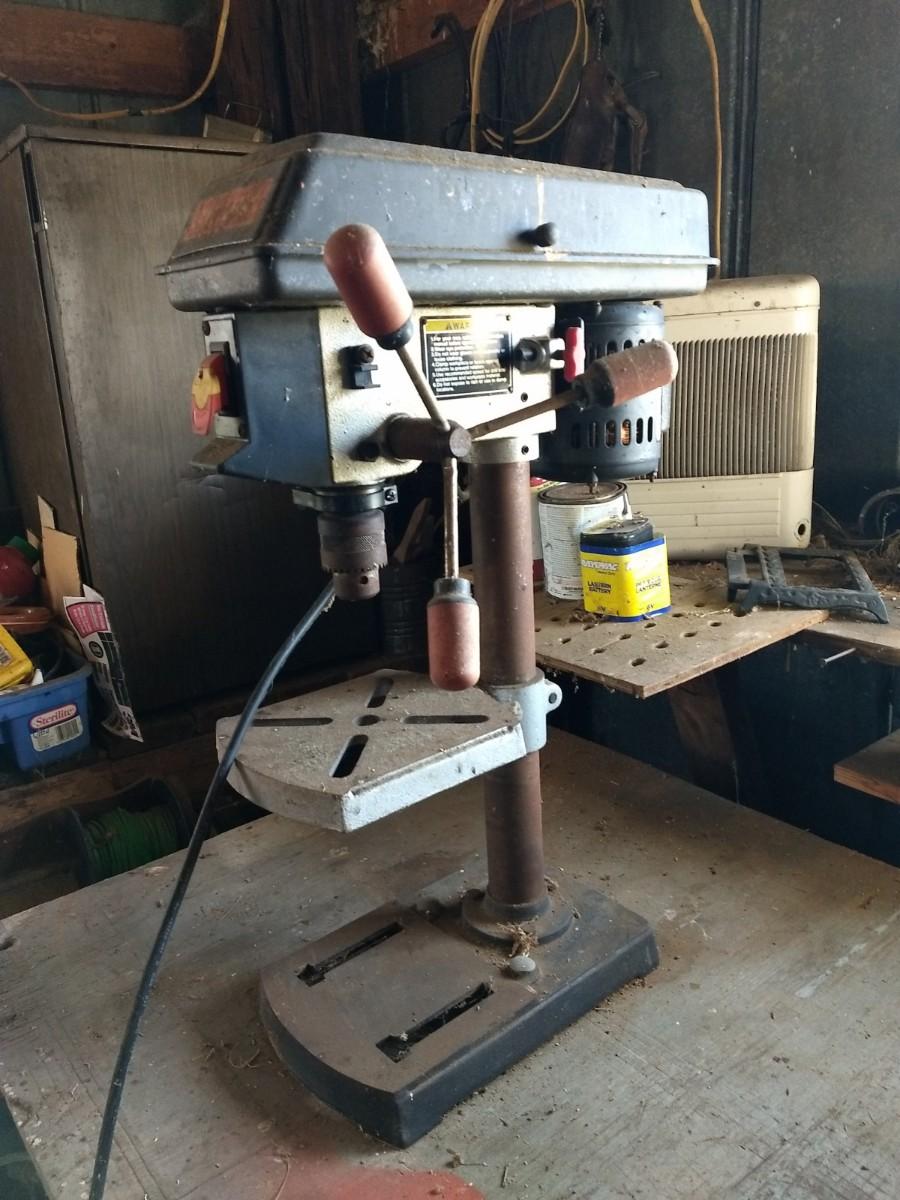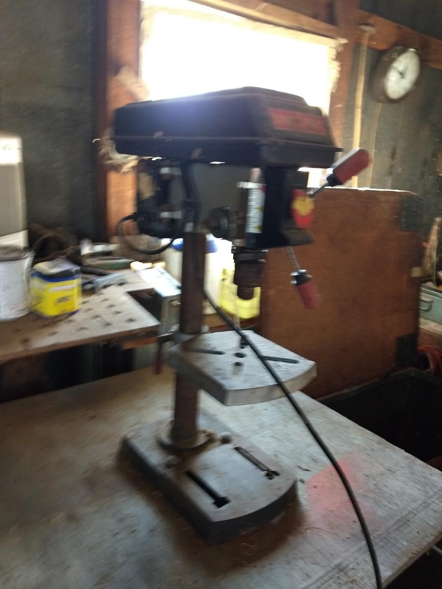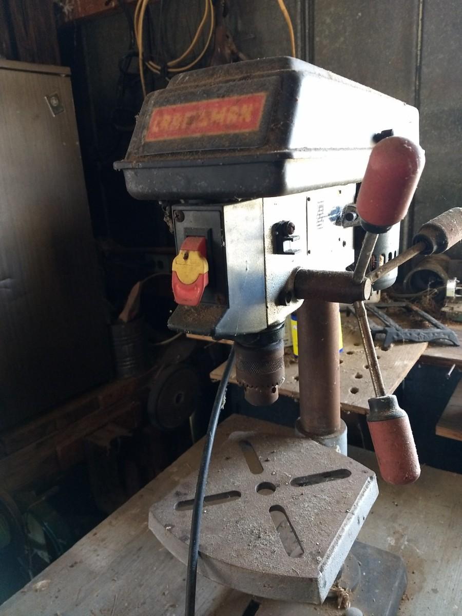 Craftsman Bench Top Drill Press on Wood Cabinet