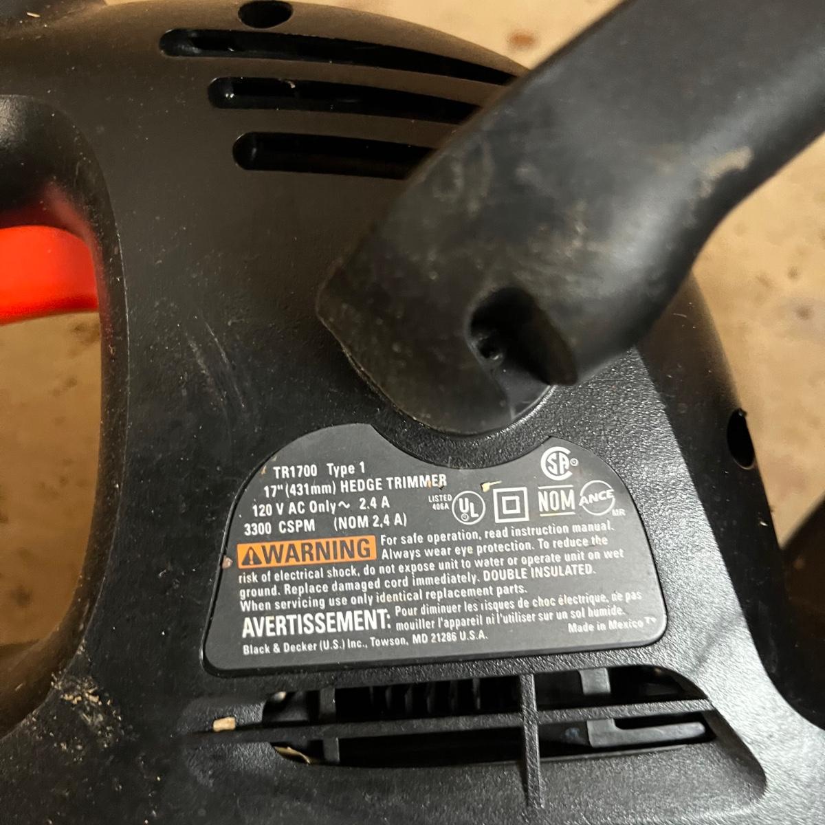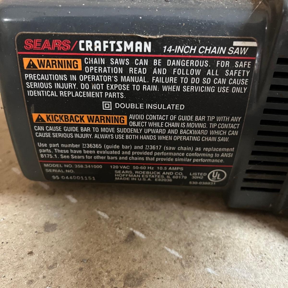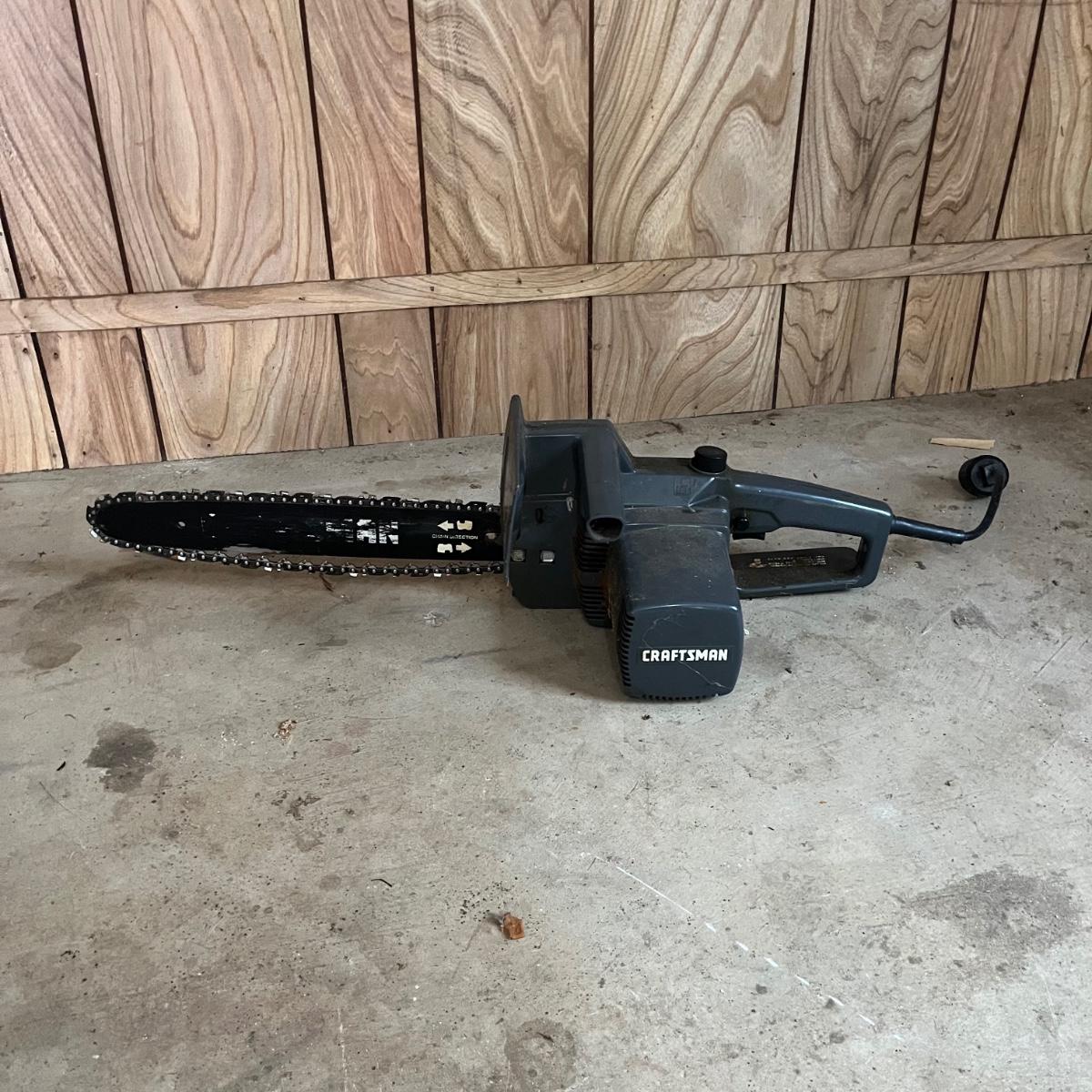 Lot includes a Craftsman Electric chain saw with 14” bar, model # 358.341000 and a Black and Decker 17” electric hedge trimmer model# TR1700. Both tools worked when tested.