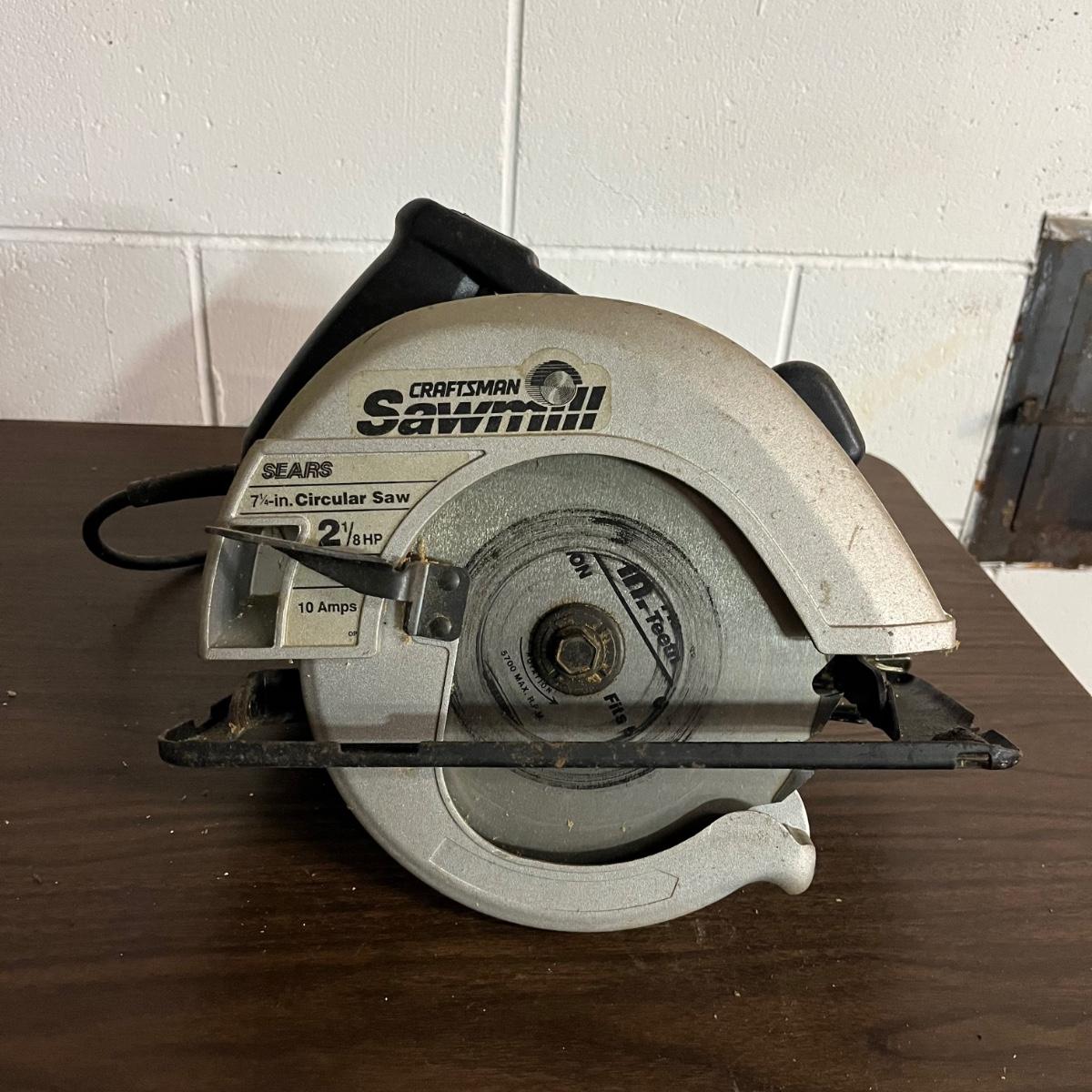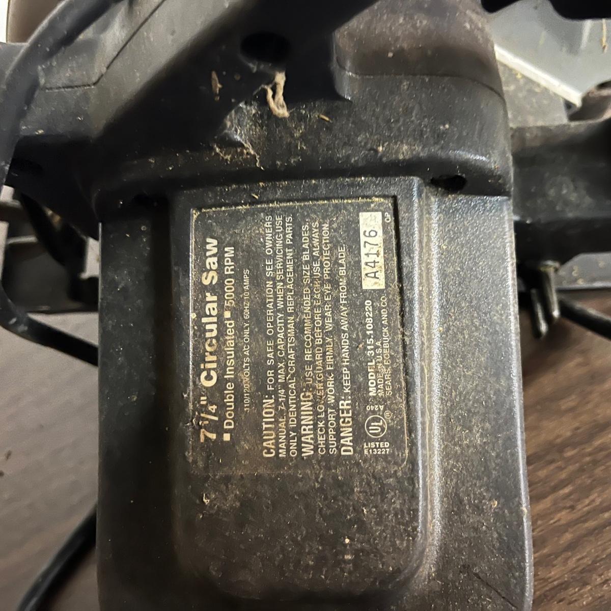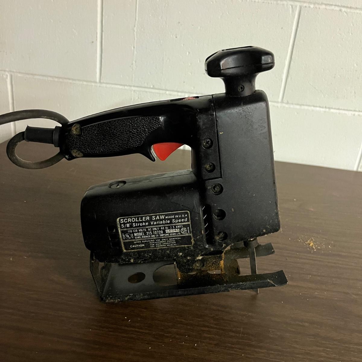 Lot includes a Craftsman 7 1/4” Circular saw me Del #315-108220 and a Craftsman scroller saw model # 315-10720. Both saws worked when tested.