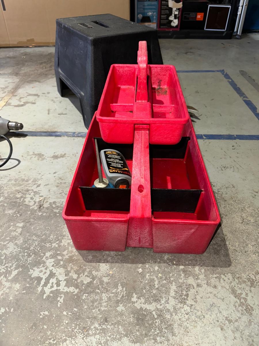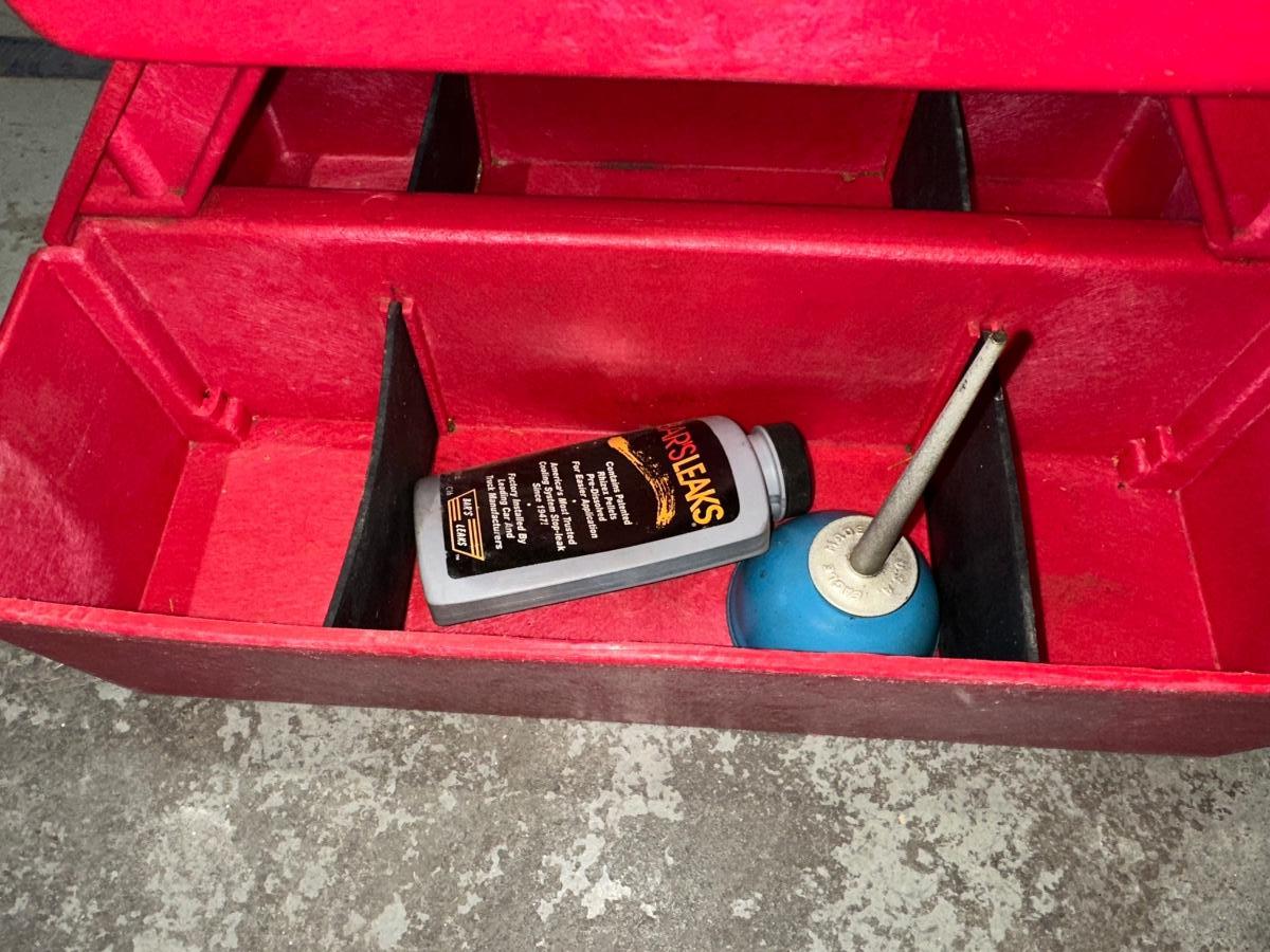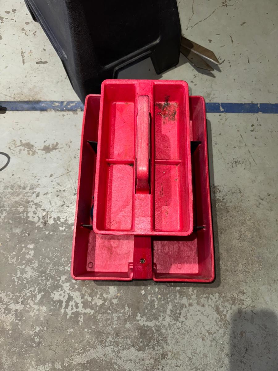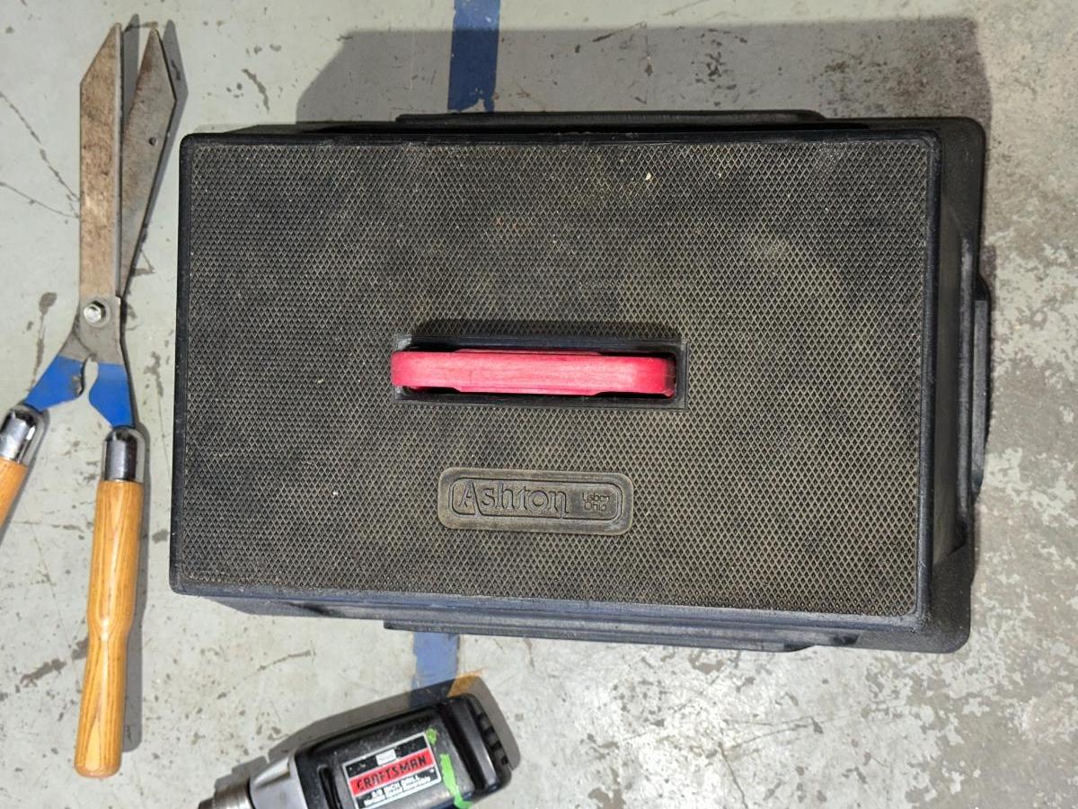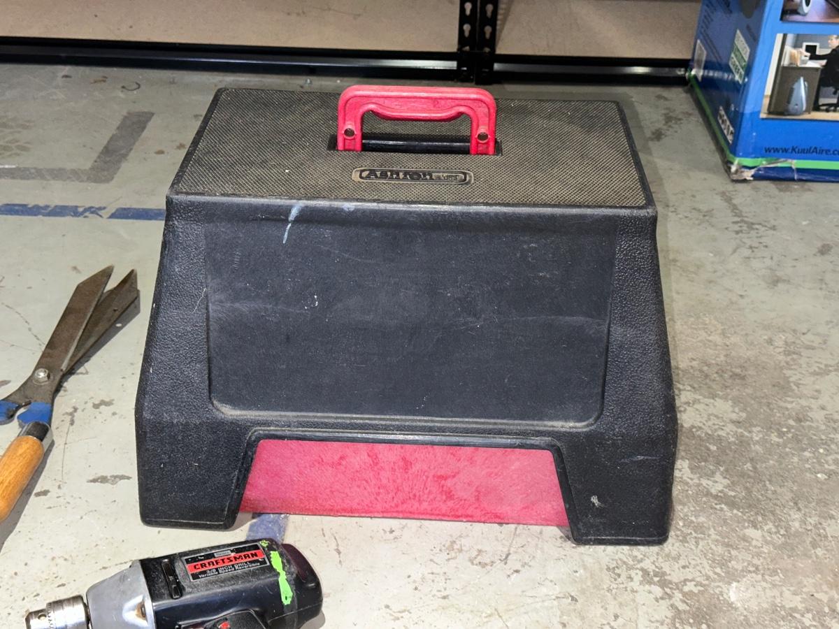CRAFTSMAN DRILL, HEDGE CUTTERS AND A TOOL BOX STEP STOOL