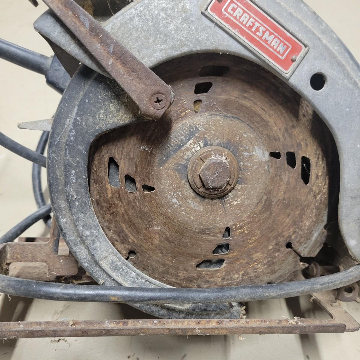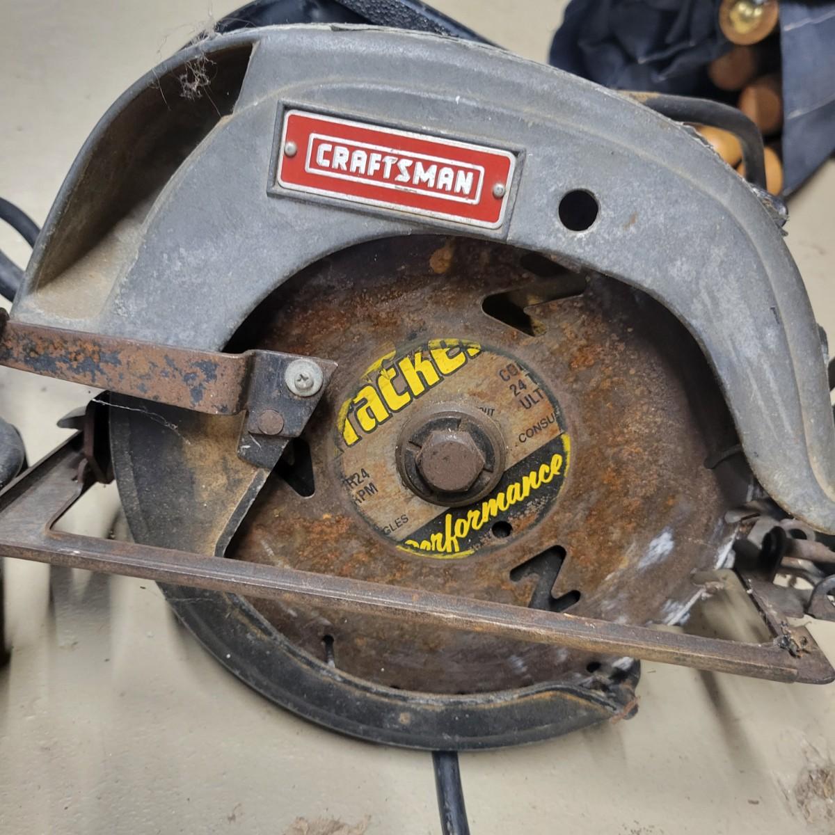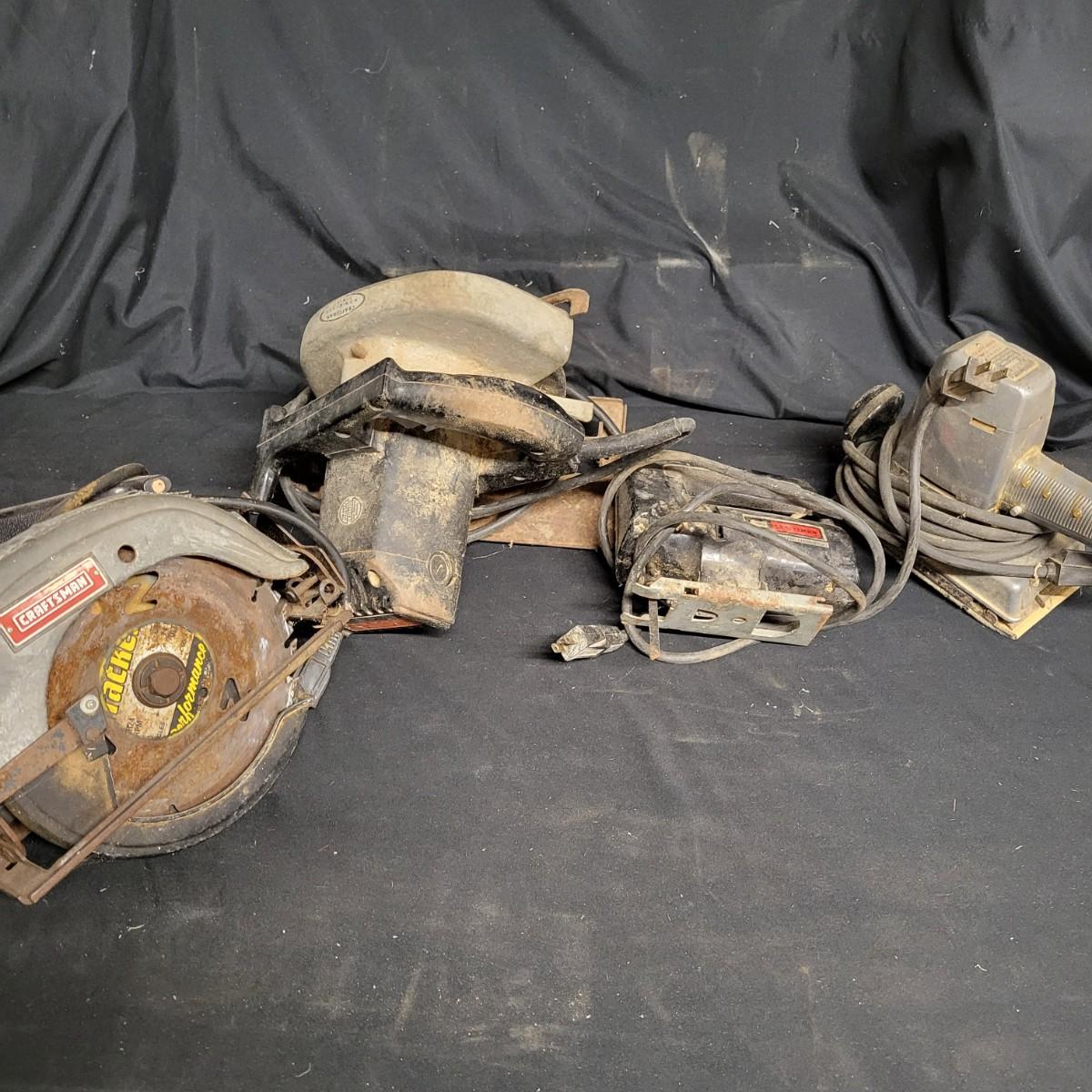 4 older Craftsman corded tools. All were tested and work. 2, 7.25" circular saws model #315.10860. 1/2" Sabre saw model # 315.17215. Orbital sander with a stainless steel body. Model # 315.25811 Local pickup only