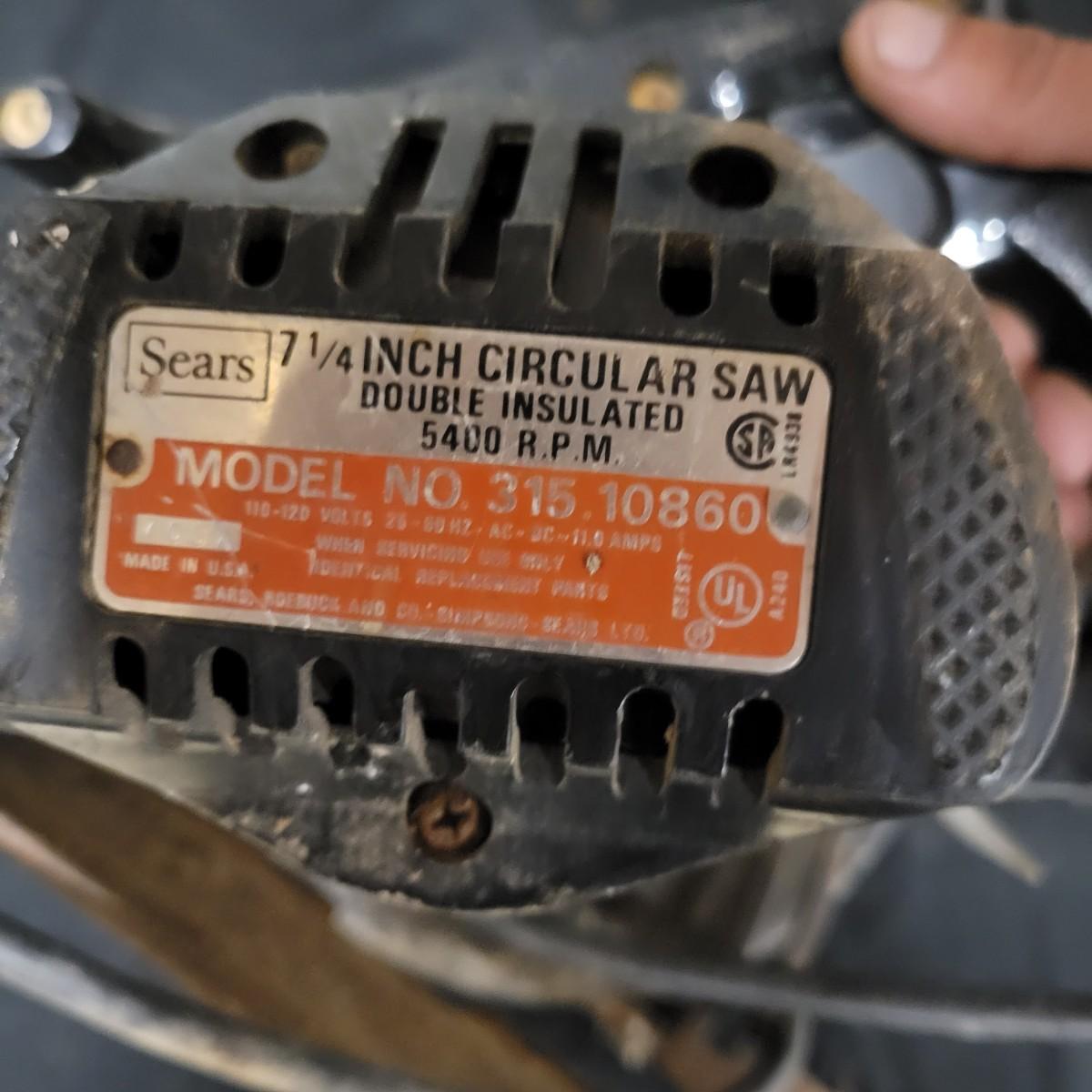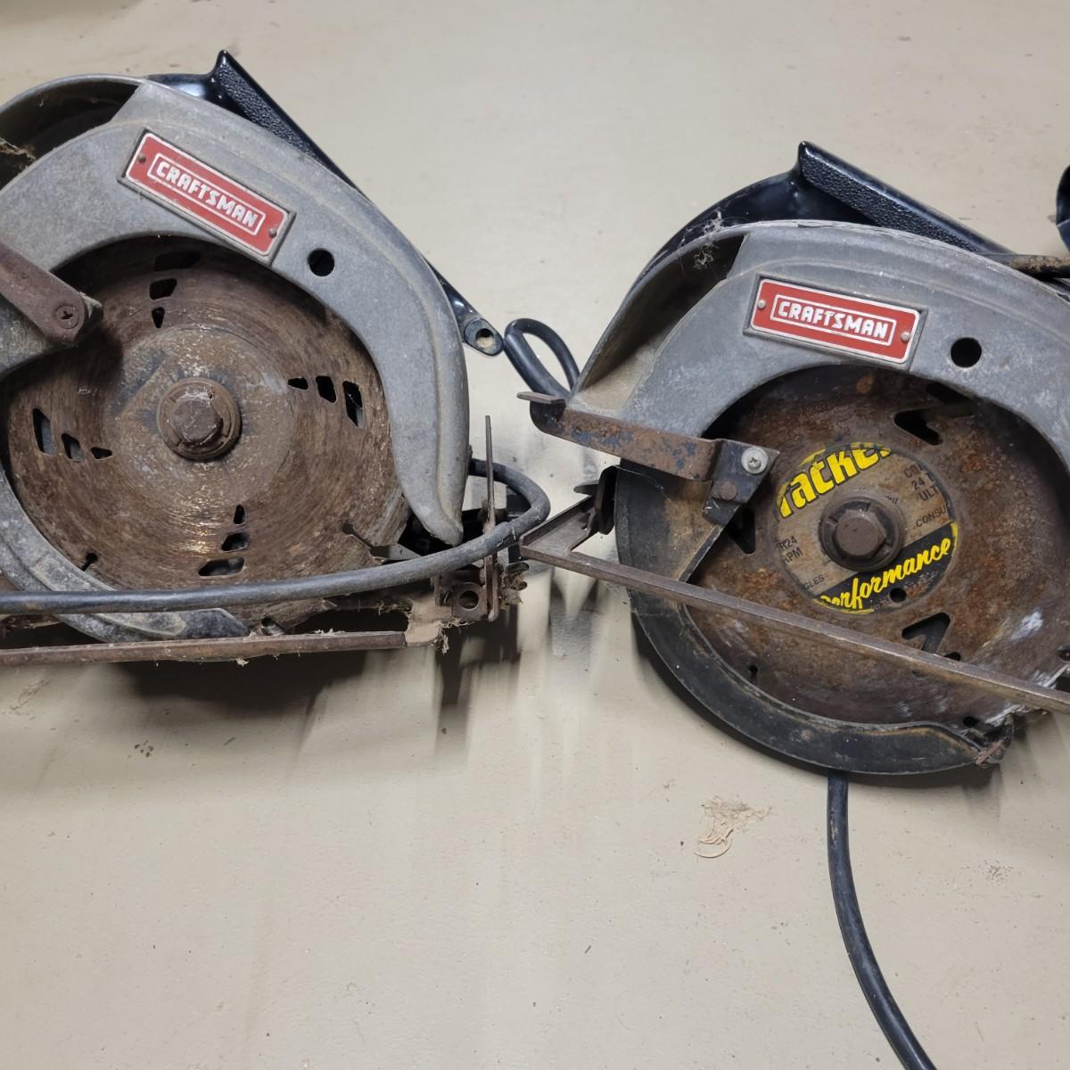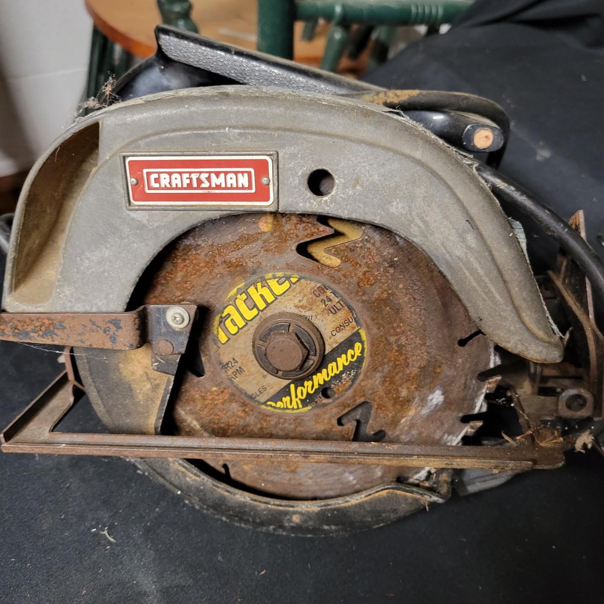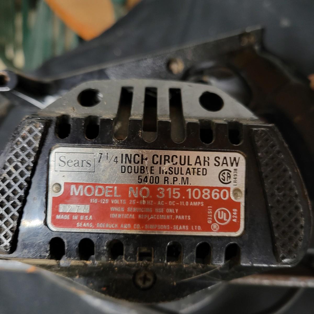 4 older Craftsman corded tools. All were tested and work. 2, 7.25" circular saws model #315.10860. 1/2" Sabre saw model # 315.17215. Orbital sander with a stainless steel body. Model # 315.25811 Local pickup only
