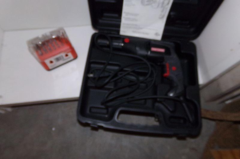 Craftsman corded drill In case and a set of drill bits