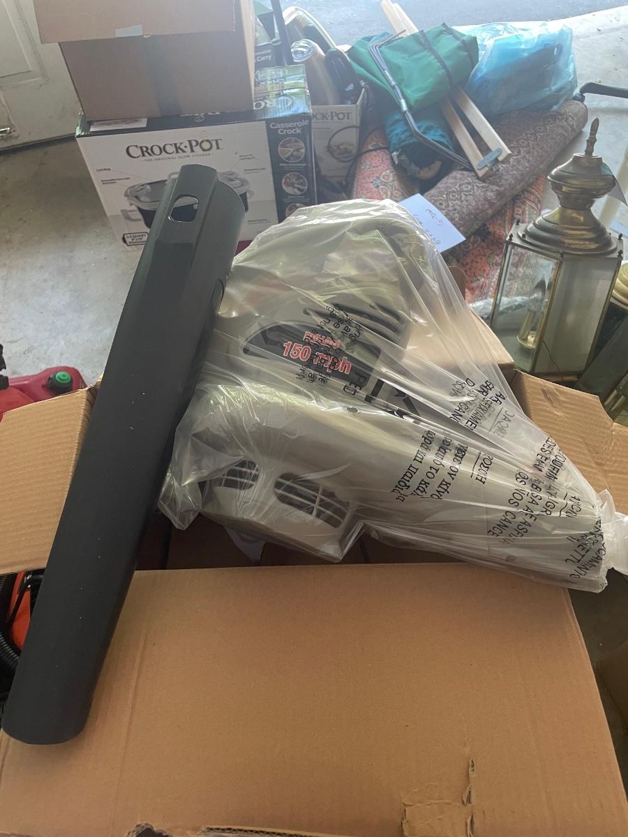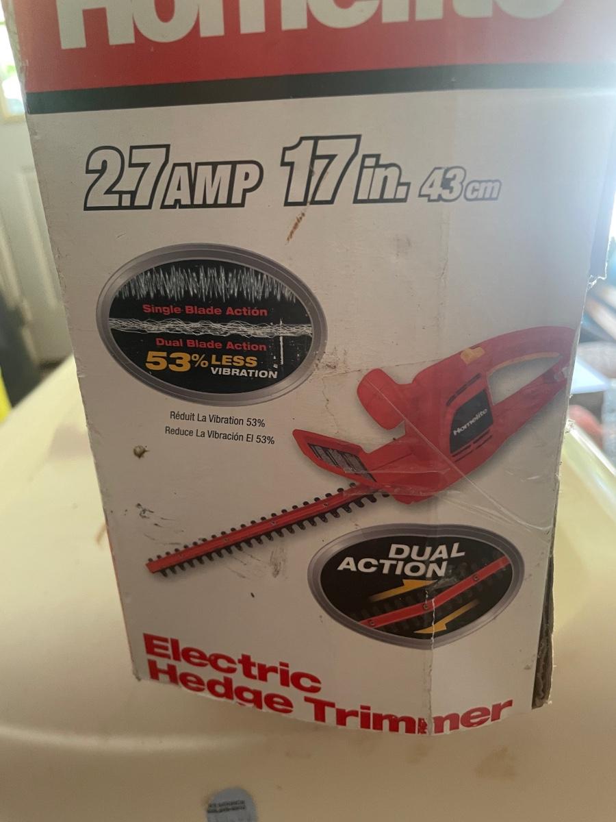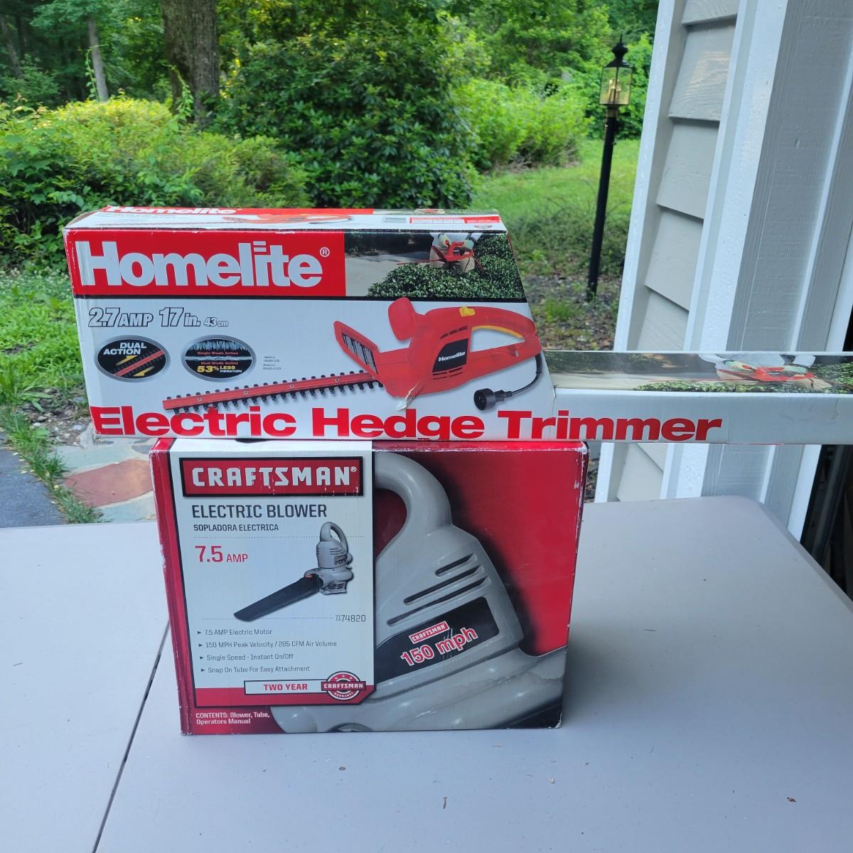 New and in original packaging Craftsman 7.5 amp electric blower. Also included is a Homelite 2.7 amp, 17" electric hedge trimmer that is new in box. Local pickup only