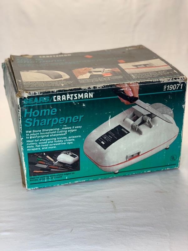 Sears Craftsman Home Knife Sharpener model # 919071, used with box.Every cook likes a sharp knife and this is the perfect knife sharpener. It is an older model but very heavy duty and has original box. Local pickup only.
