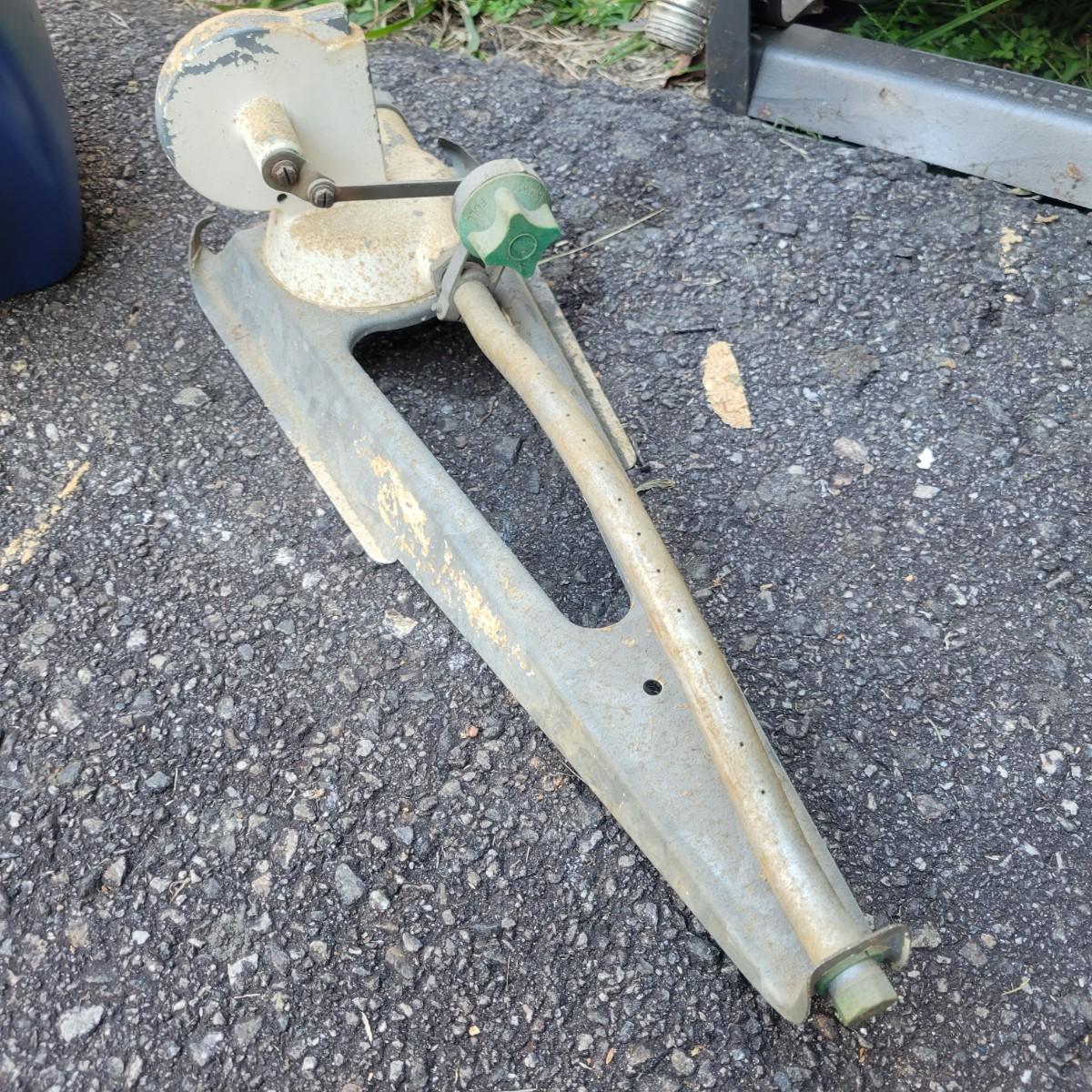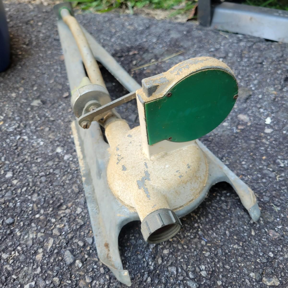 A Craftsman hose reel, 50' hose, two sprinklers, watering can, hose quick connects and nozzle in good condition. The older sprinkler is made of metal and the hose appears to be a better quality Sears 50' hose. Hose reel .measures approximately 21" x 19" x 22" Local pickup only