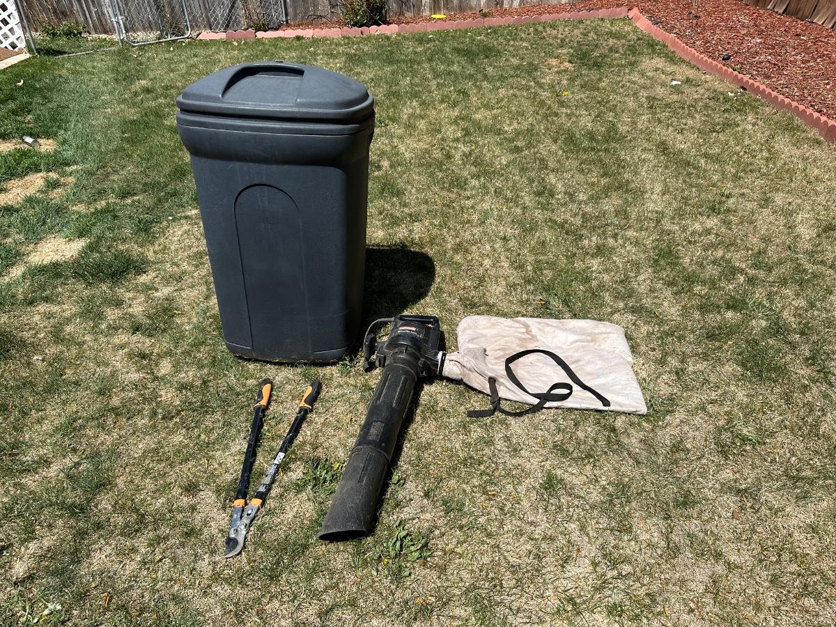 CRAFTSMAN LEAF BLOWER/VACUUM, LOPERS AND LARGE TRASH CAN