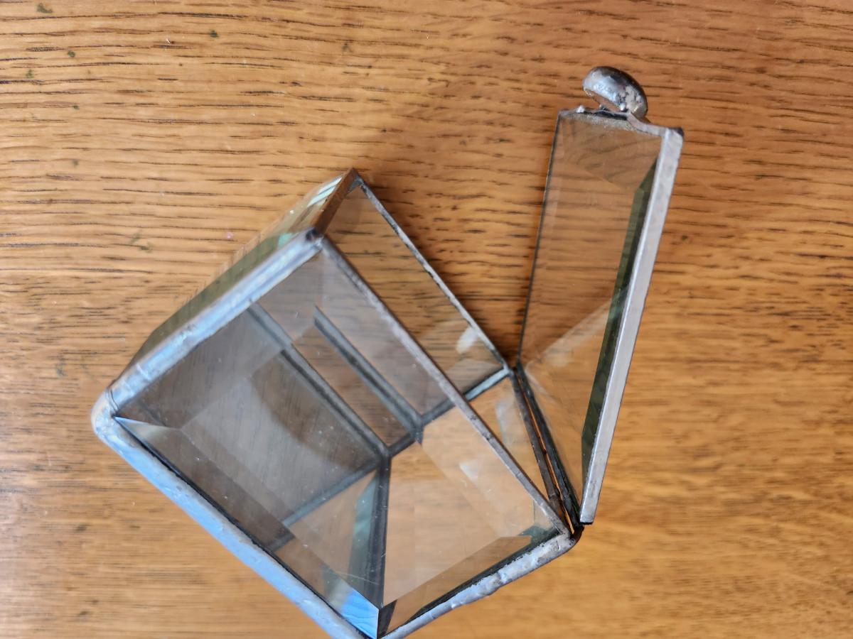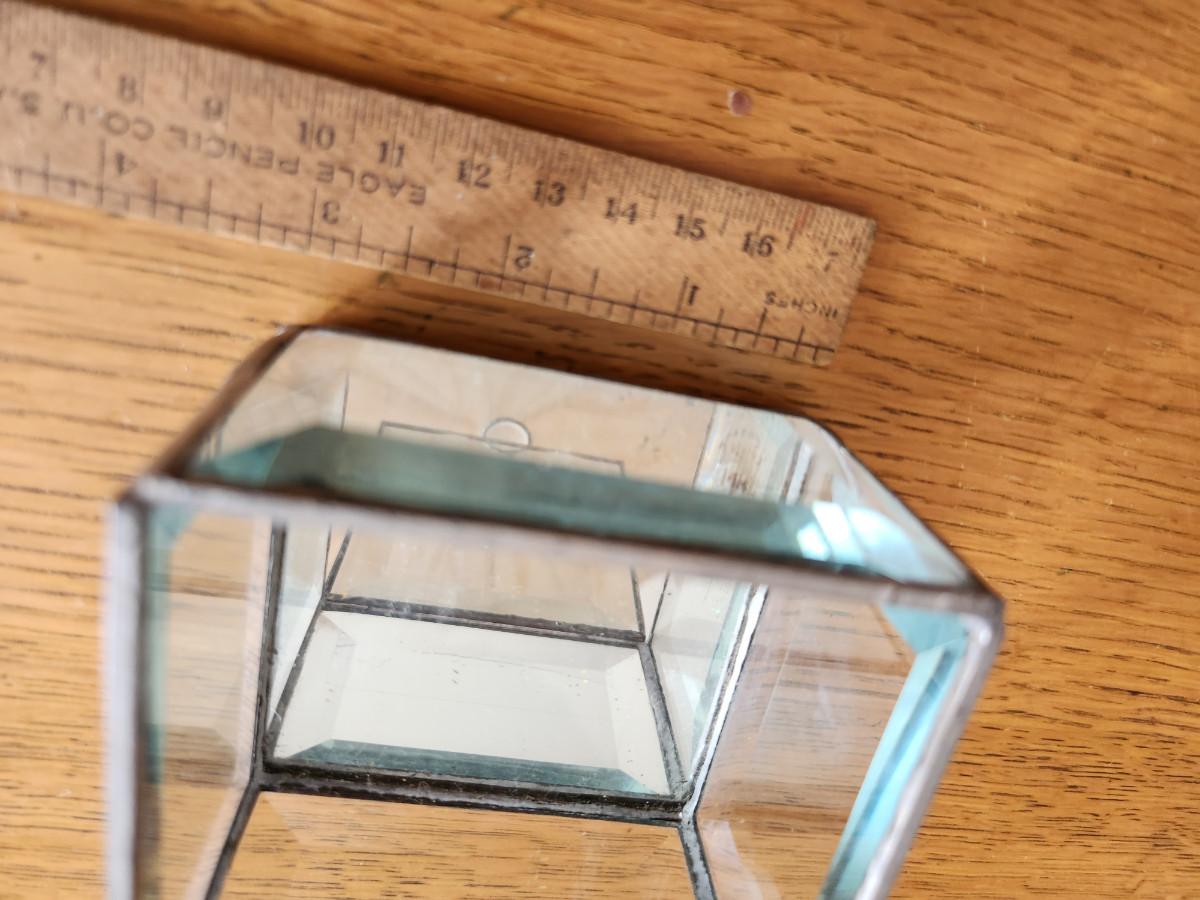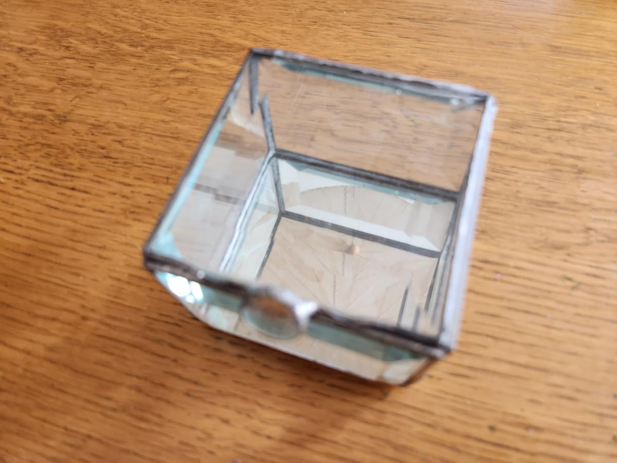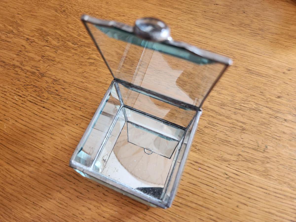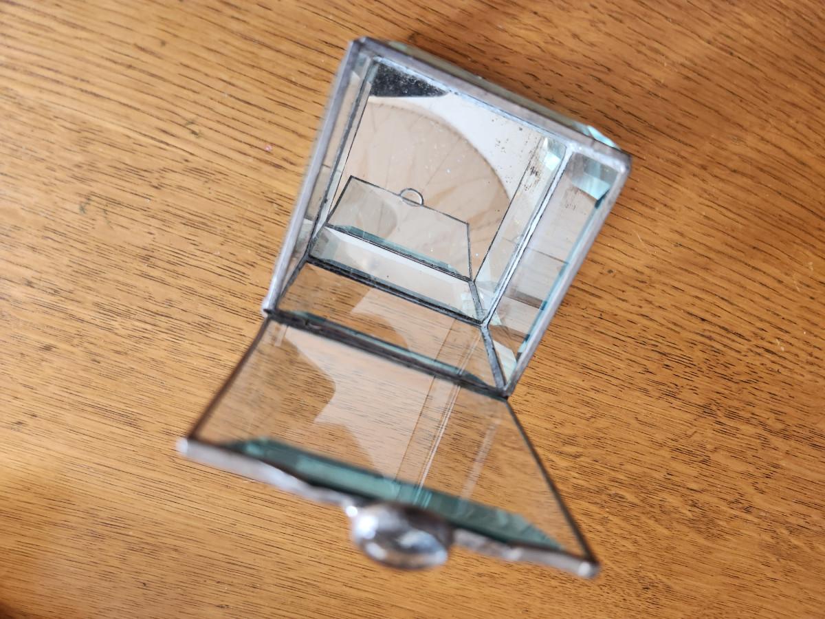 This auction lot is for a Craftsman Made Glass Keepsake Box. This small box is a prefect piece to store items you want to see but not touch every day. A nice box with many uses for the boudier or bath counter.