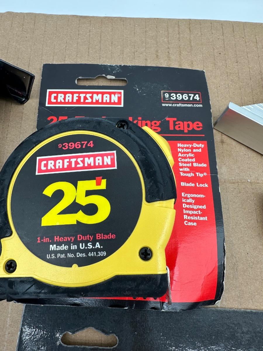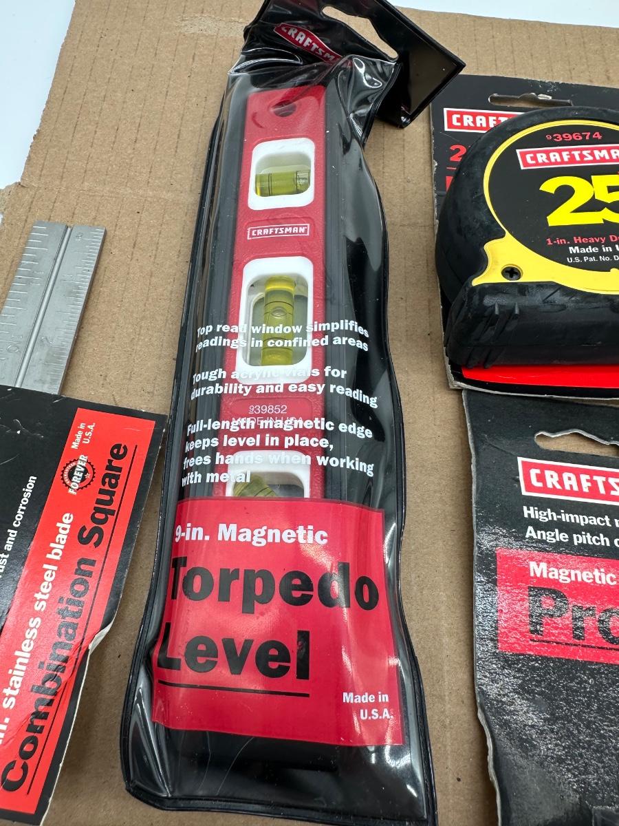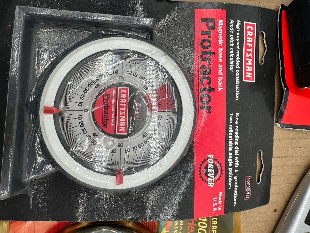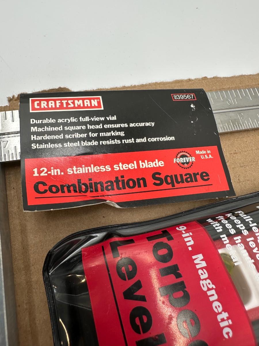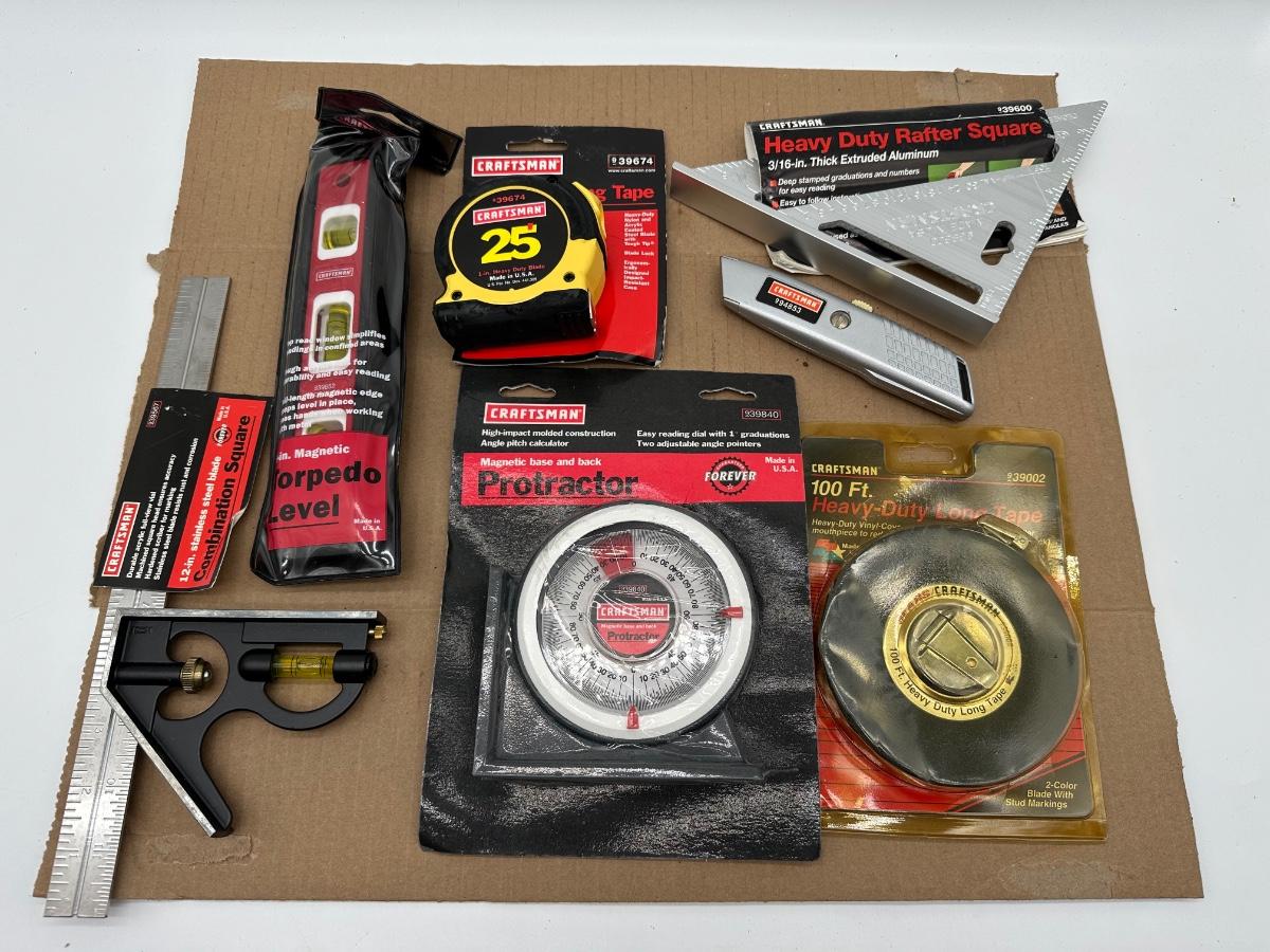 Craftsman Measuring & Layout Tool Lot – Square, Level, Protractor, Tapes & Utility Knife (USA)