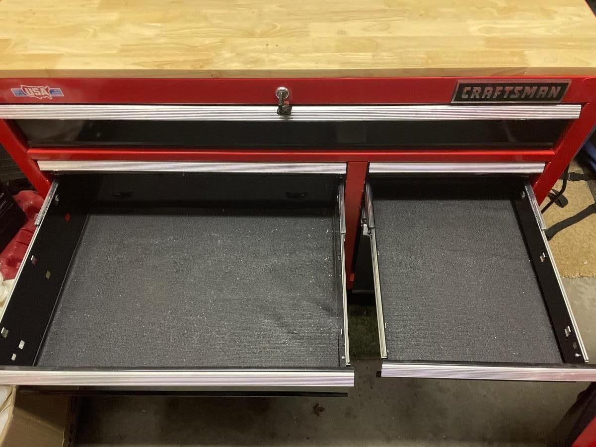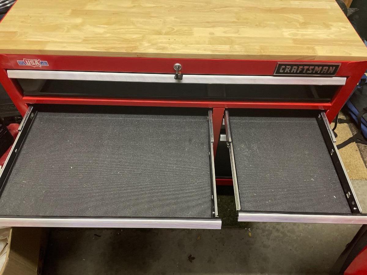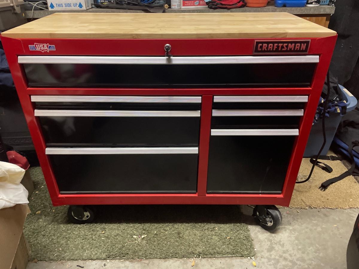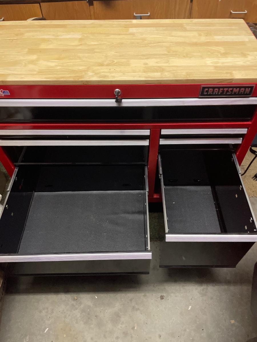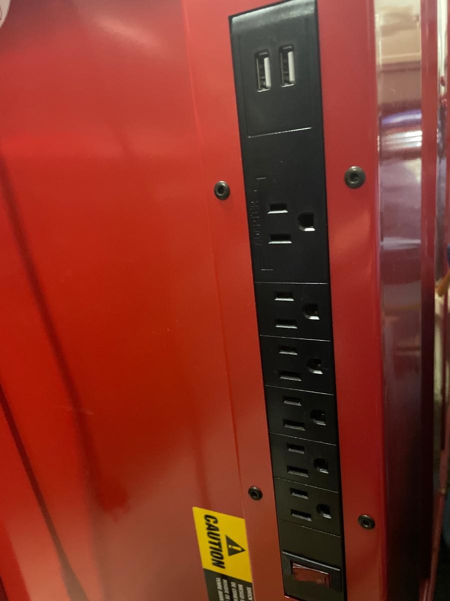 Hardly used. Looks like new. Includes 2 keys to lock the 7 drawers. Also included are 6 power outlets and 2 usb outlets on the side of the cart.