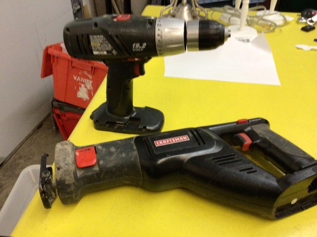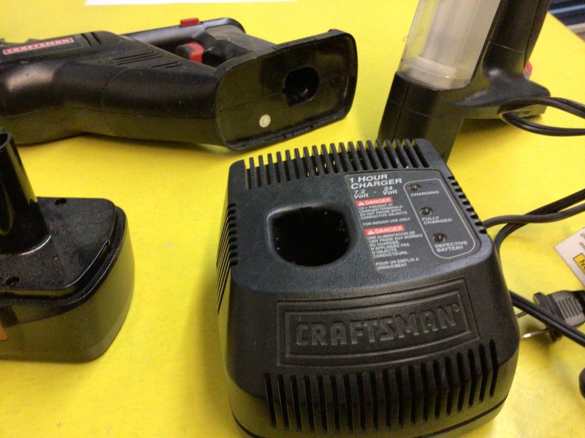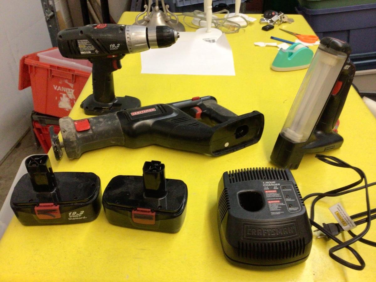 You get Craftsman drill, reciprocating saw and light, recharger and two batteries.