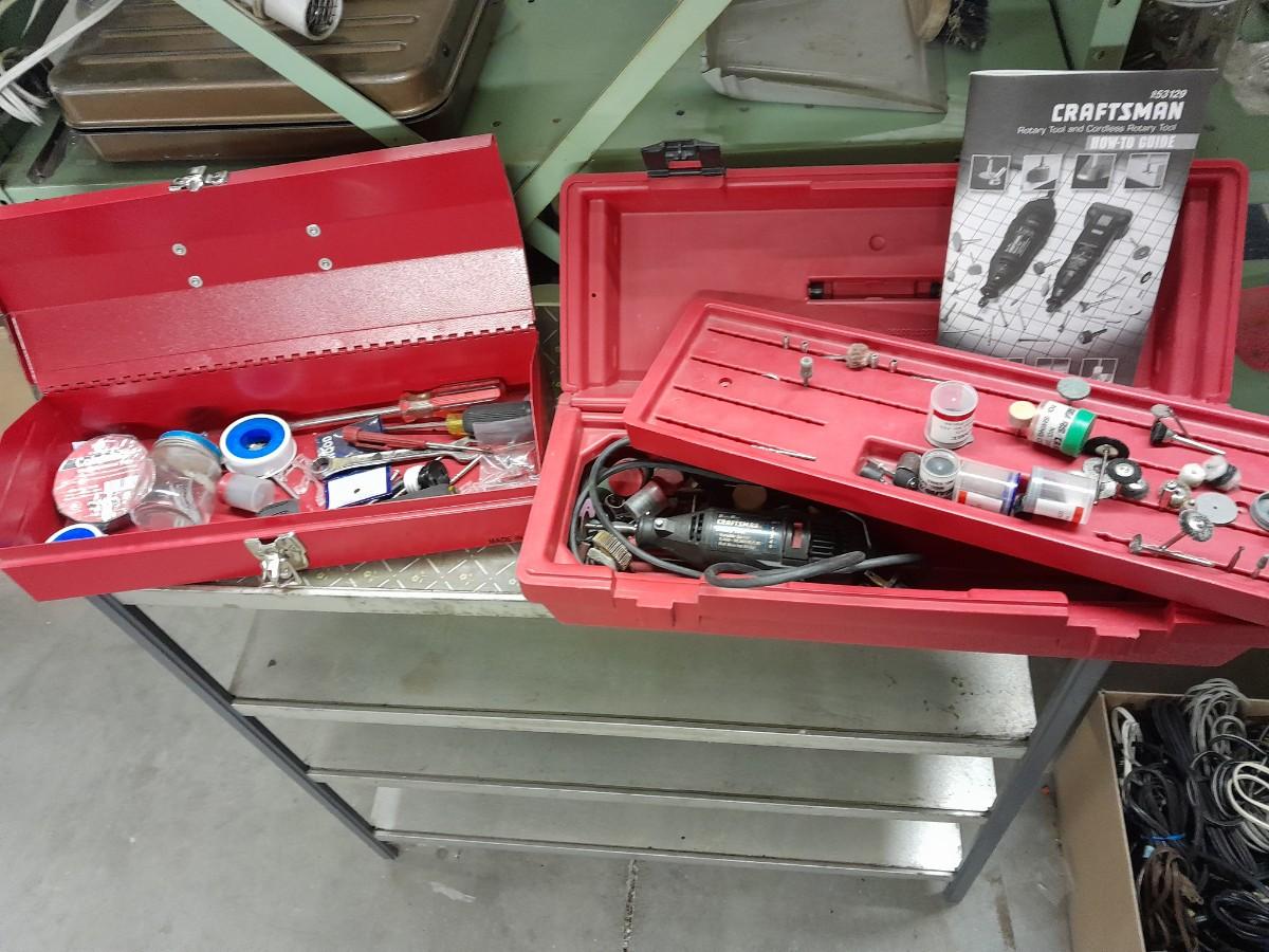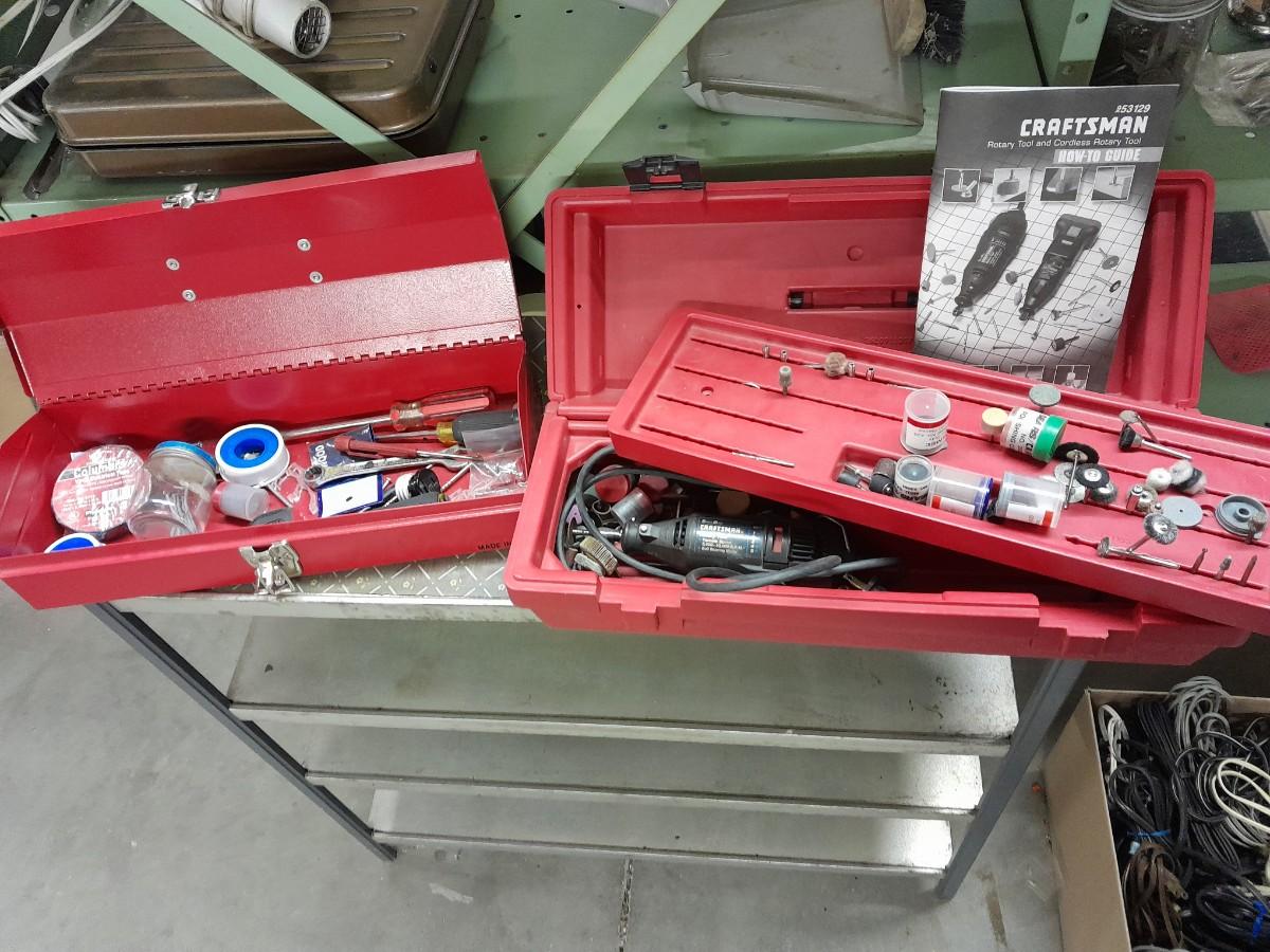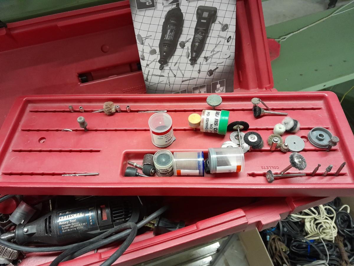 THERE ARE SOME ACCESSORIES FOR THE ROTARY TOOL AND A FEW TOOLS IN THE TOOLBOX