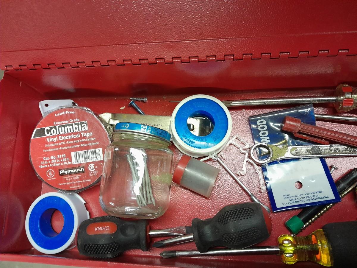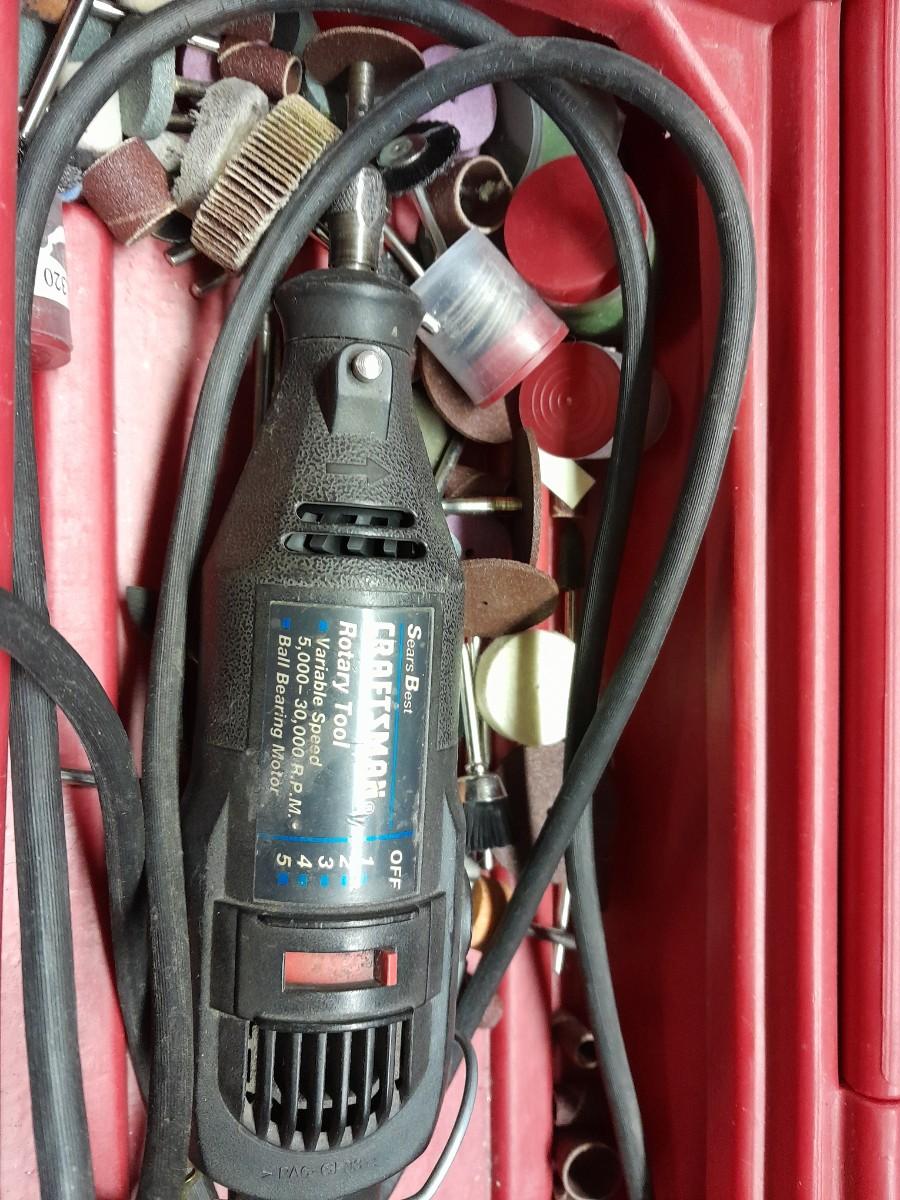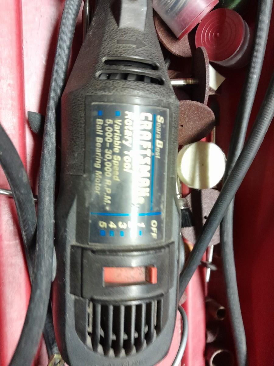 THERE ARE SOME ACCESSORIES FOR THE ROTARY TOOL AND A FEW TOOLS IN THE TOOLBOX