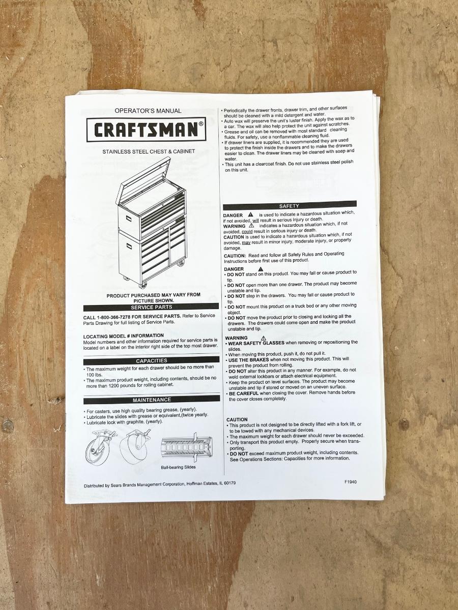 CRAFTSMAN ~ Stainless Steel Chest And Cabinet