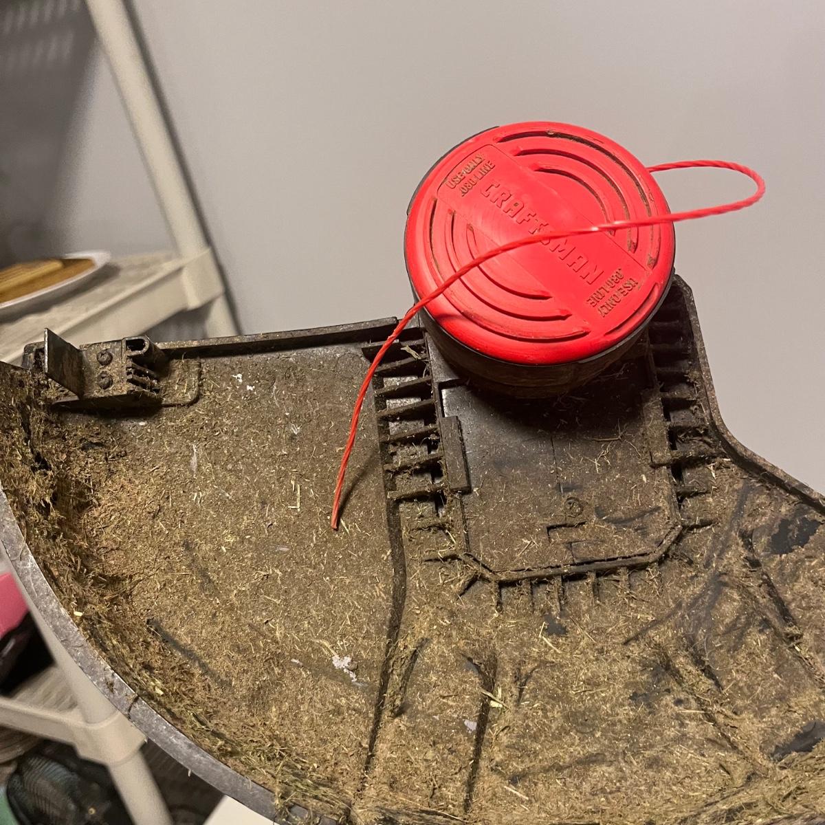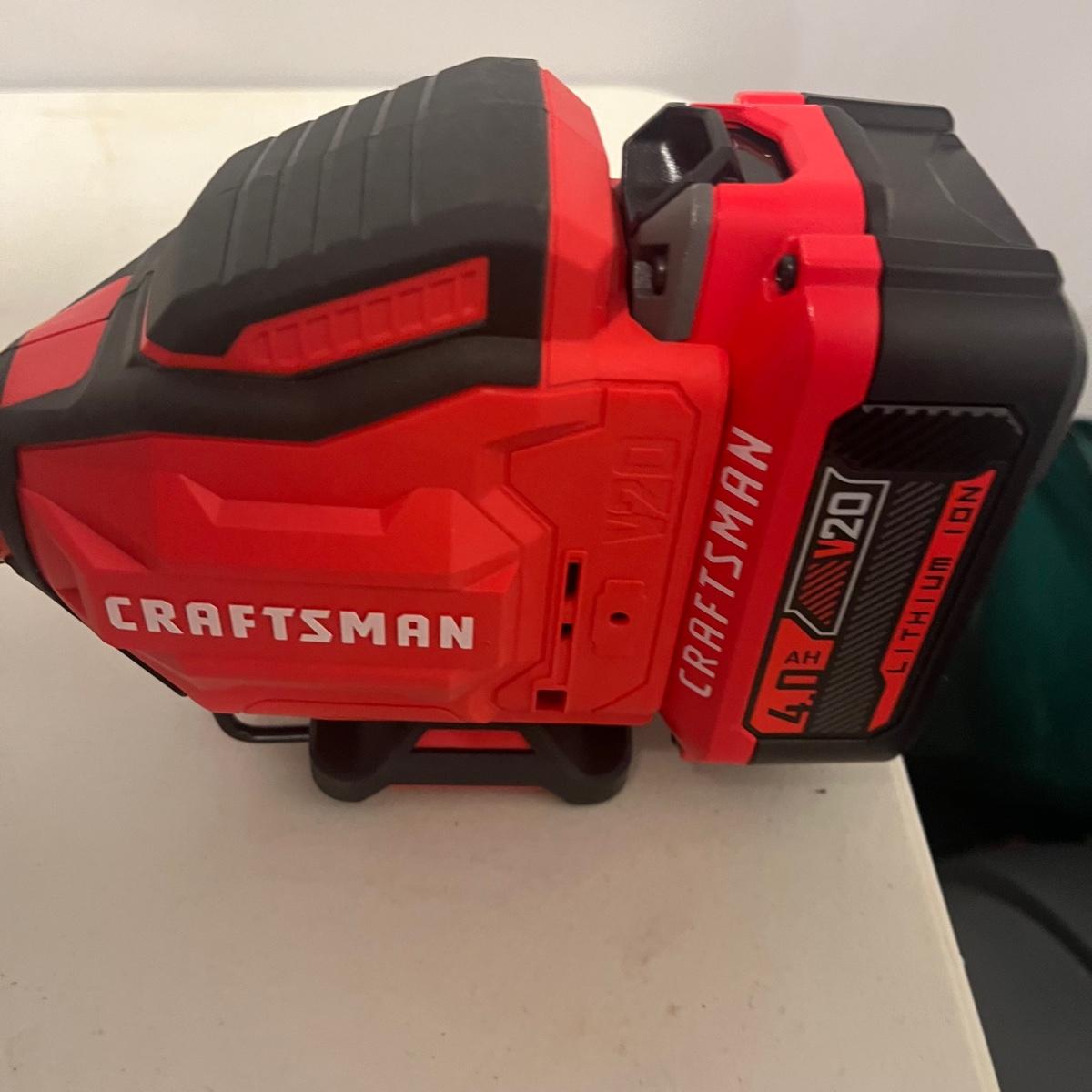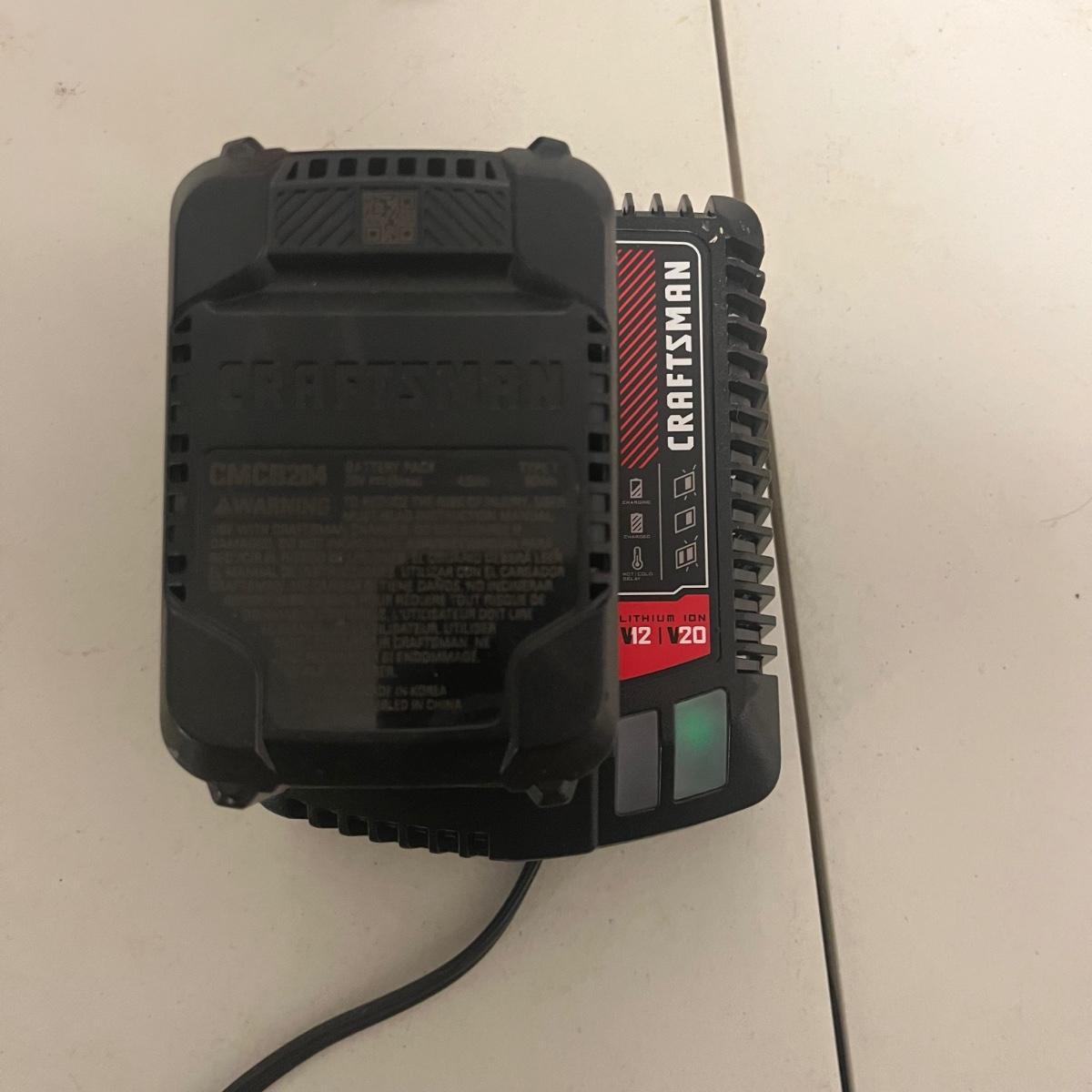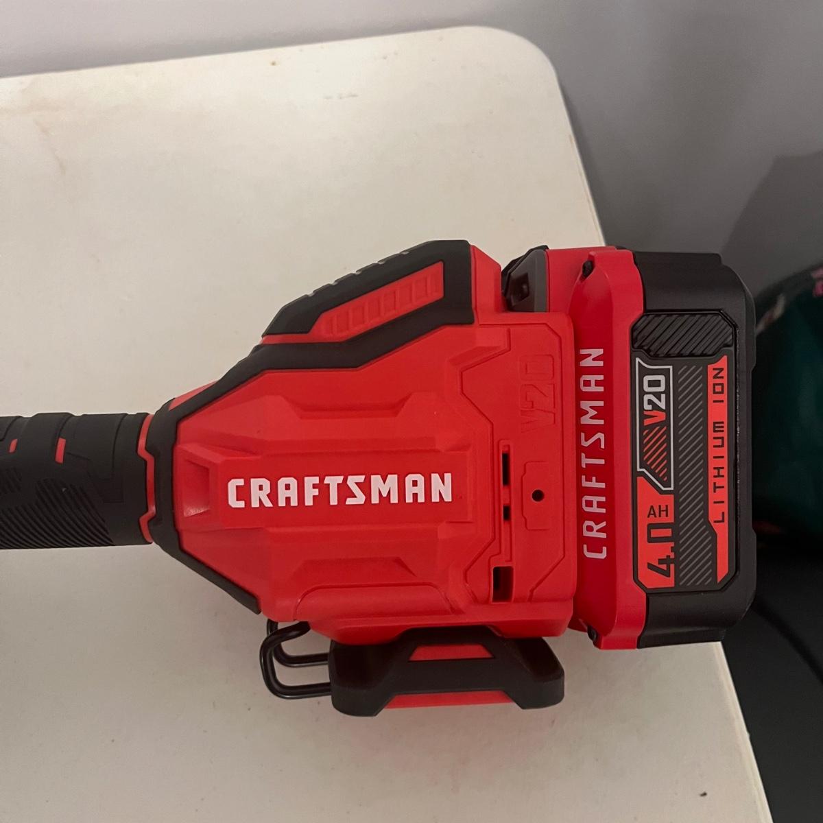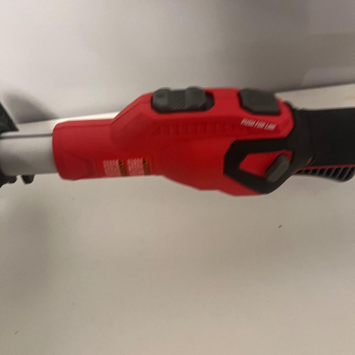 Lot includes a Craftsman 20V lithium ion battery operated string trimmer with charger. Machine powered on when trigger pulled.