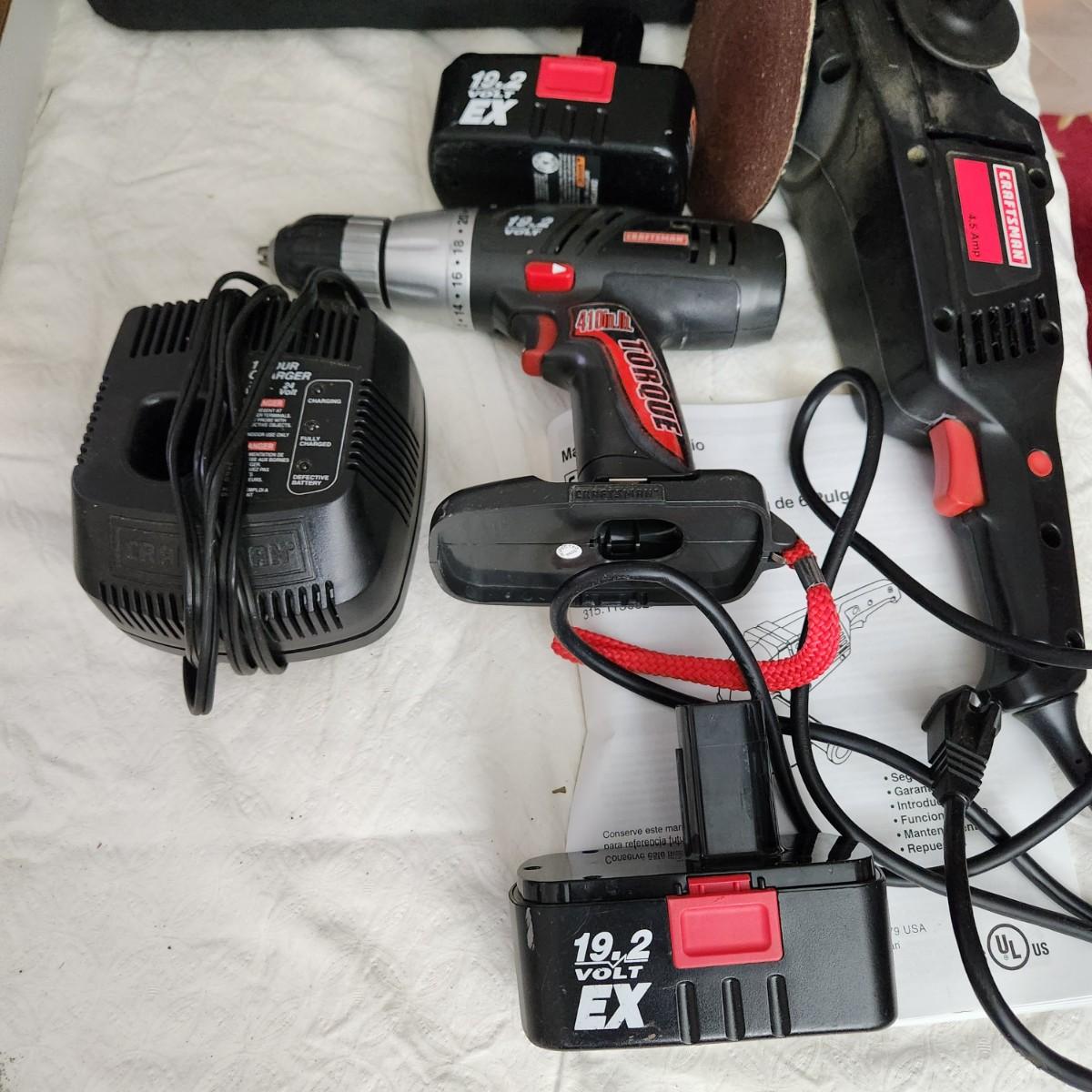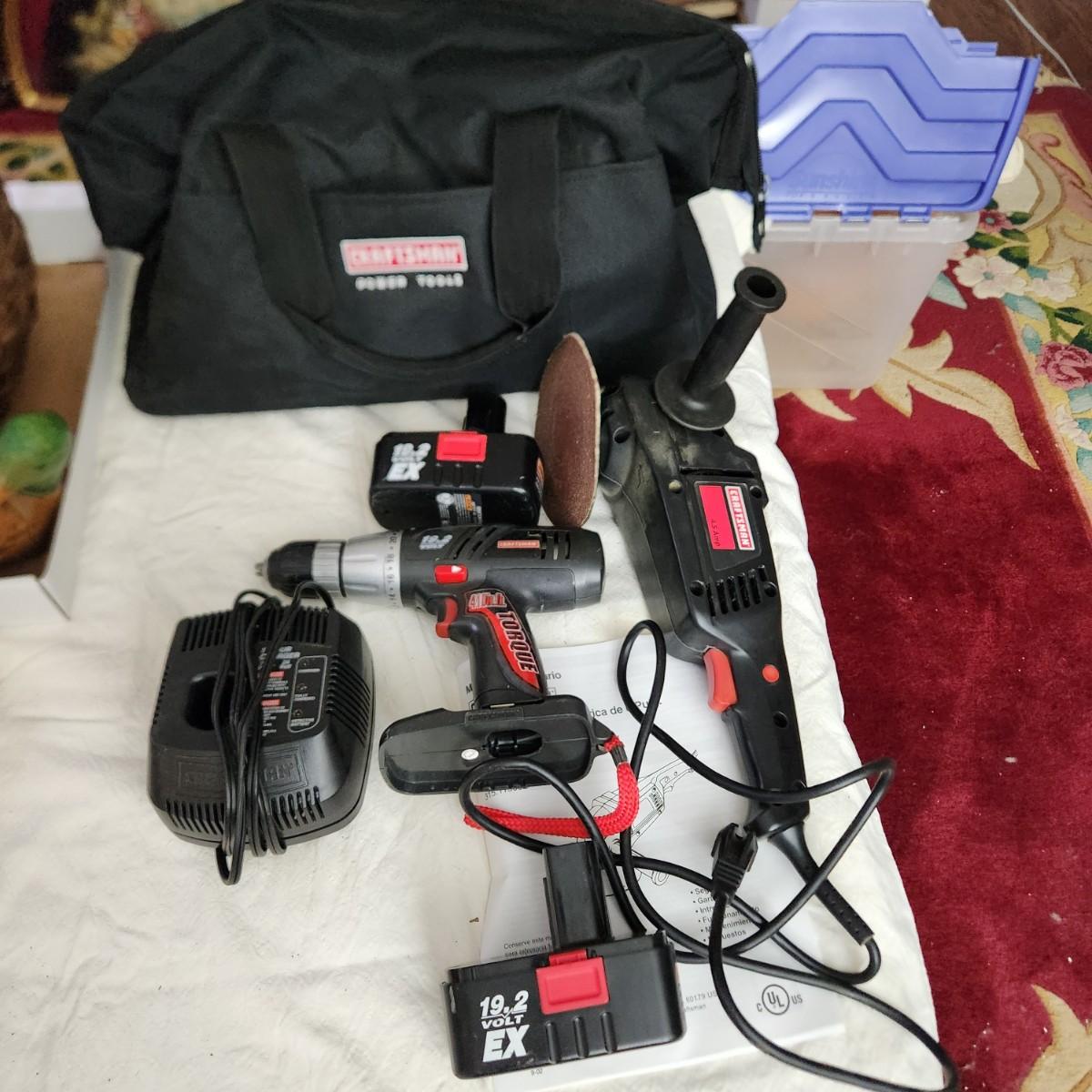 Craftsman Tool Lot Cordless Torque Wrench, 6" Disc Sander, w Bag