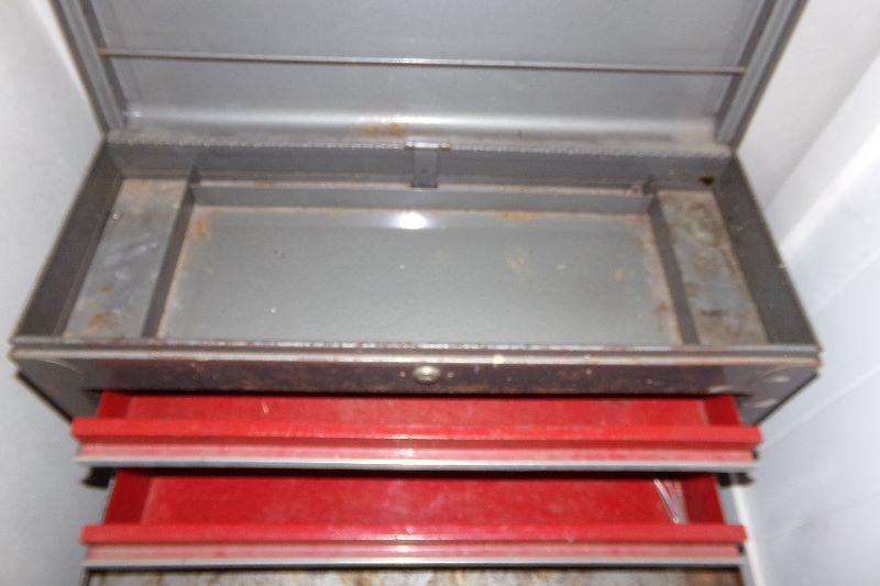 There's paint loss, a little rusting and the bottom door does not lay flush. Drawers all work well when bottom door is in place