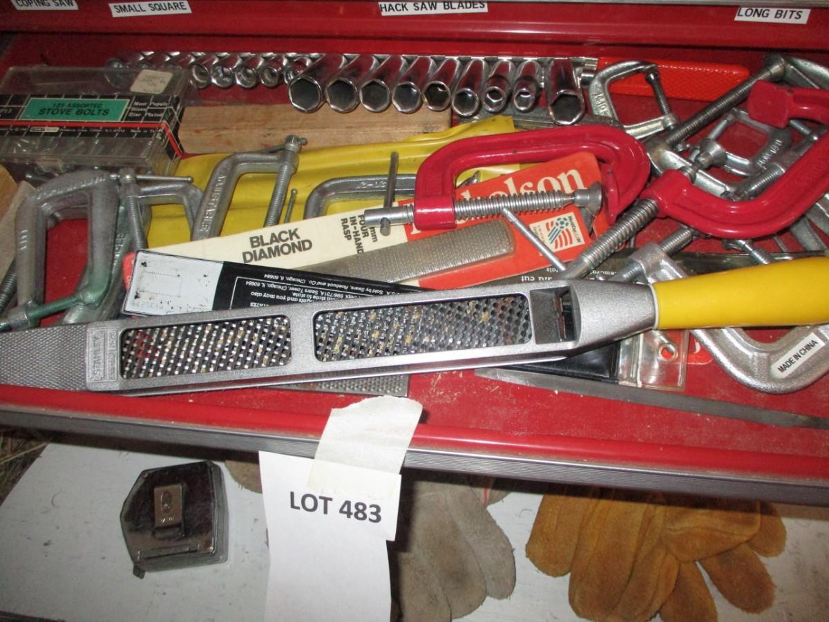 Work Gloves, Assorted tools, shelf size toolbox
