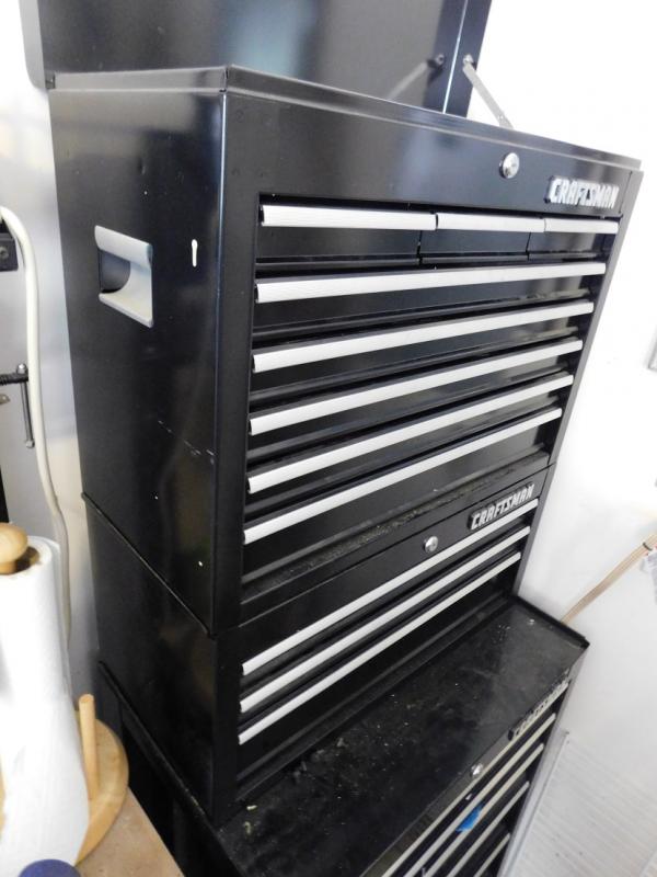 Craftsman Triple Stack Tool Box with 16 Slide Drawers and Lid Top in very good condition. Can not locate the key. Nice and sturdy. Not beat up.