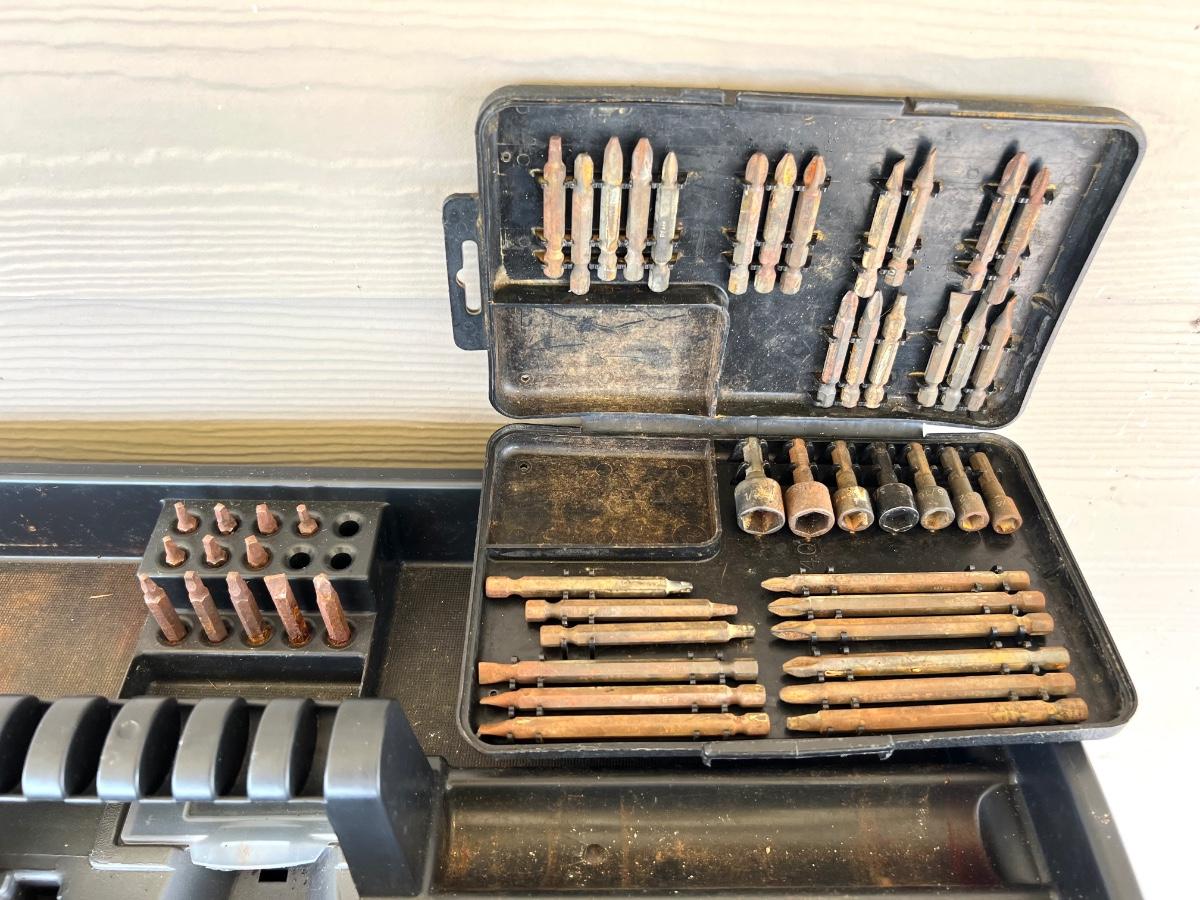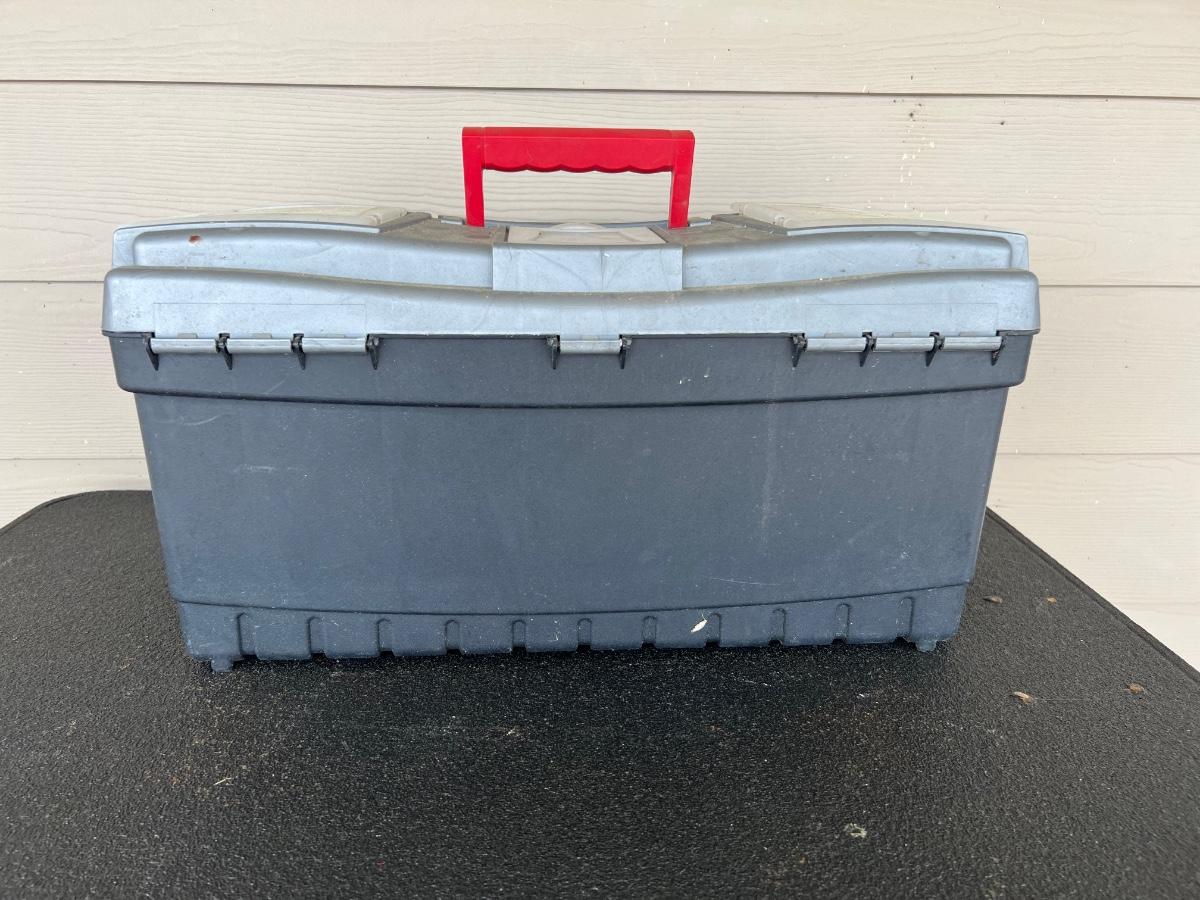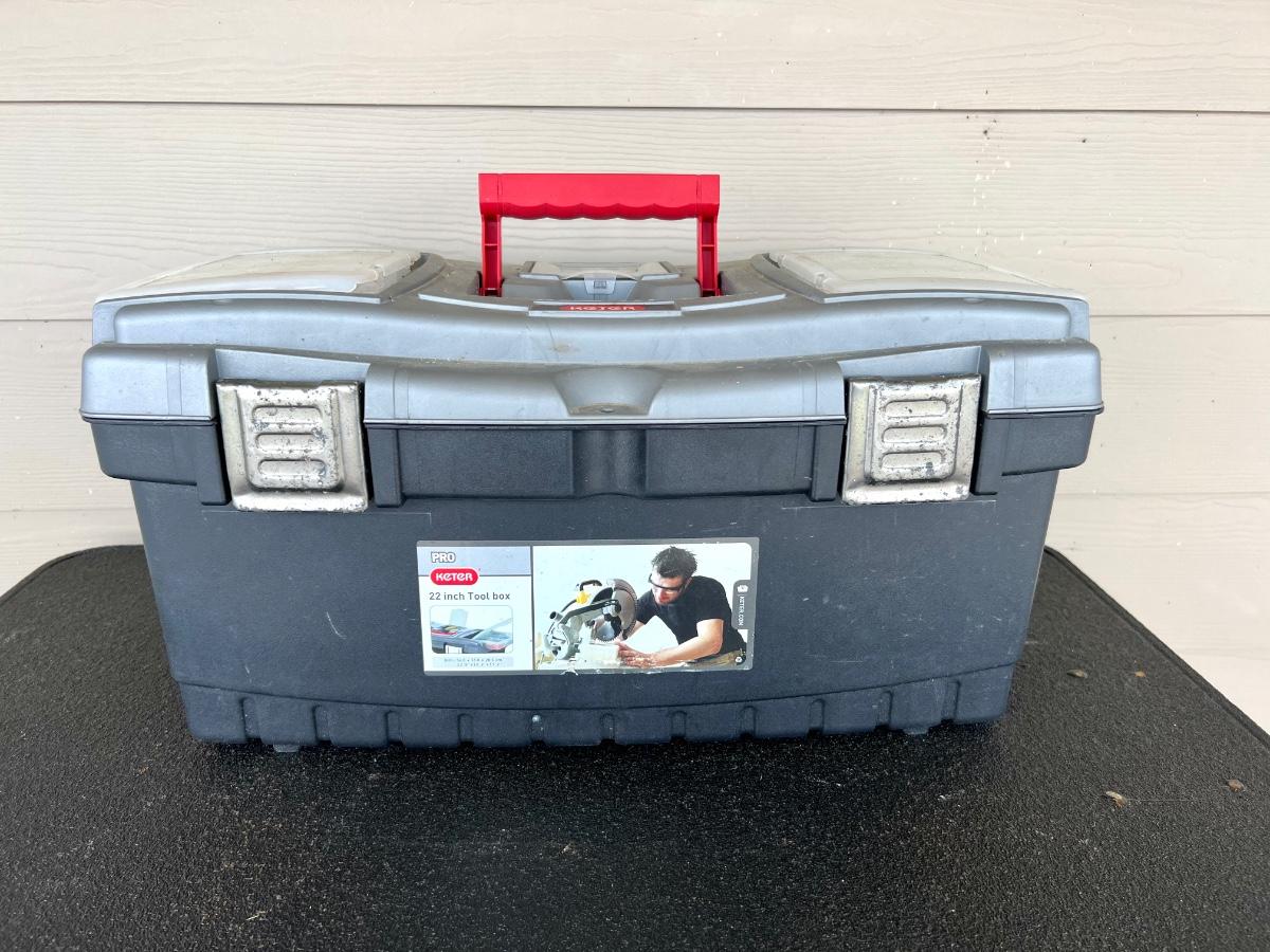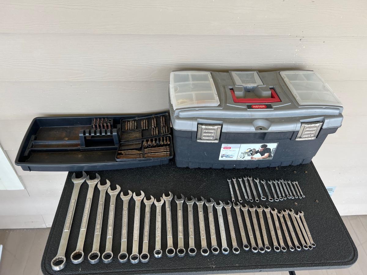 22 inch KETER PRO TOOL BOX with storage and tray with 41 CRAFTSMAN WRENCH and Screw Driver Bits in a craftsman box.