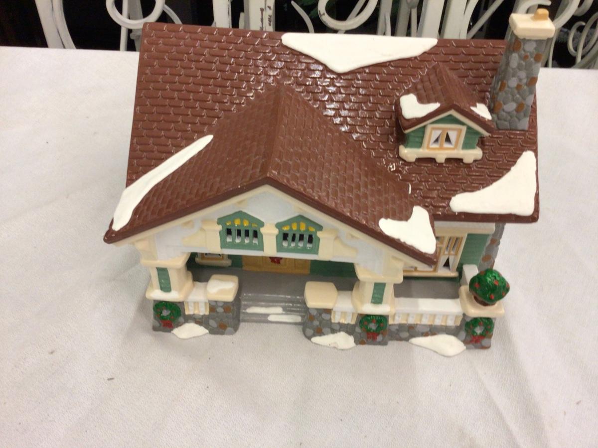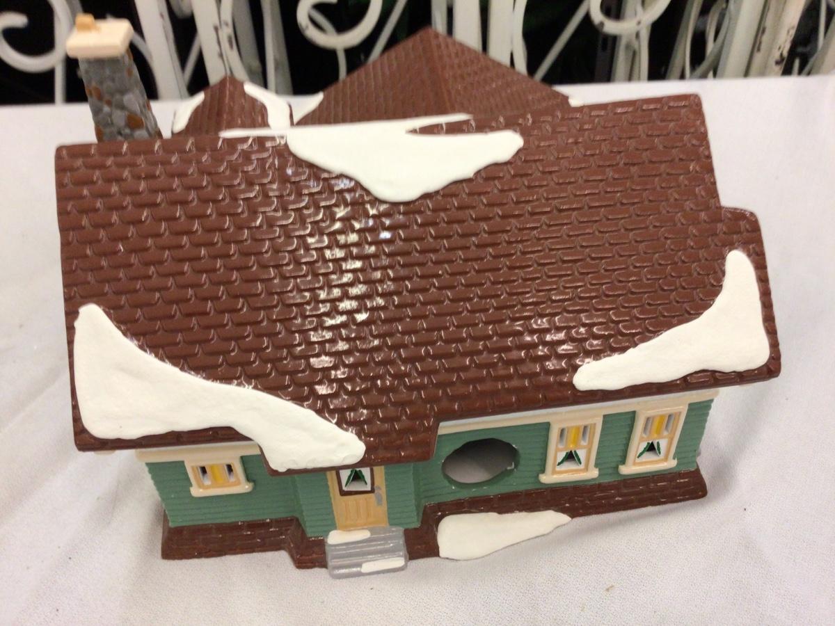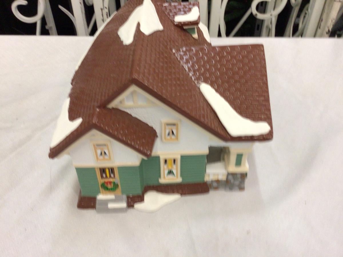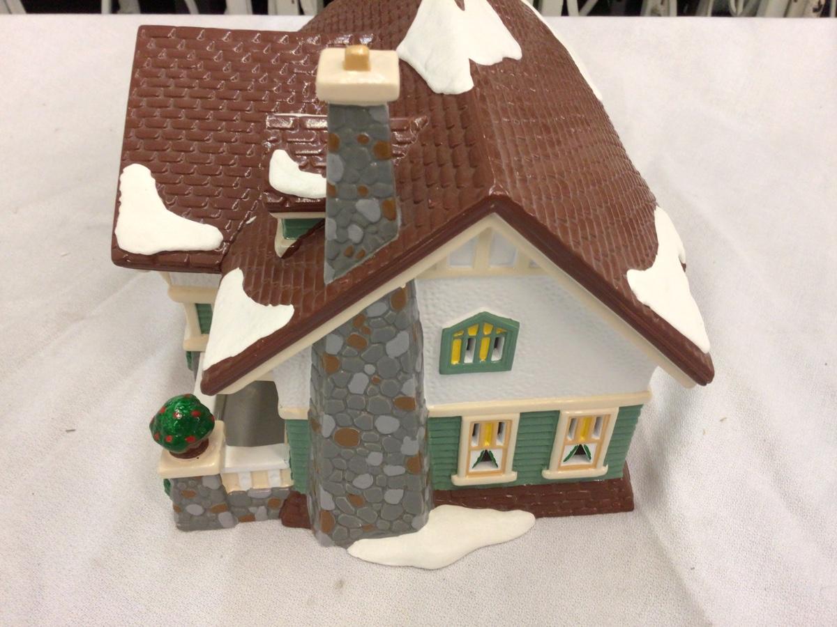 You get Craftman’s Cottage Dept. 56 Snow Village with box and light does have chip see pictures.
