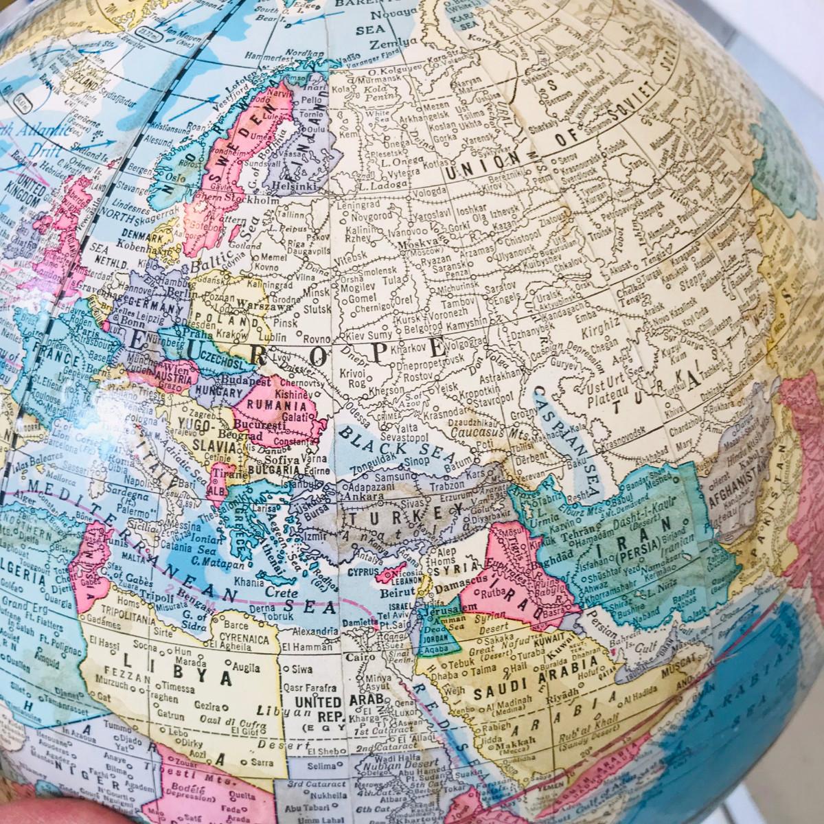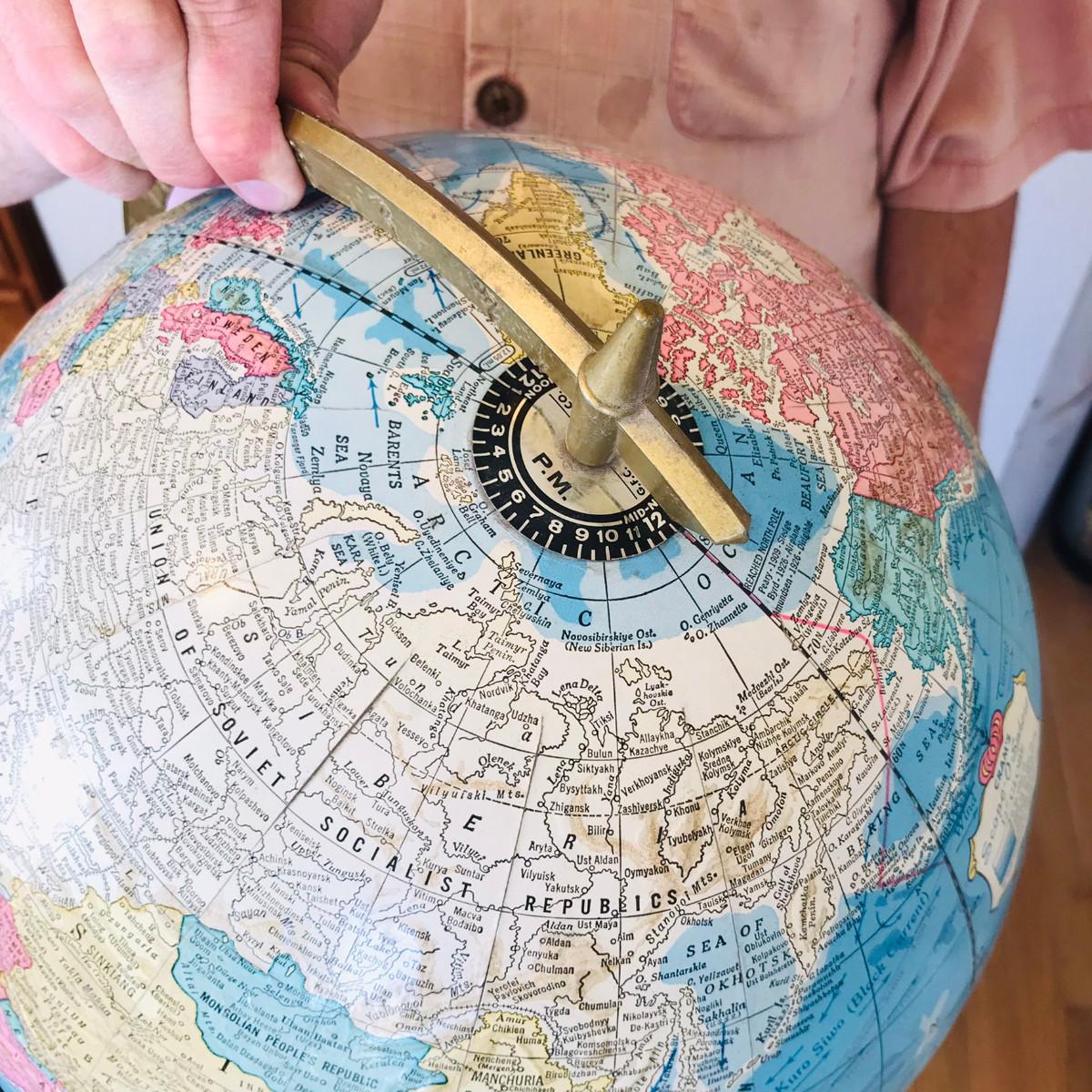 While there is no date on this globe, the country borders & countries included leads us to believe it is Pre-ww2 or possibly during. Globe is in great shape! Base has wear issues.