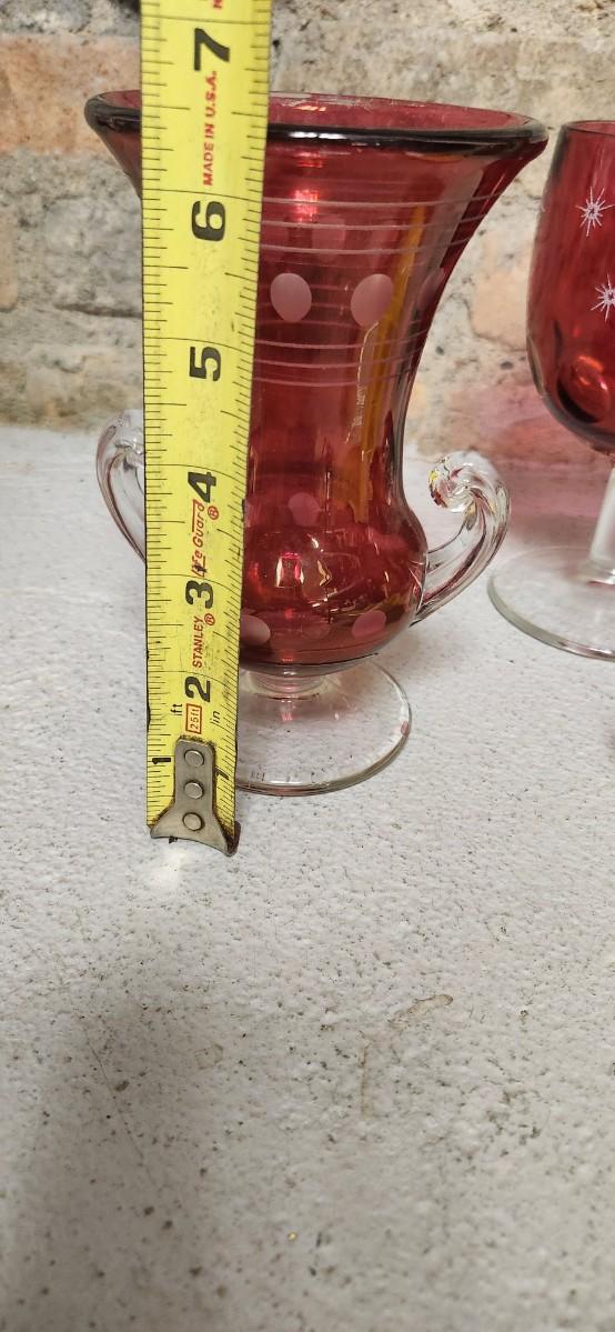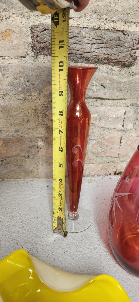 Awesome vintage pieces of cranberry flash and a gorgeous yellow cased blown trinket.