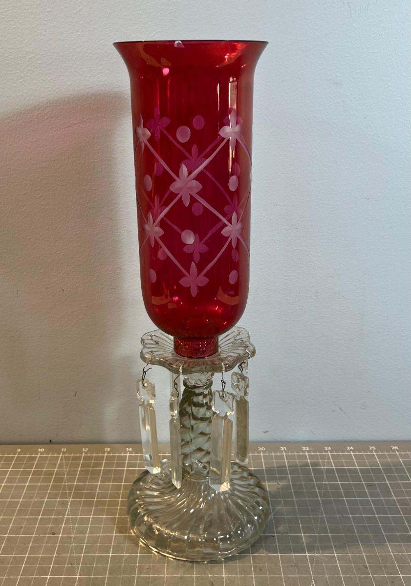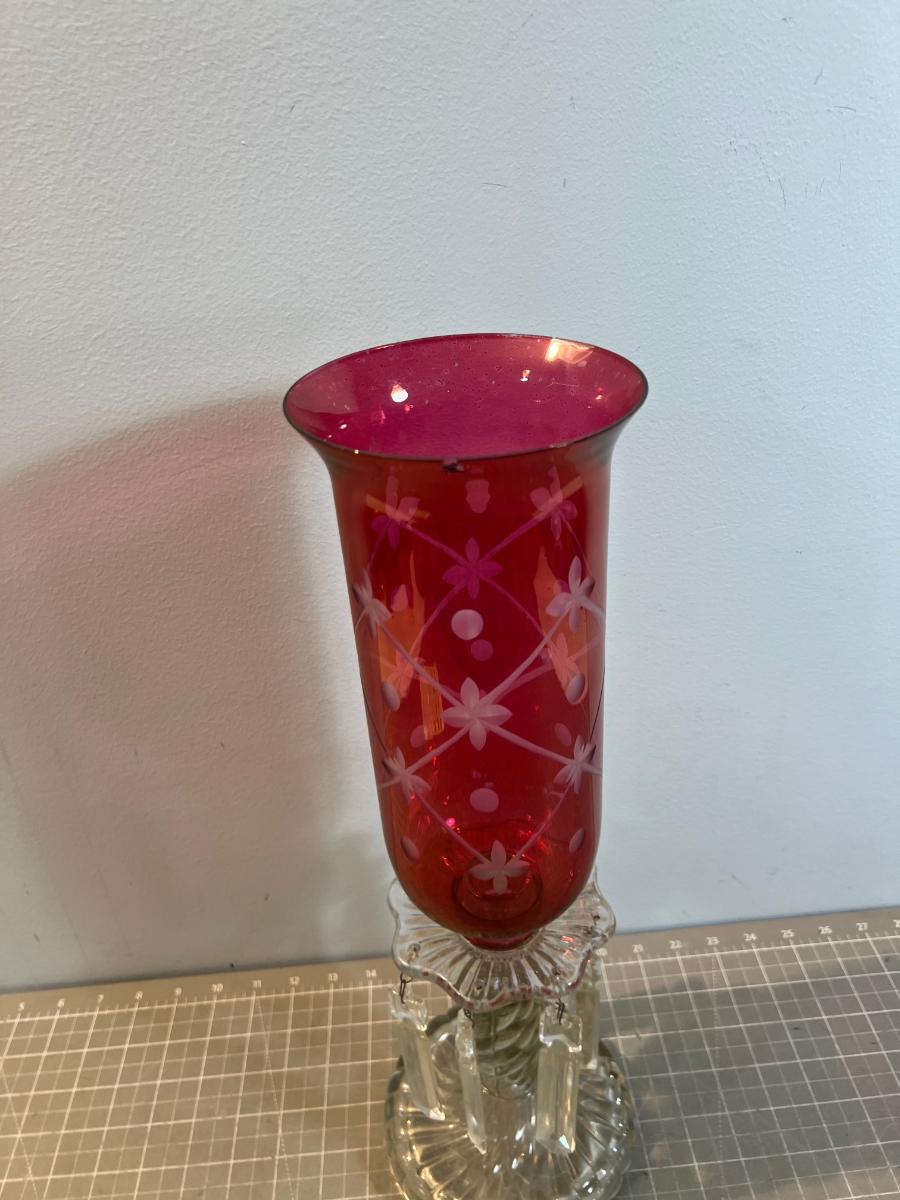 Cranberry Glass Candle Lantern