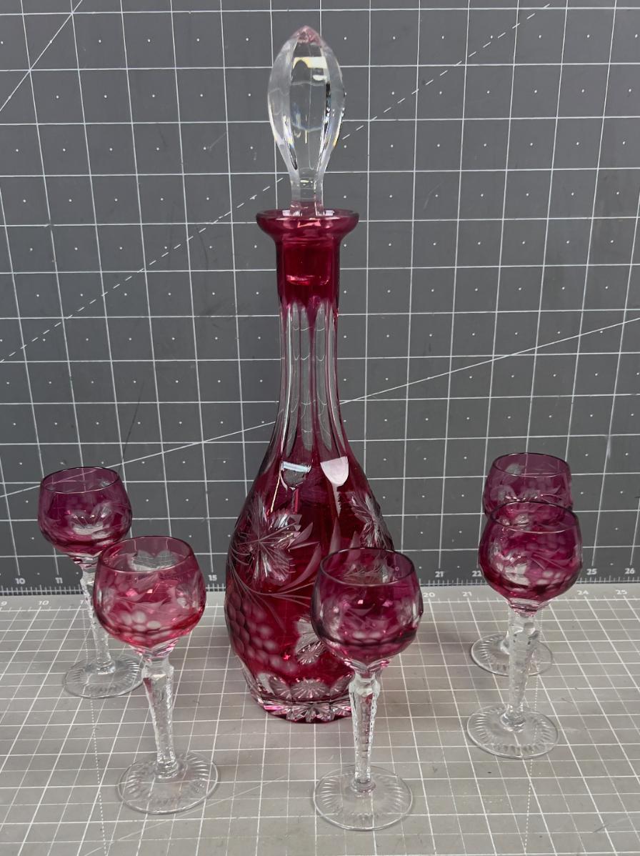 5 Glass and a Craft, Bohemian NICE! Beautiful Condition. Collectible, Rare Set.