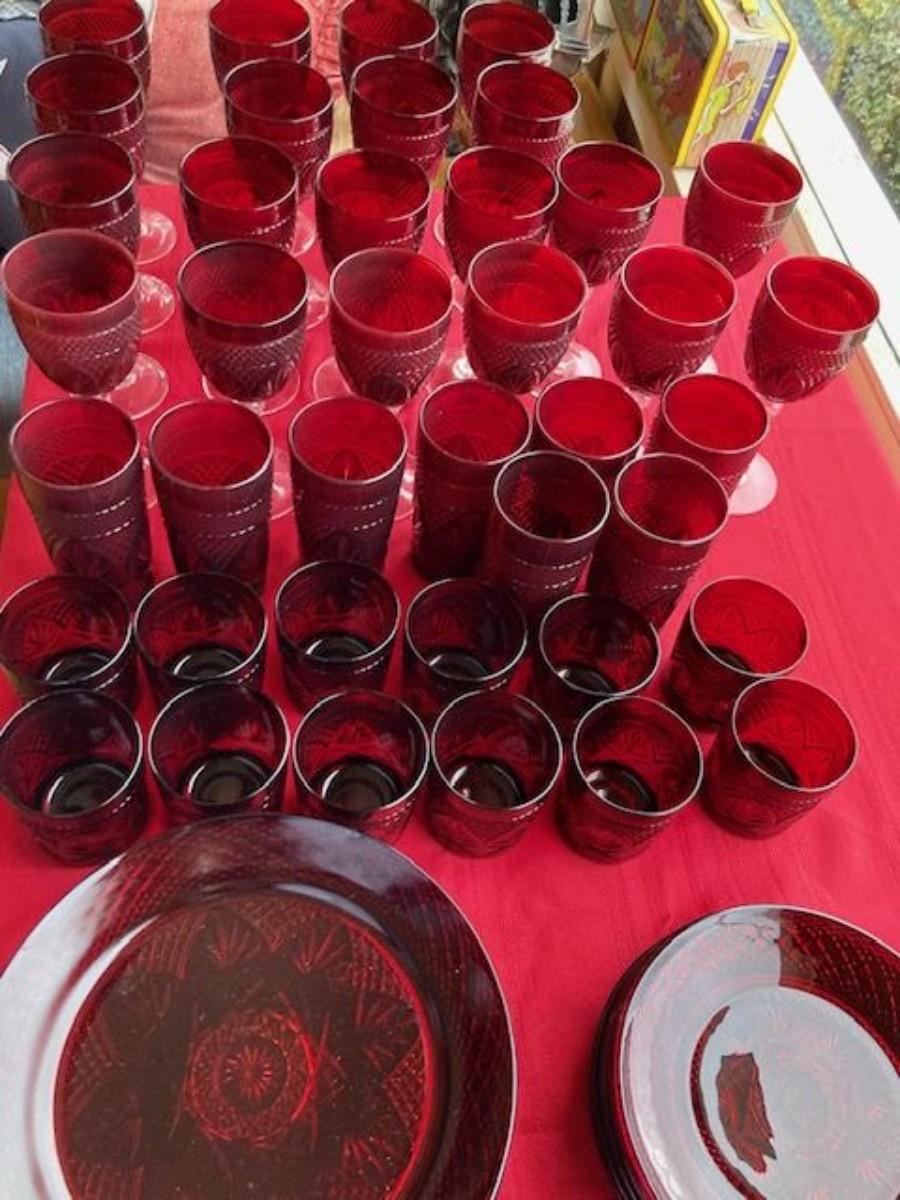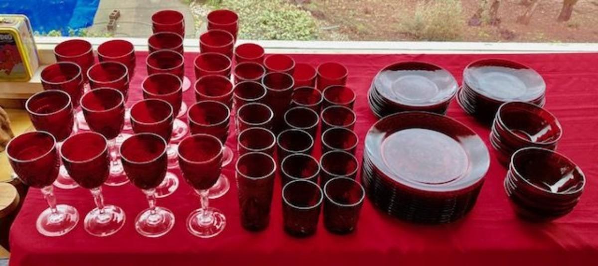 Cranberry Glass Lot Of 87 Pieces
