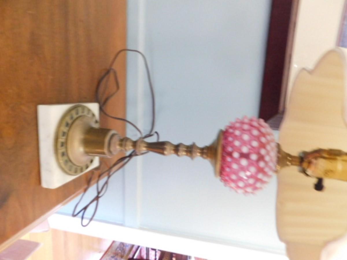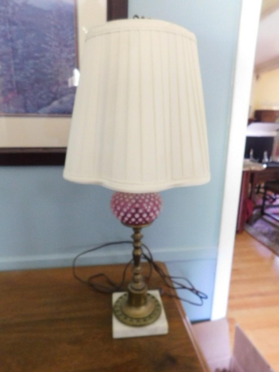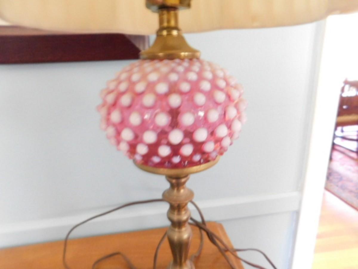 Cranberry Hobnail Glass Lamp with Brass Finish Candlestick Post (L5)