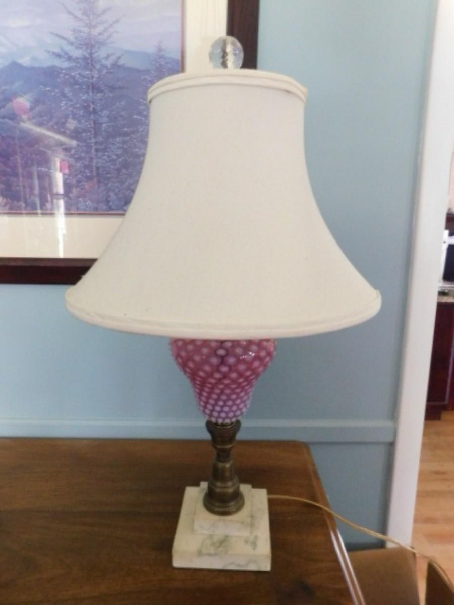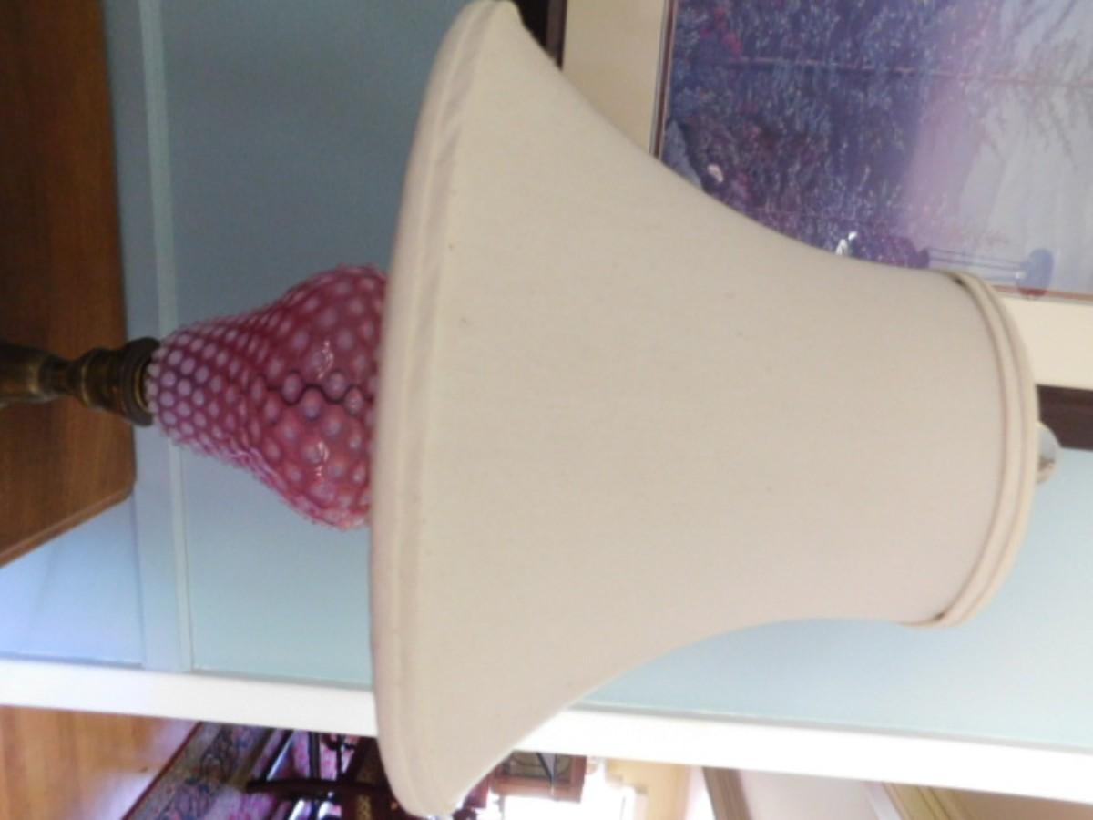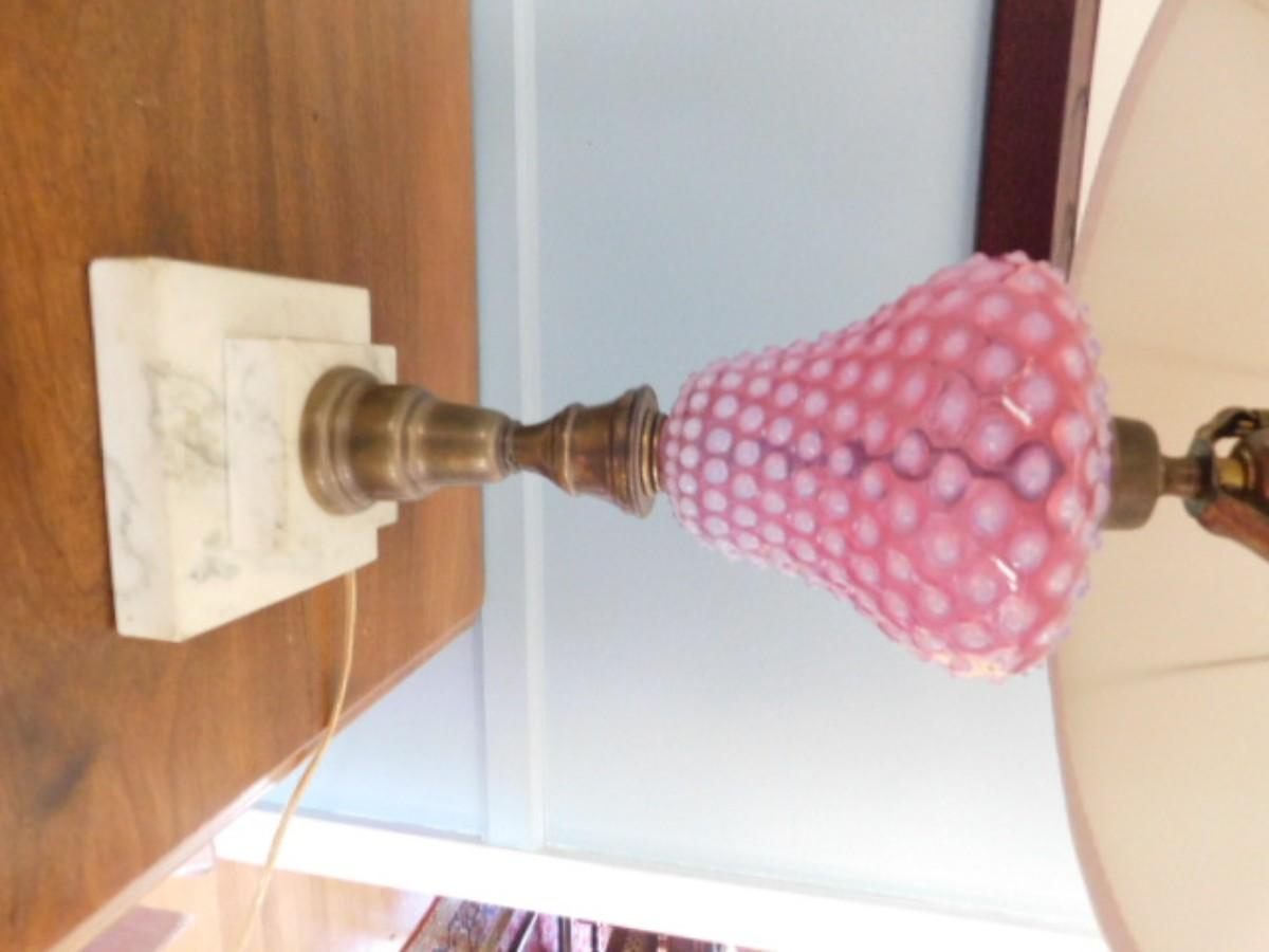 Cranberry Hobnail Glass Post Lamp with Bell Shade Choice B   (L9b)