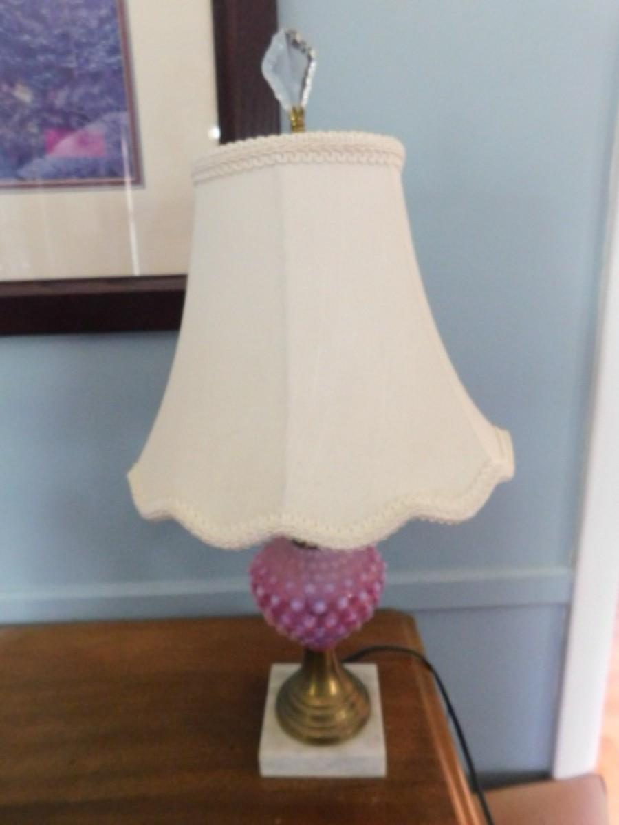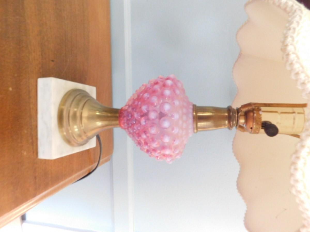 Cranberry Hobnail Glass Post Lamp with Flared Brass Finish Pedestal Choice B  (L17b)