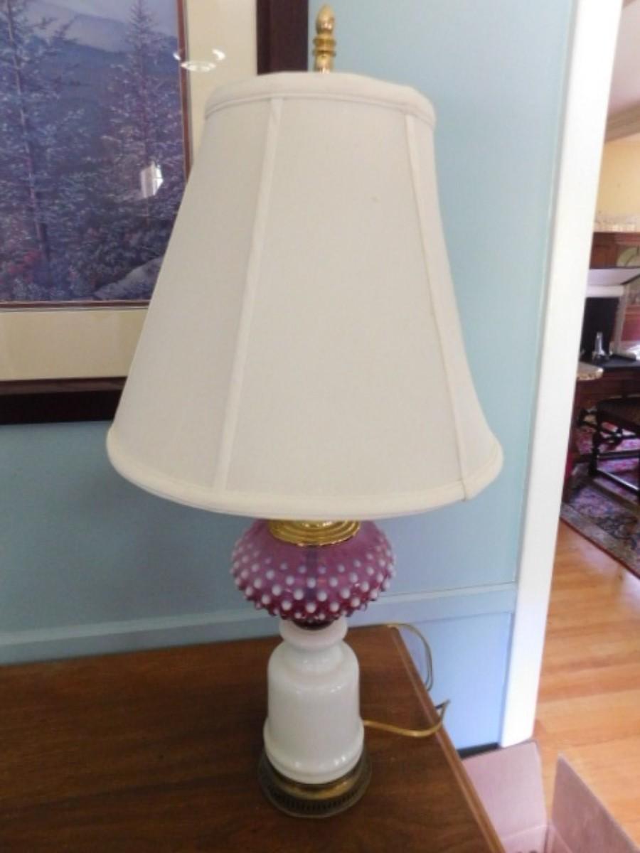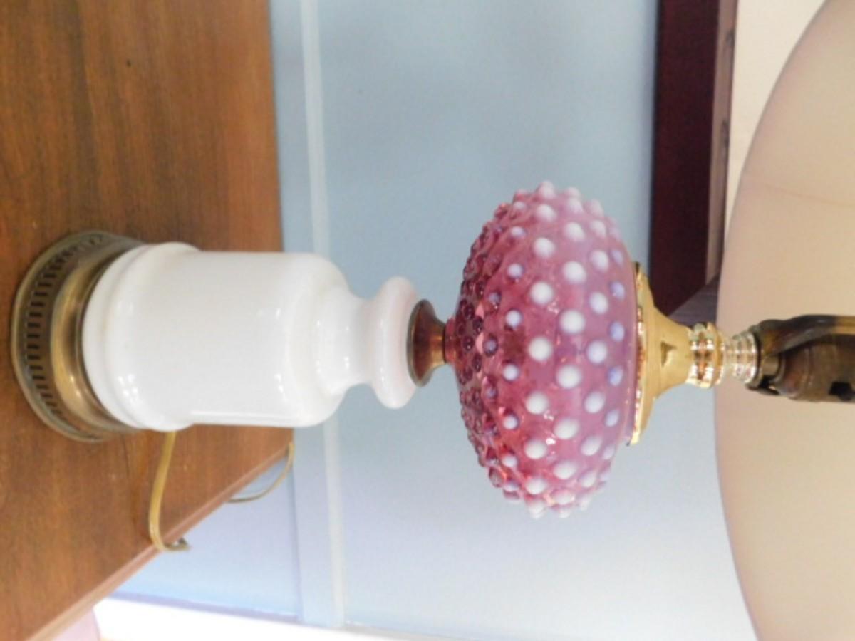 Cranberry Hobnail Post Table Lamp with Porcelain Base (L3a)